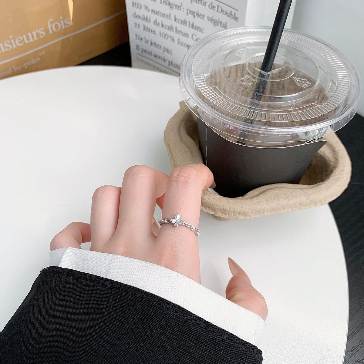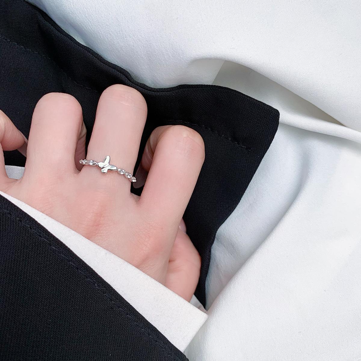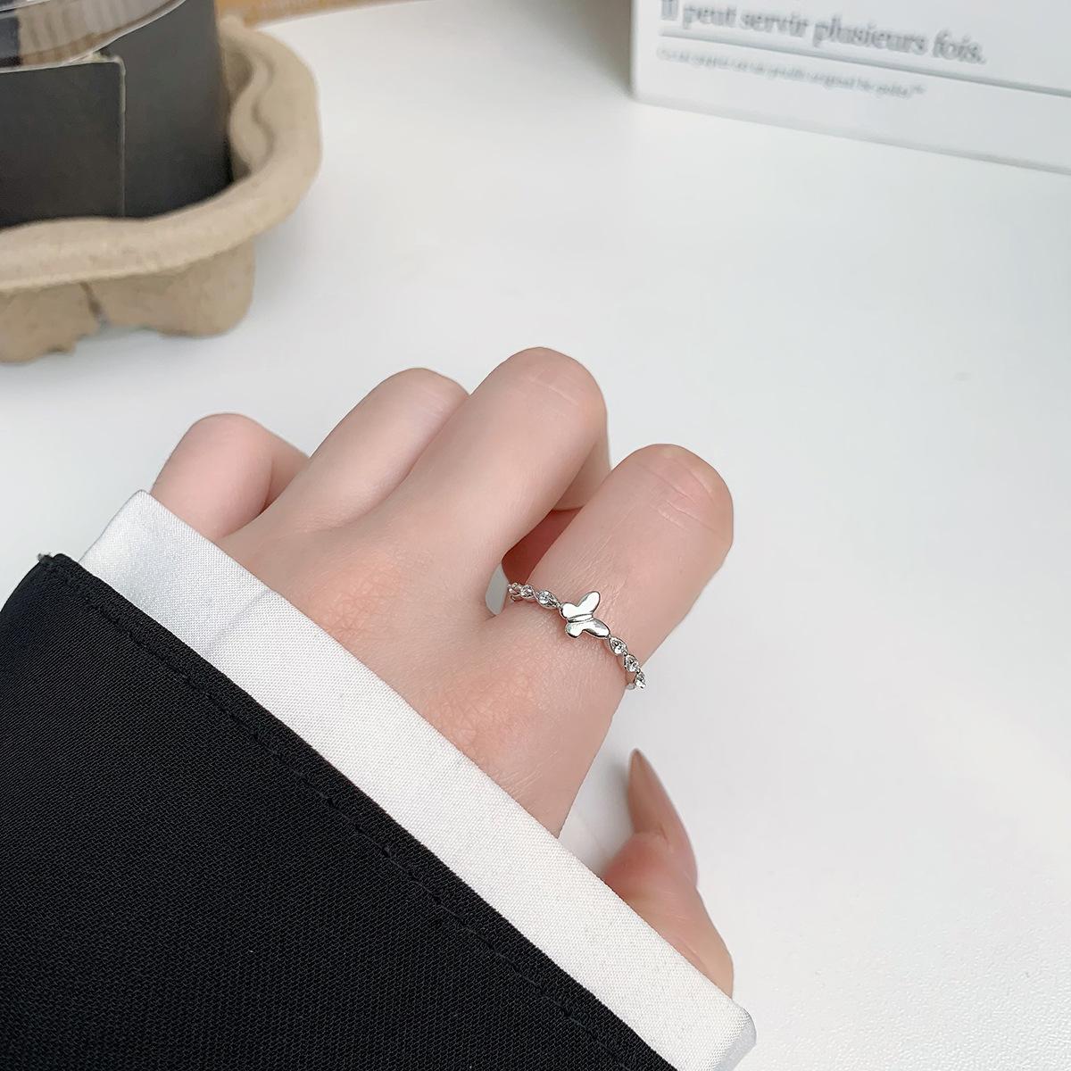 Anillo abierto elegante de mariposa en plata de ley S925, joyería de nicho moderna, anillo de mariposa con diamantes, accesorios de moda para mujer