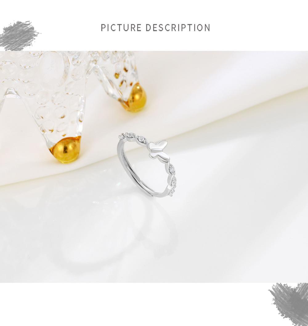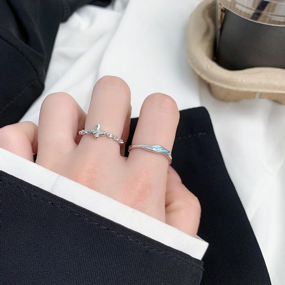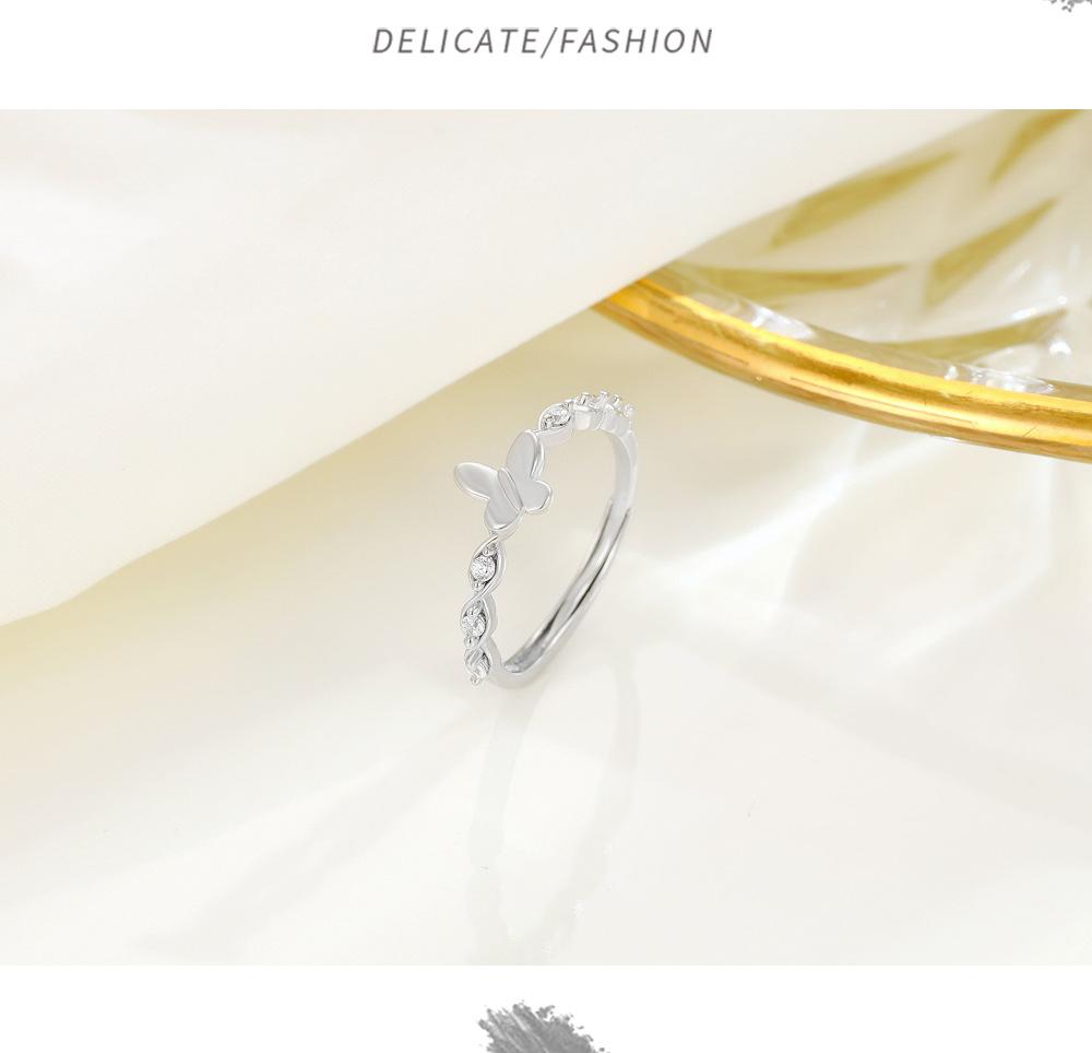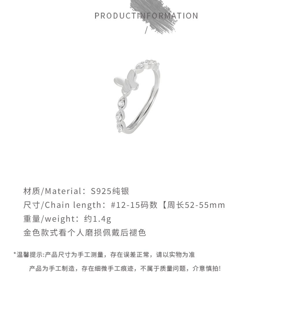 Anillo abierto elegante de mariposa en plata de ley S925, joyería de nicho moderna, anillo de mariposa con diamantes, accesorios de moda para mujer