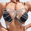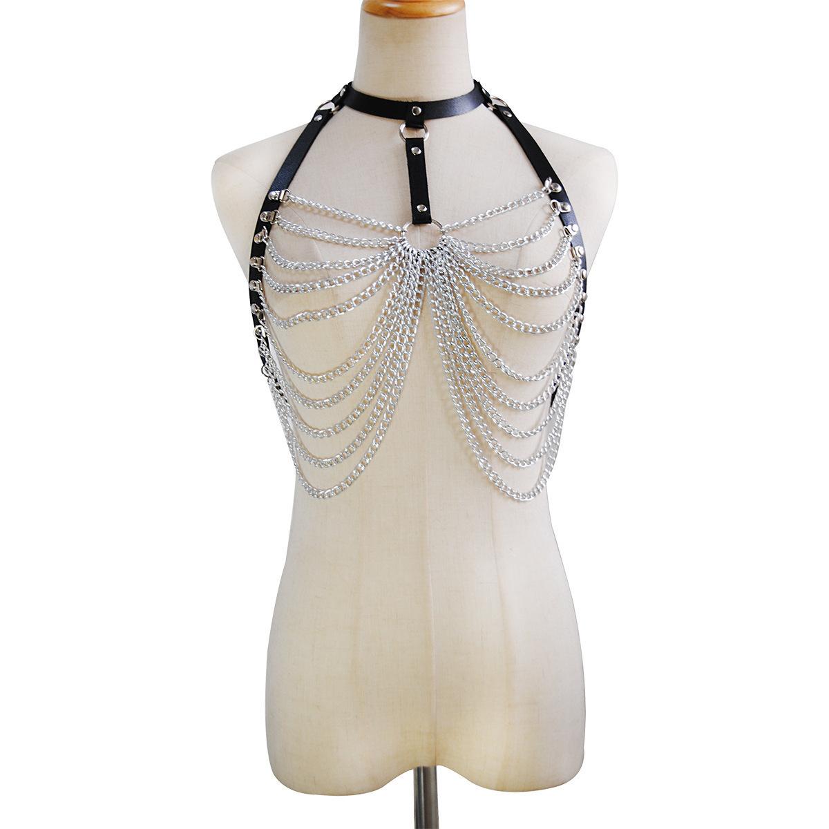 Joyería Transfronteriza Europea y Americana Sexy Cuero PU Cadena Multicapa Cadena para el Pecho Accesorios de Sujetador de Cuero Metálico para Mujer Cadena para el Cuerpo