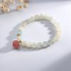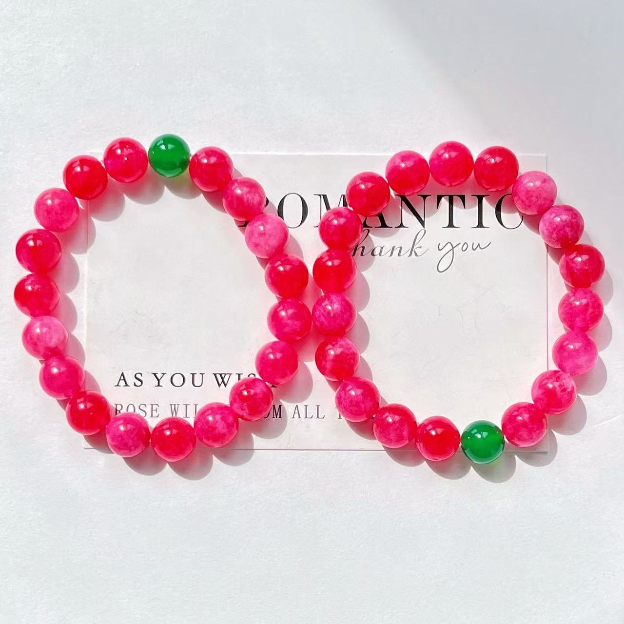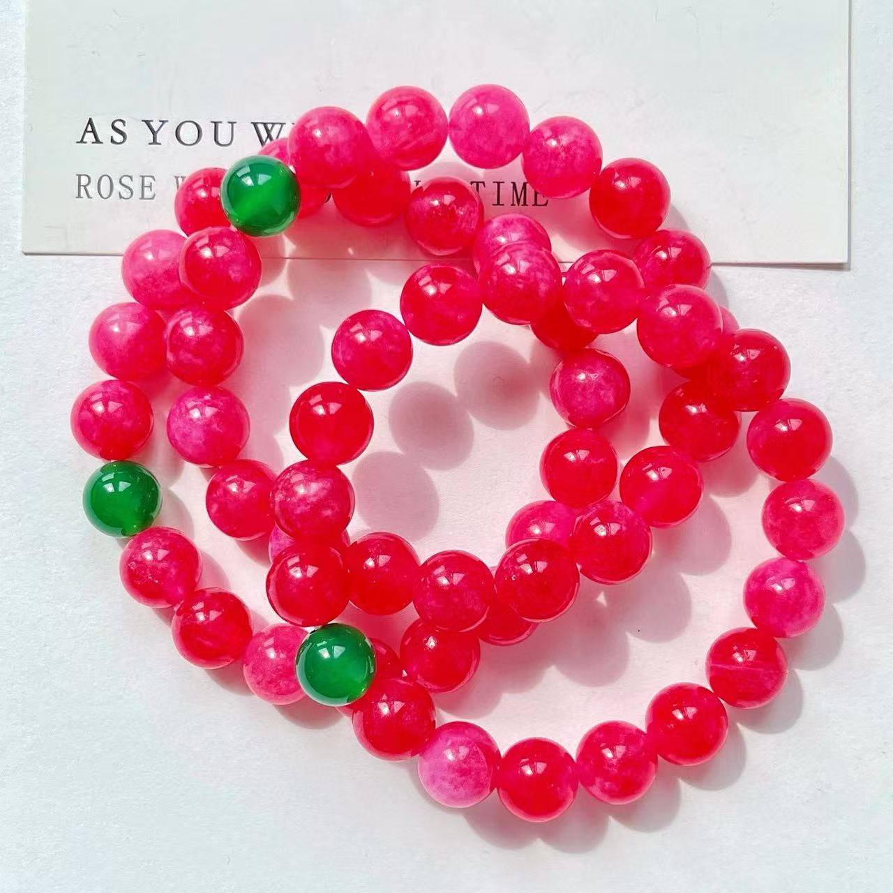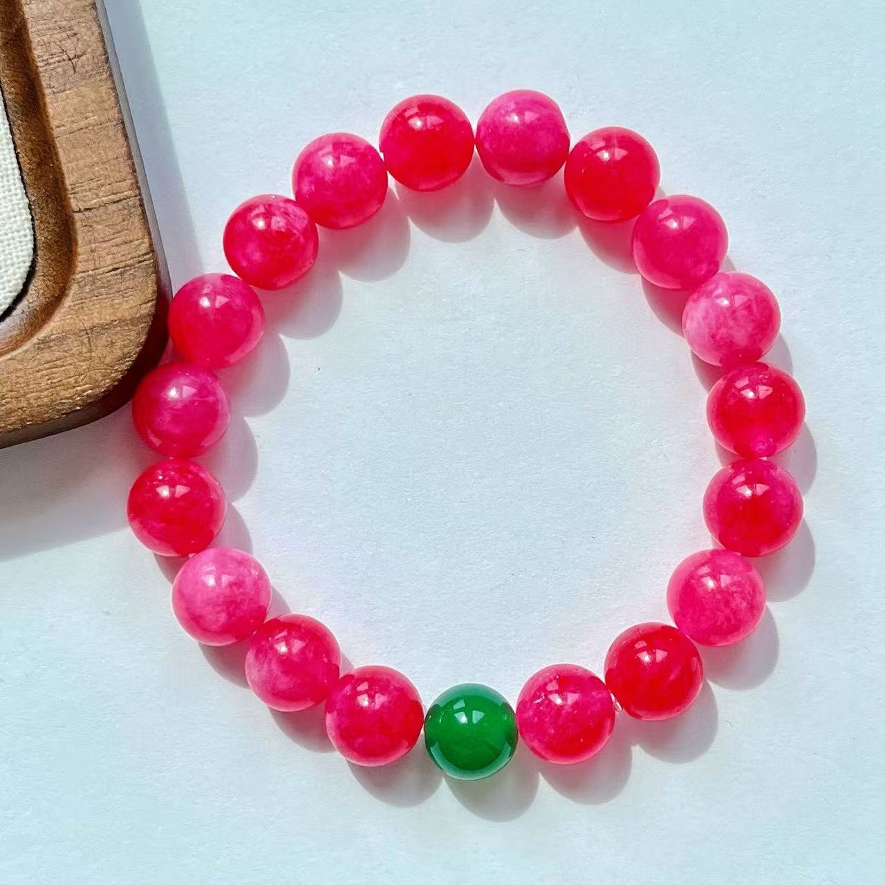 Pulsera de diseño retro Guofeng con cuarcita color rubí y calcedonia verde natural en contraste.