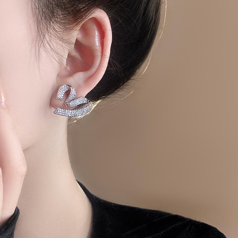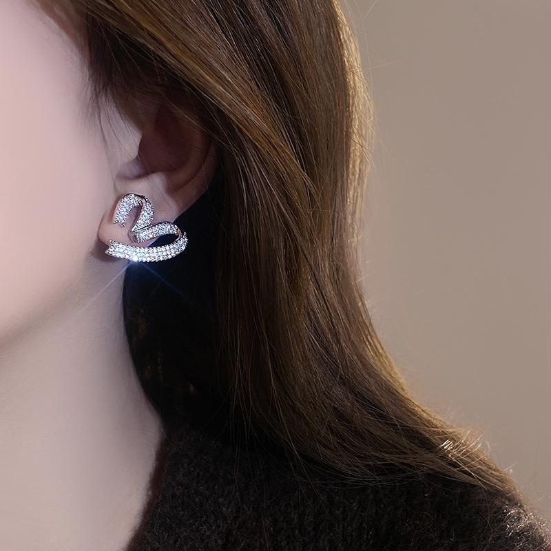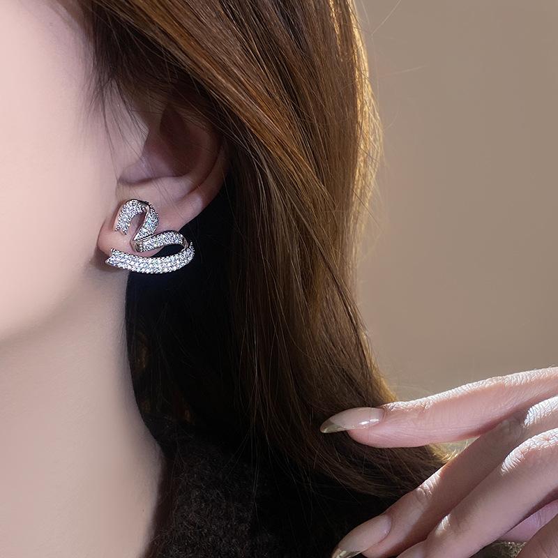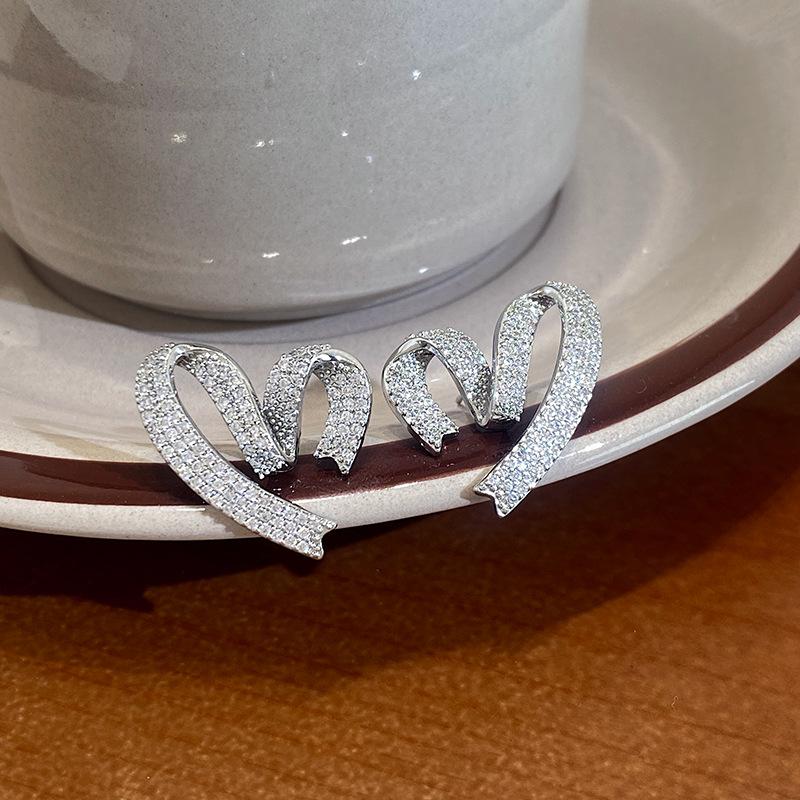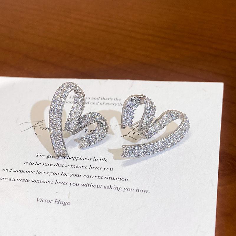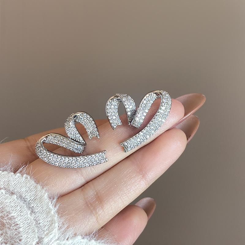Pendientes de plata con circonitas de amor, estilo coreano, sencillos, de moda, estilo frío, para todo tipo de ocasiones, ligeros, de lujo y de alta gama.