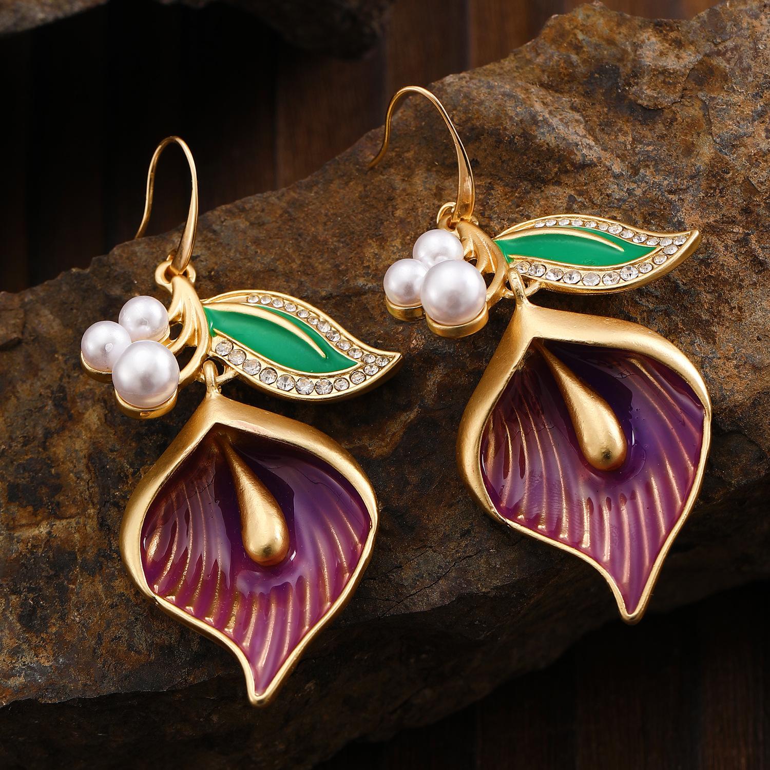Pendientes de flor de cala de tendencia europea y americana, pendientes de personalidad de temperamento de moda, pendientes esmaltados largos y versátiles