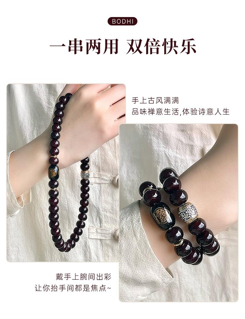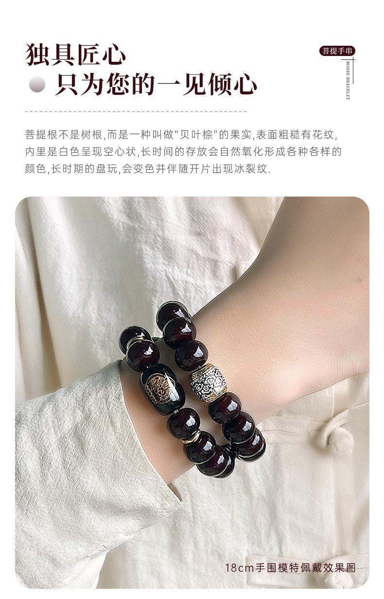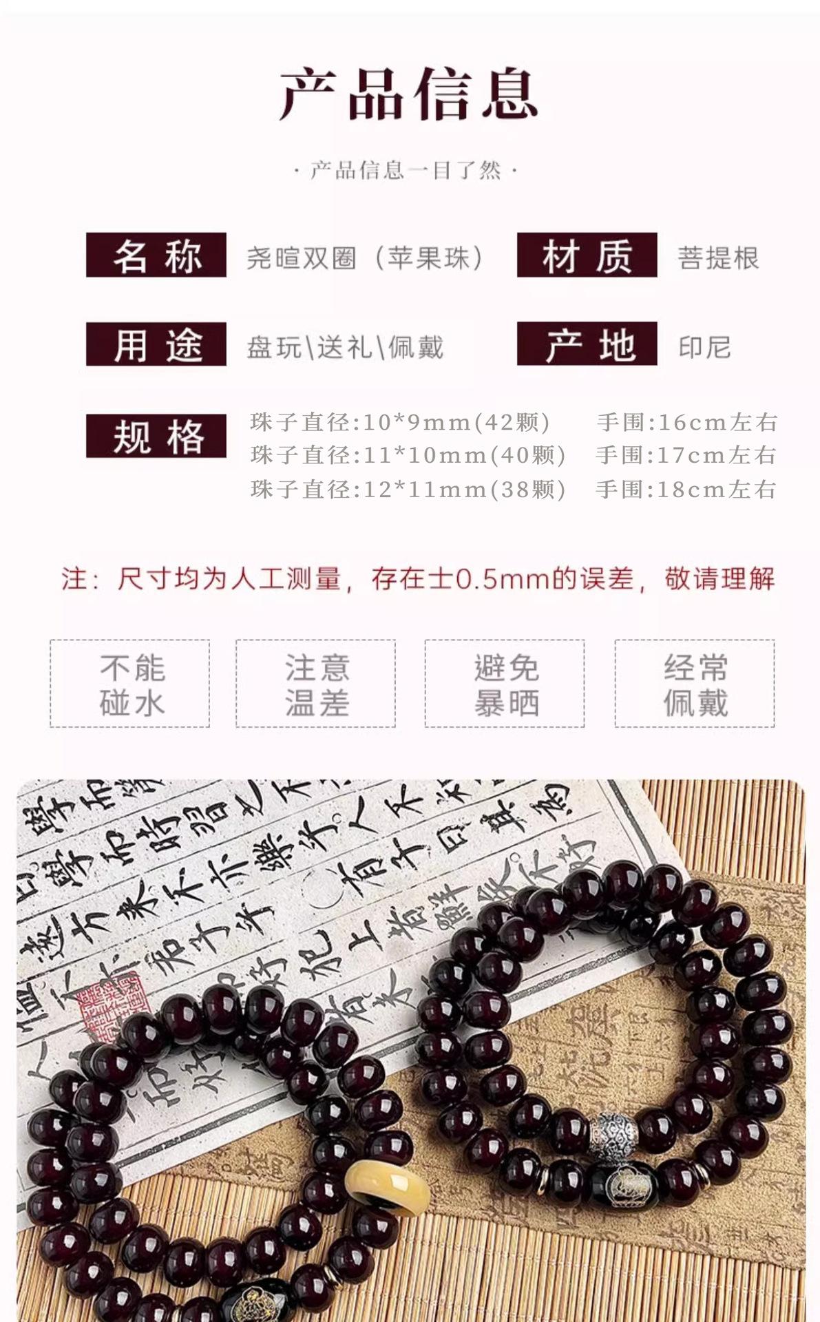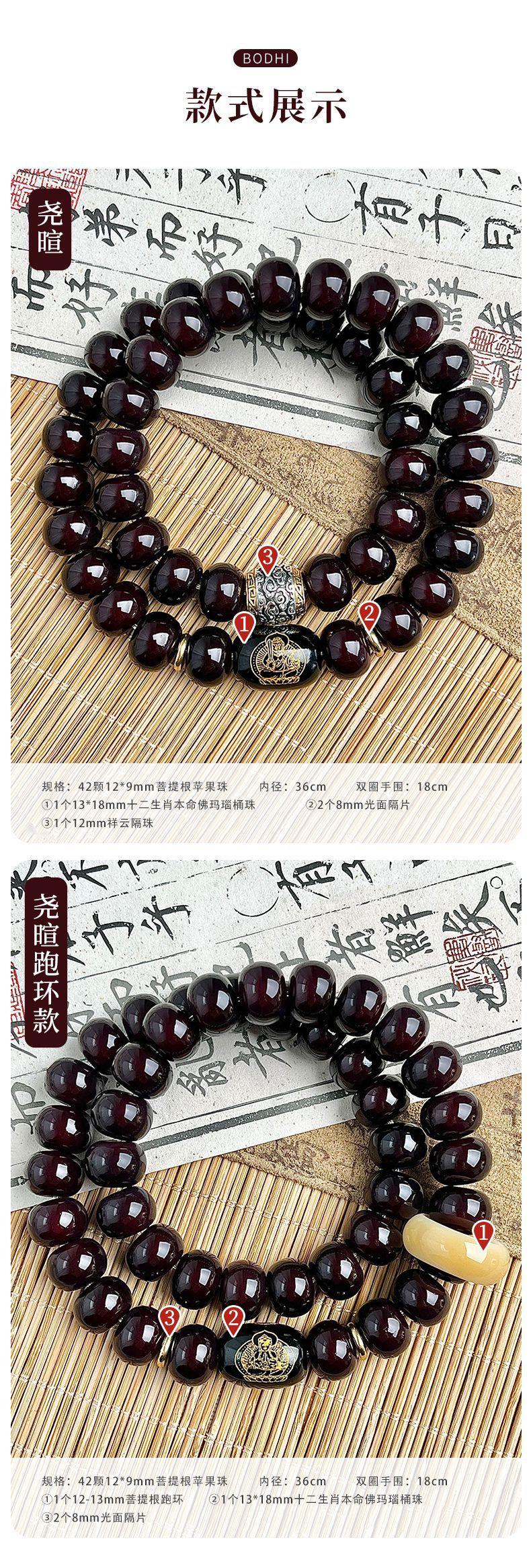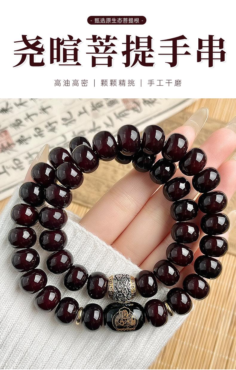 [Yao Xuan] Pulsera de cuentas con placa de doble círculo de material antiguo con forma de corazón desgastado y cuerda de mano Bodhi con explosiones en vivo, suministro directo de fábrica