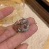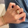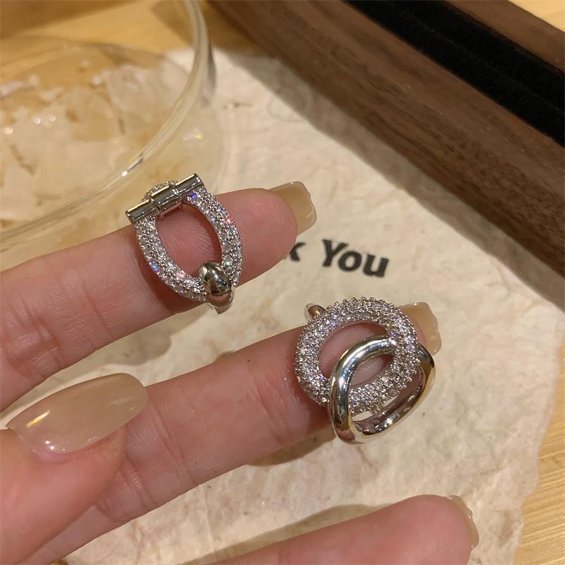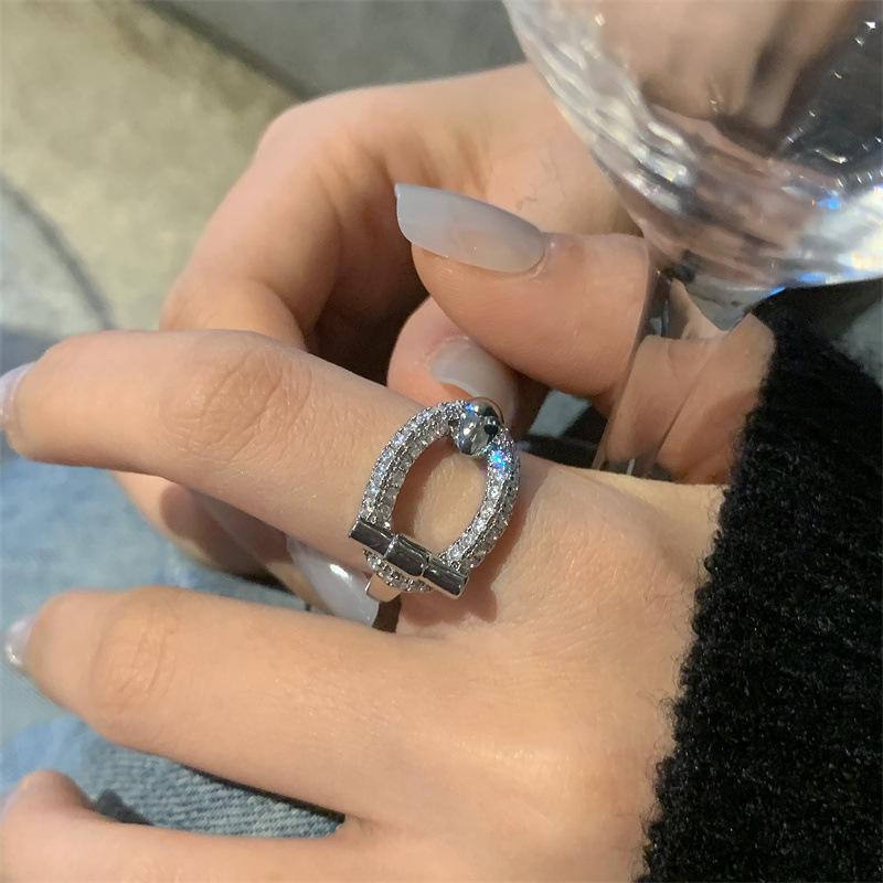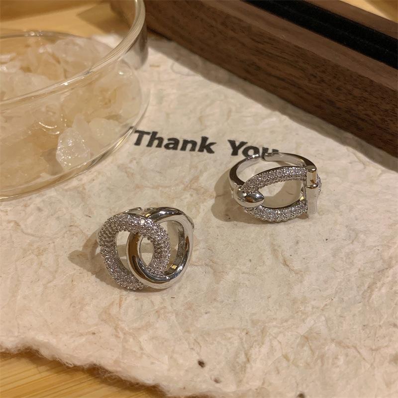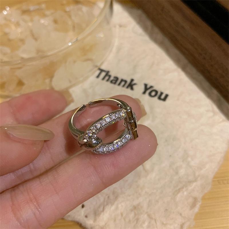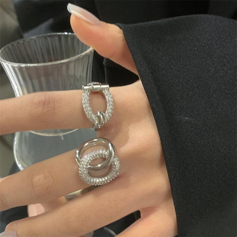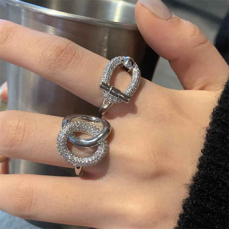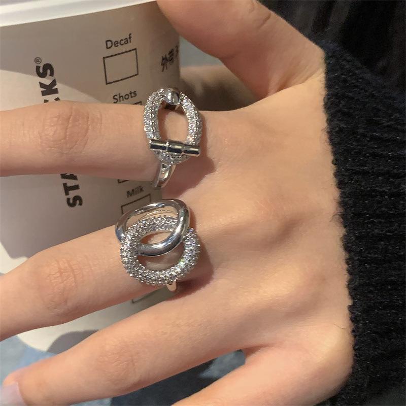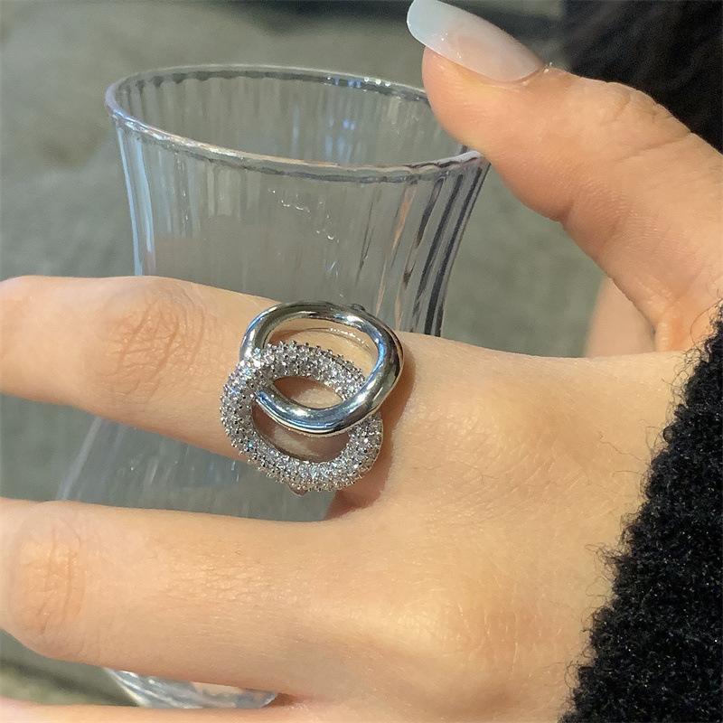 Anillo de estilo coreano Niche, chapado en cobre y oro auténtico con microincrustaciones de circonitas, doble círculo envolvente, edición ancha, ligero, lujoso, combinable y elegante.