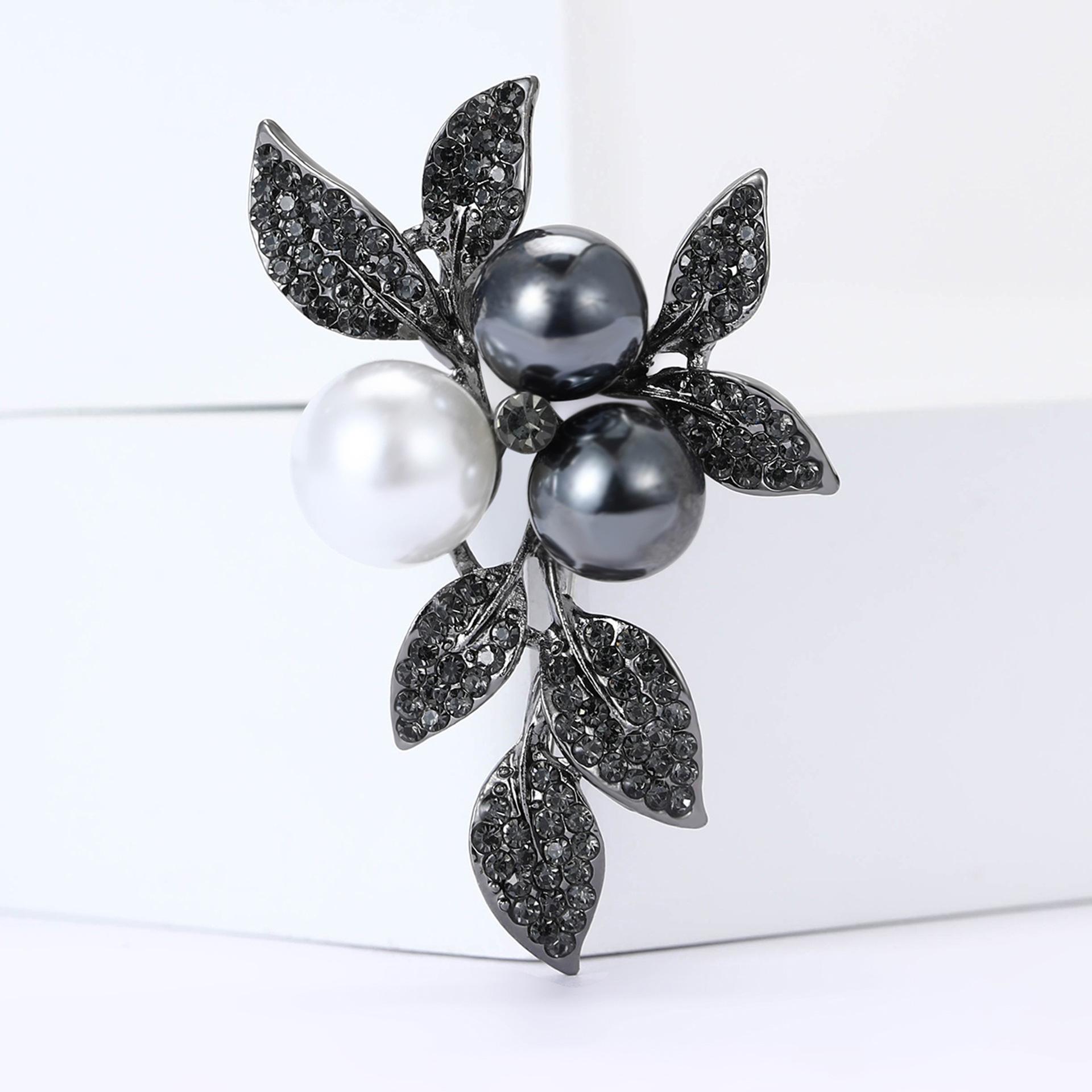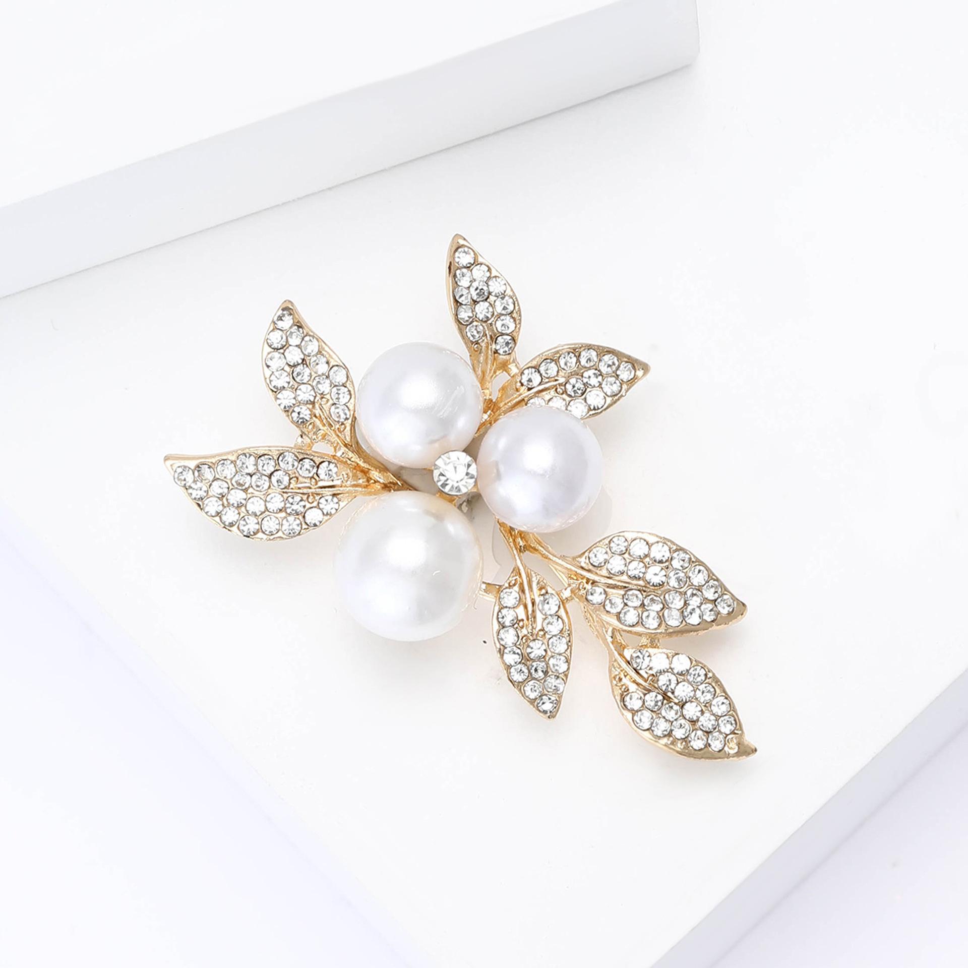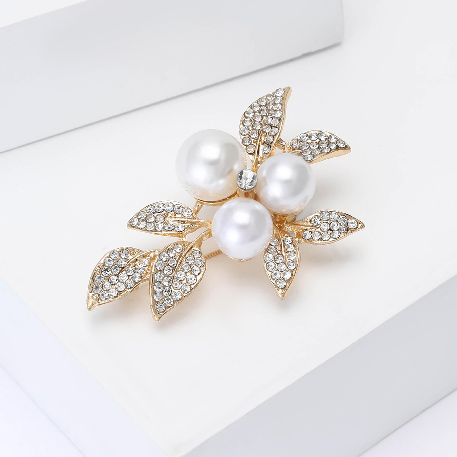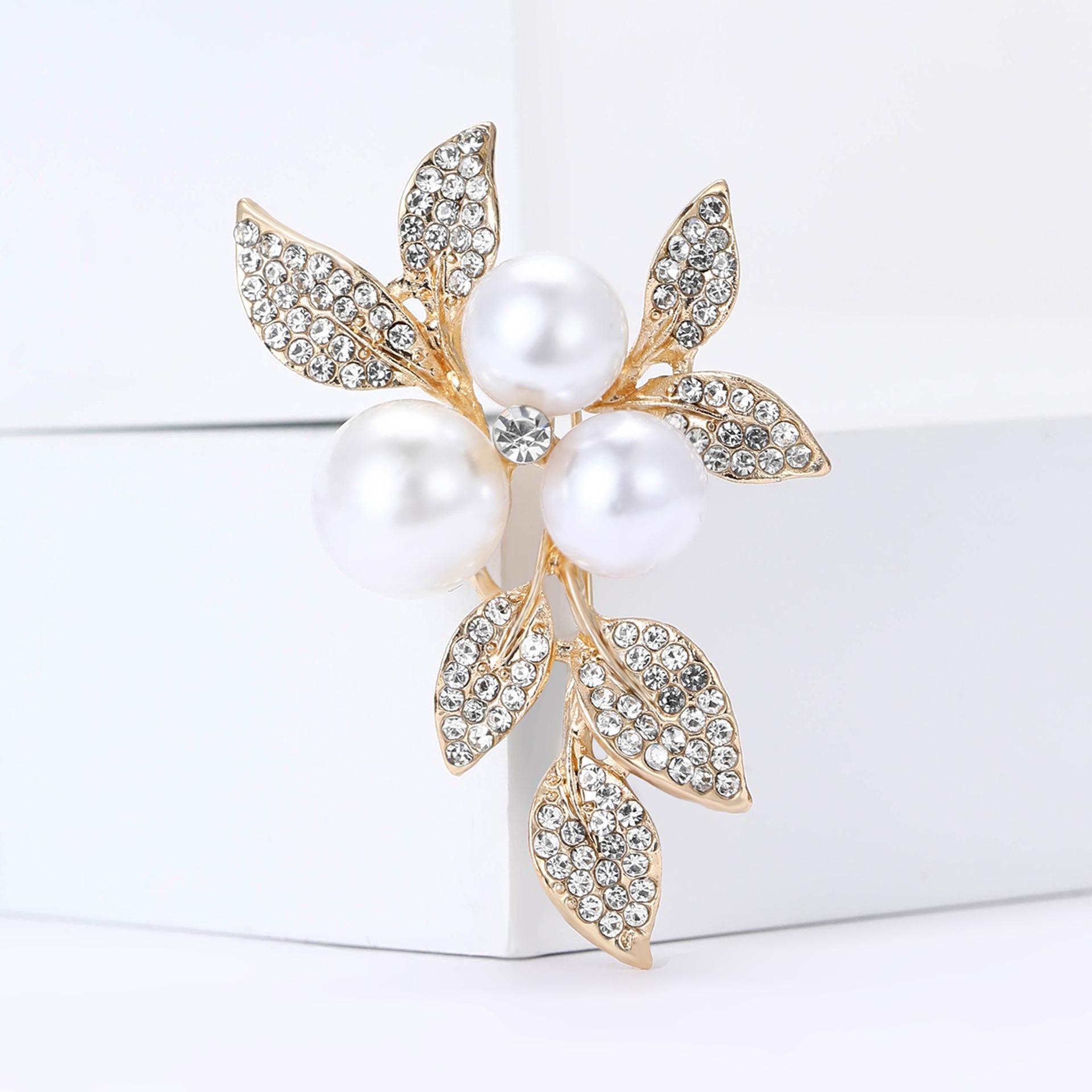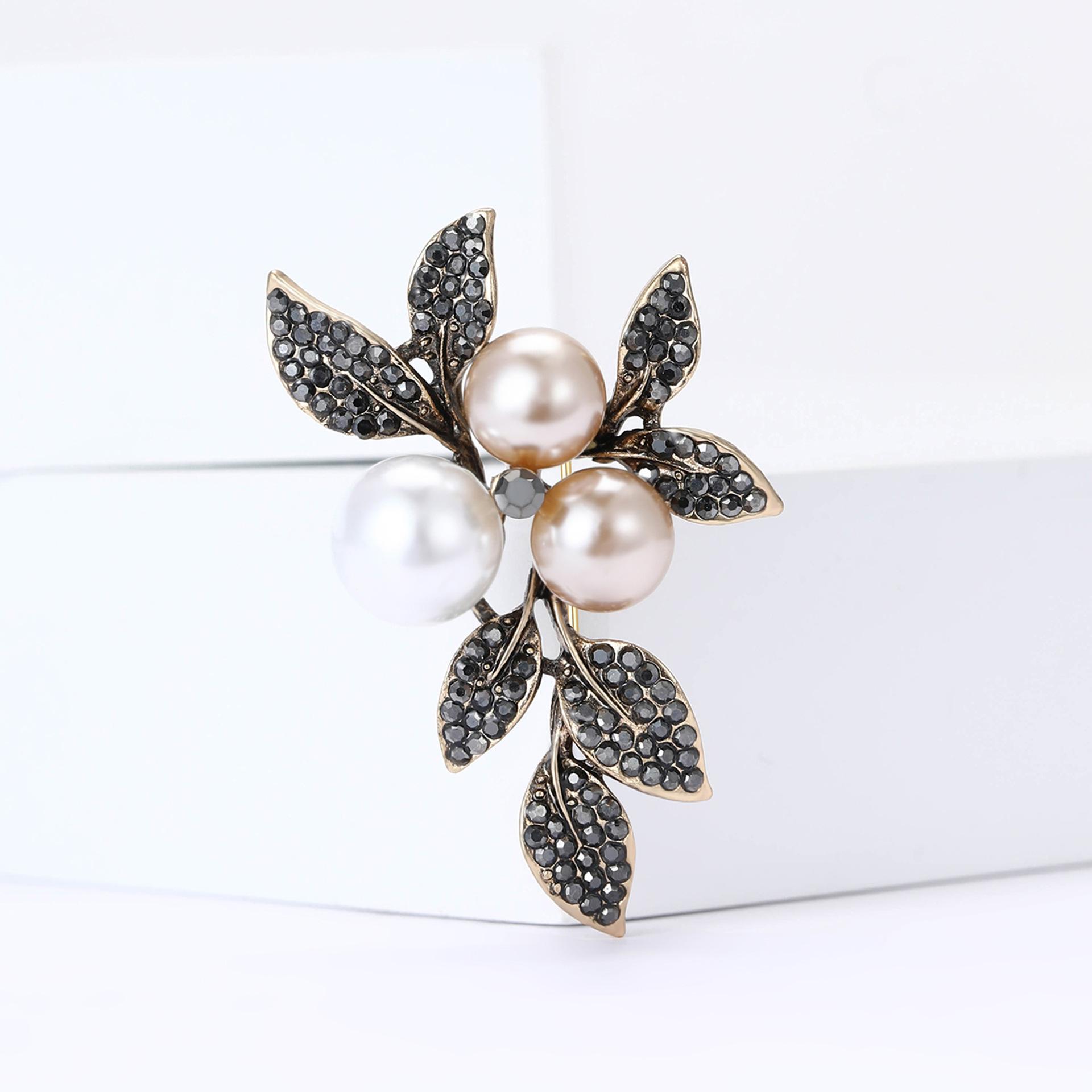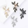 Broche de hoja de aleación vintage con diamantes de imitación, estilo temperamento, combina con todo, para mujer, para traje, abrigo, ramillete, alfiler de joyería.