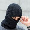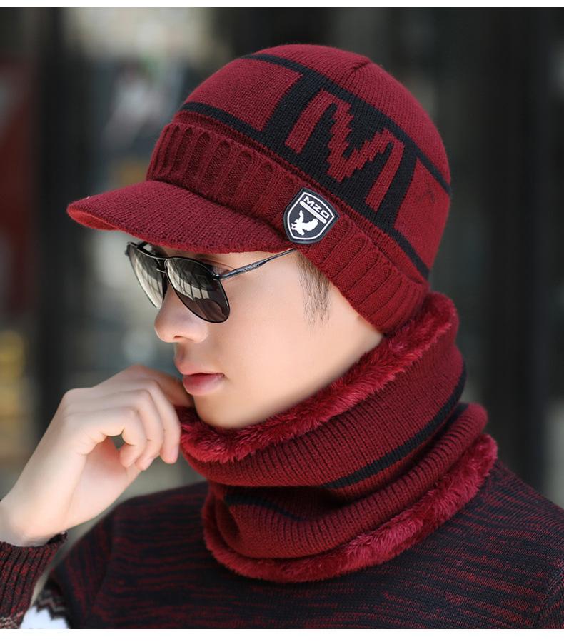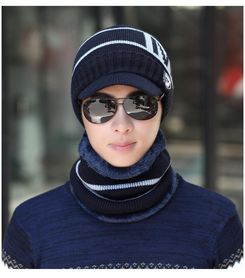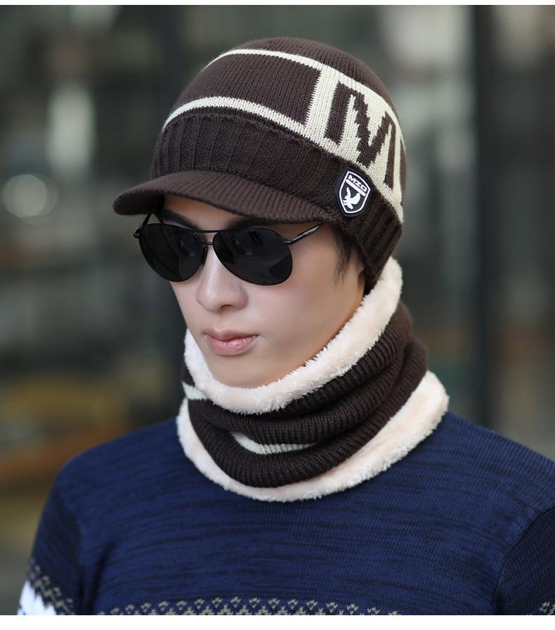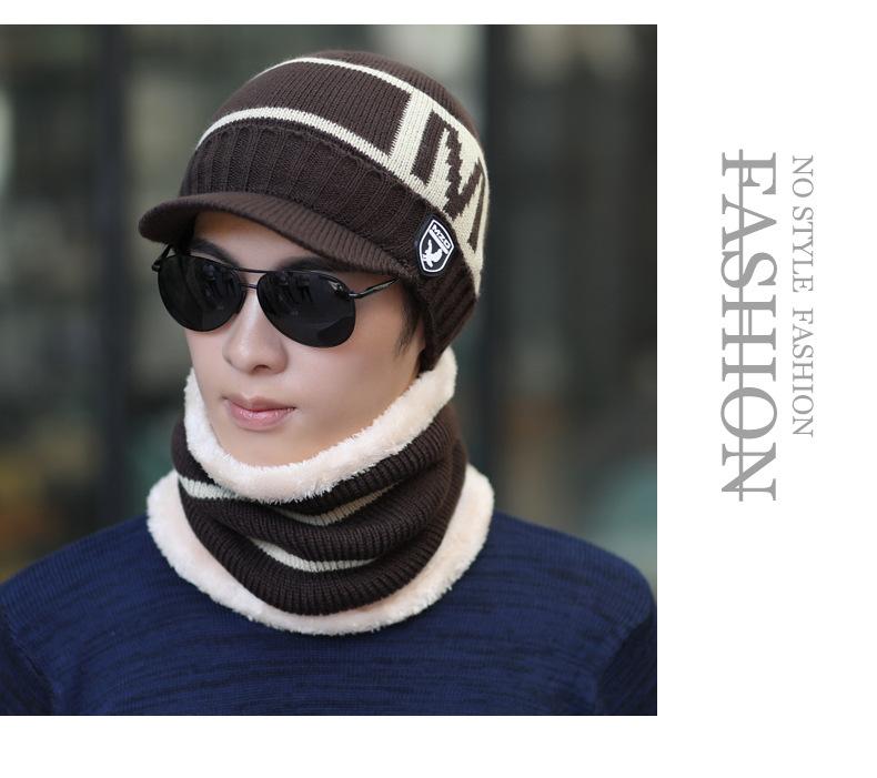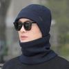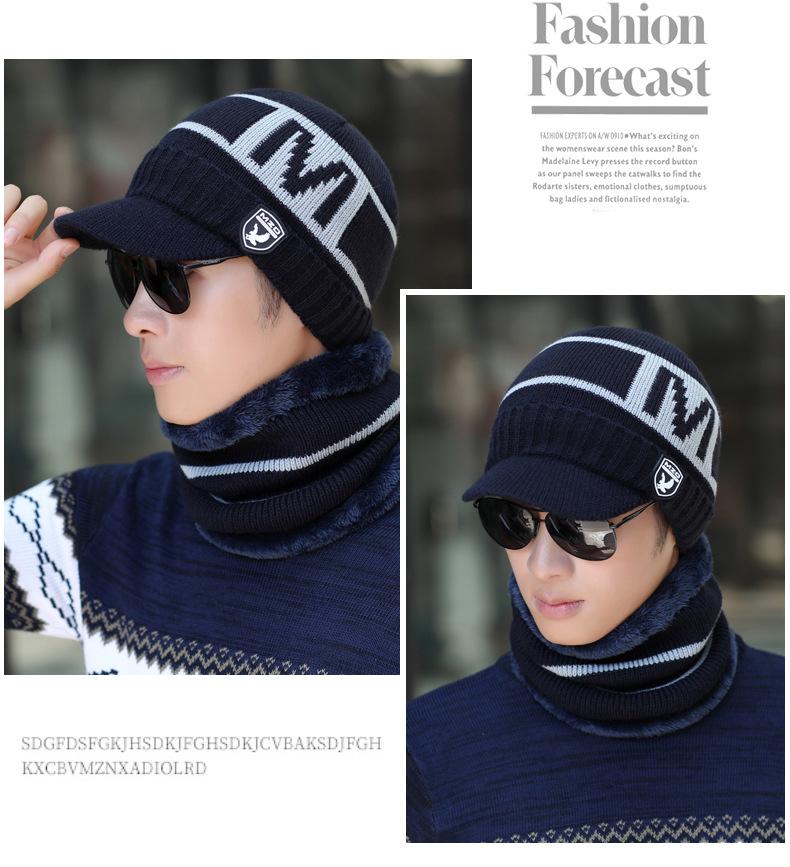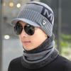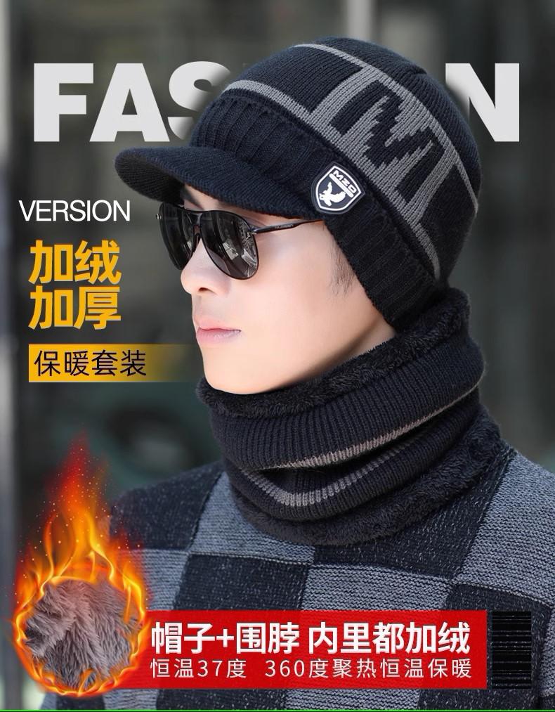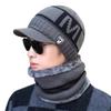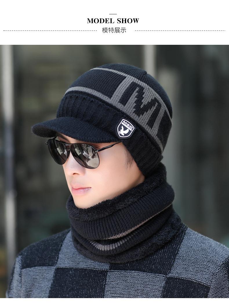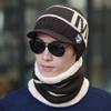Gorro de lana cálido de invierno para hombre, gorro de punto grueso con forro polar, gorro coreano con protección para las orejas, conjunto de dos piezas para el cabello