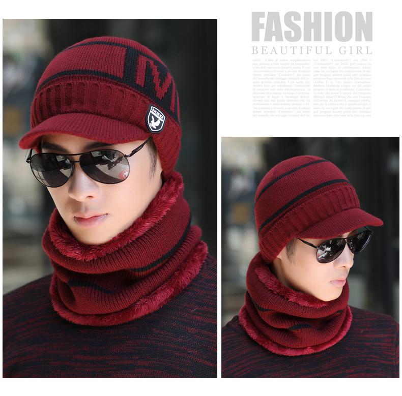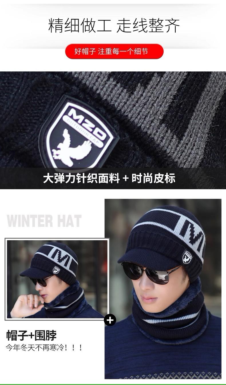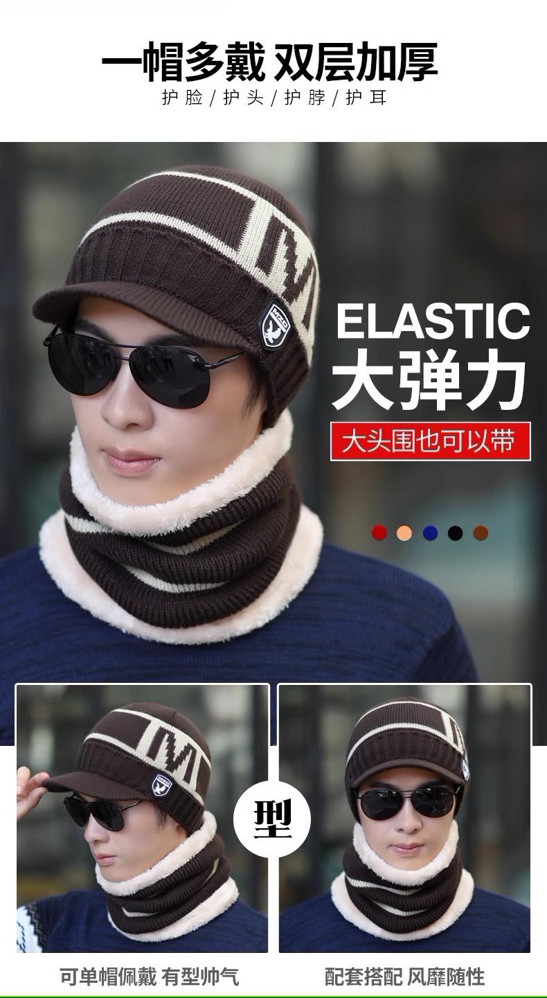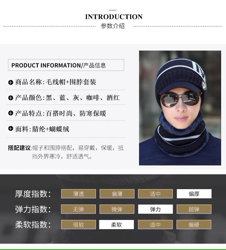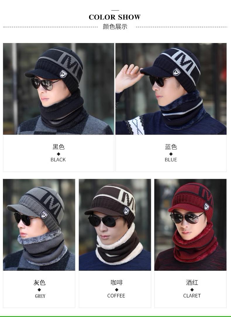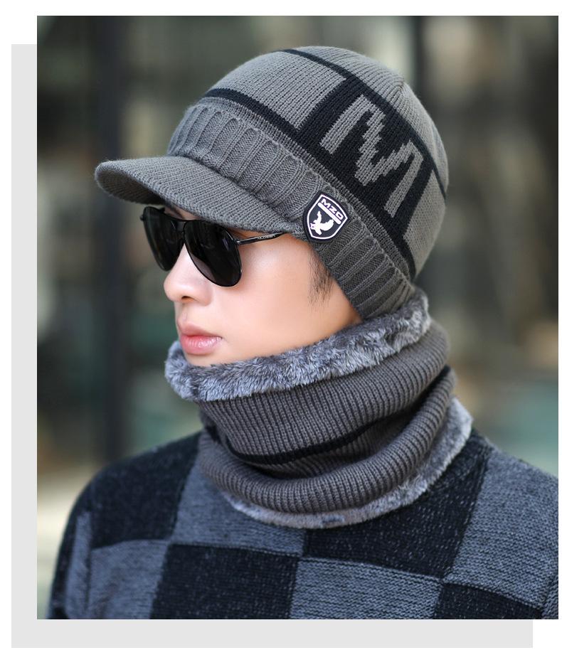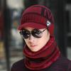 Gorro de lana cálido de invierno para hombre, gorro de punto grueso con forro polar, gorro coreano con protección para las orejas, conjunto de dos piezas para el cabello