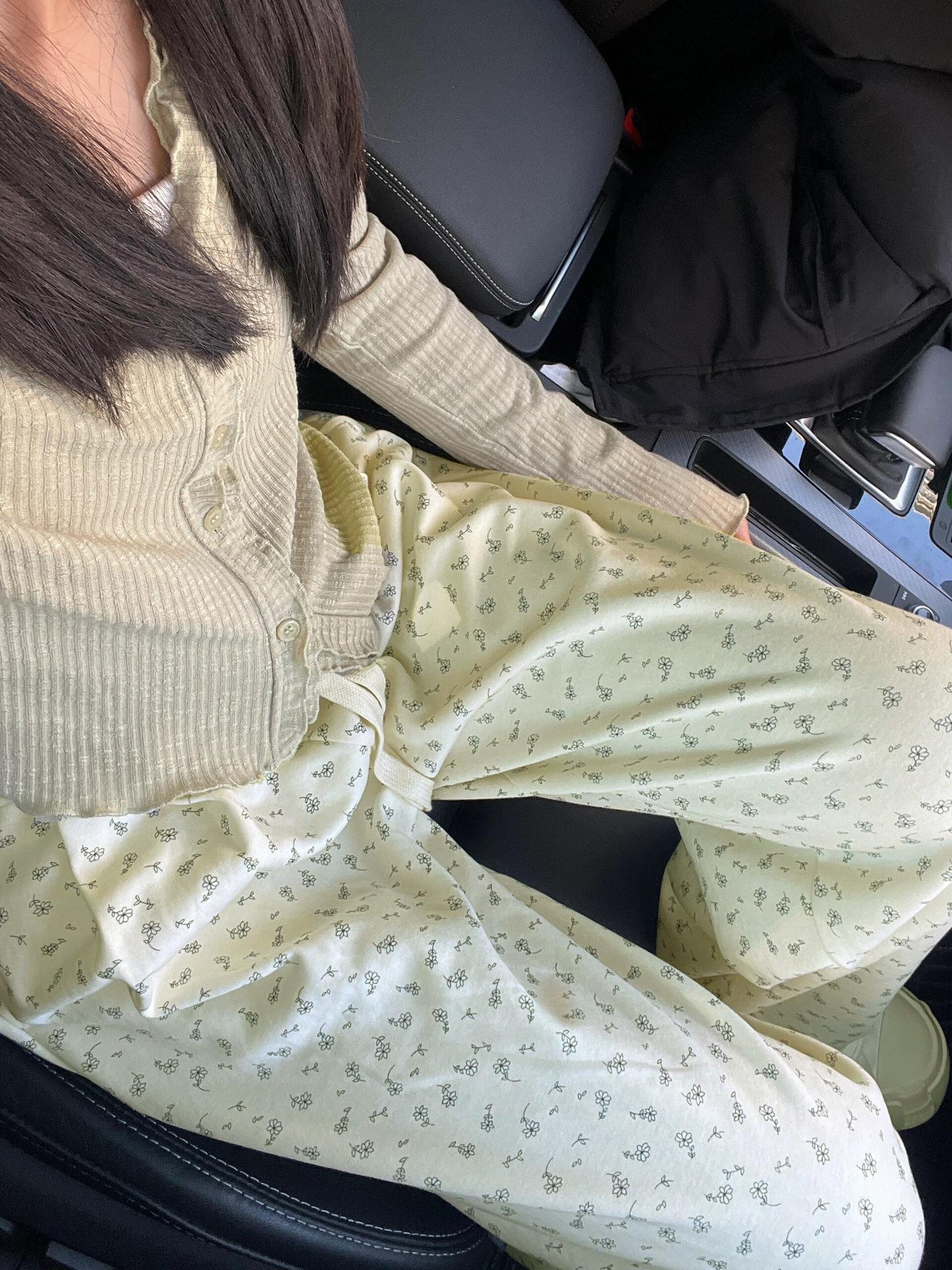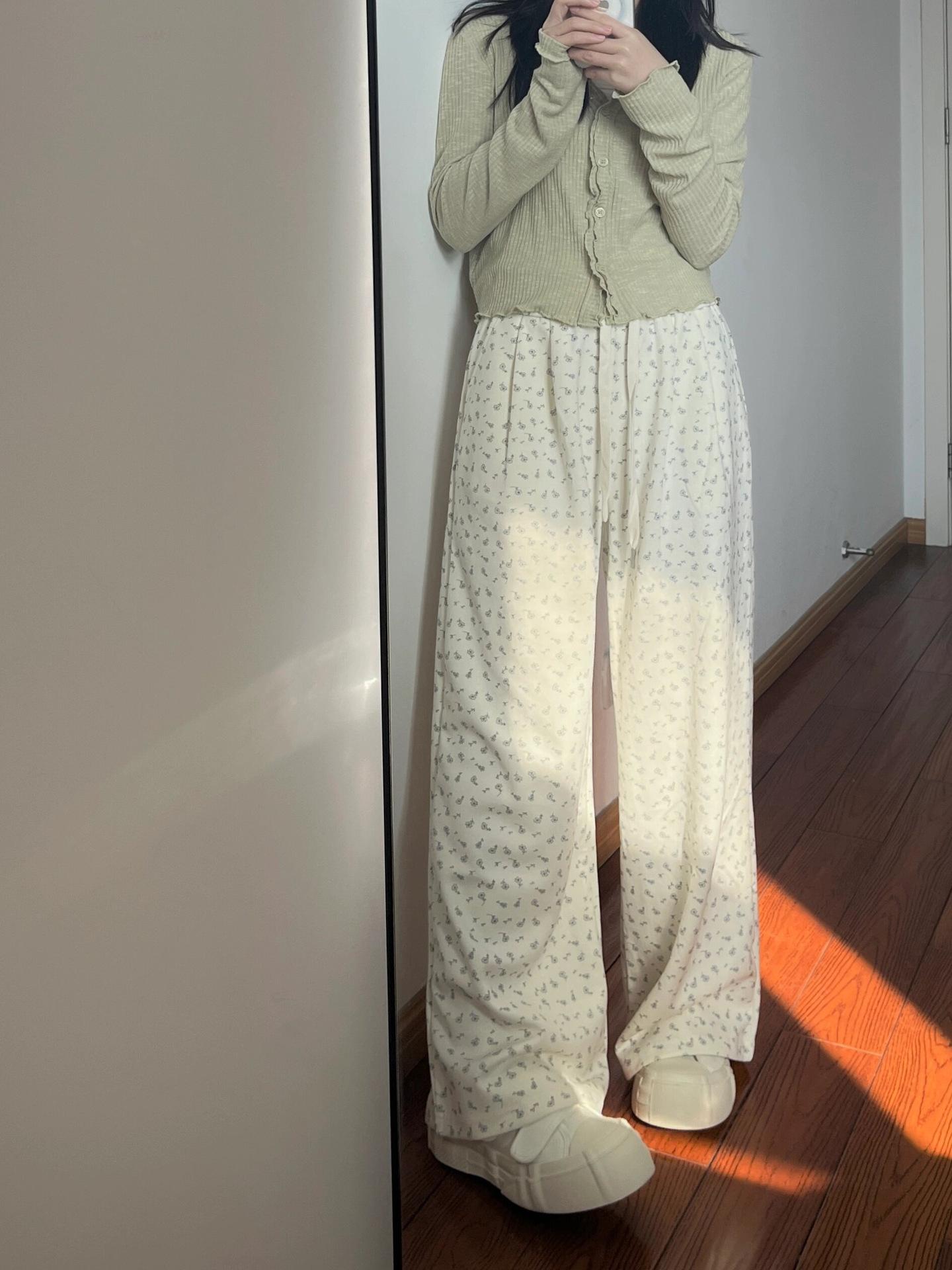 Compra Pantalones anchos informales con estampado floral pequeño estilo americano para mujer, primavera y verano, cintura alta, adelgazantes, holgados, rectos, para mujer al por mayor en Joom.pro