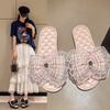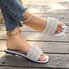 Zapatillas planas de punta cuadrada de color puro estilo coreano con pedrería de una línea para mujer, zapatillas de casa sin cordones para mujer, zapatillas
