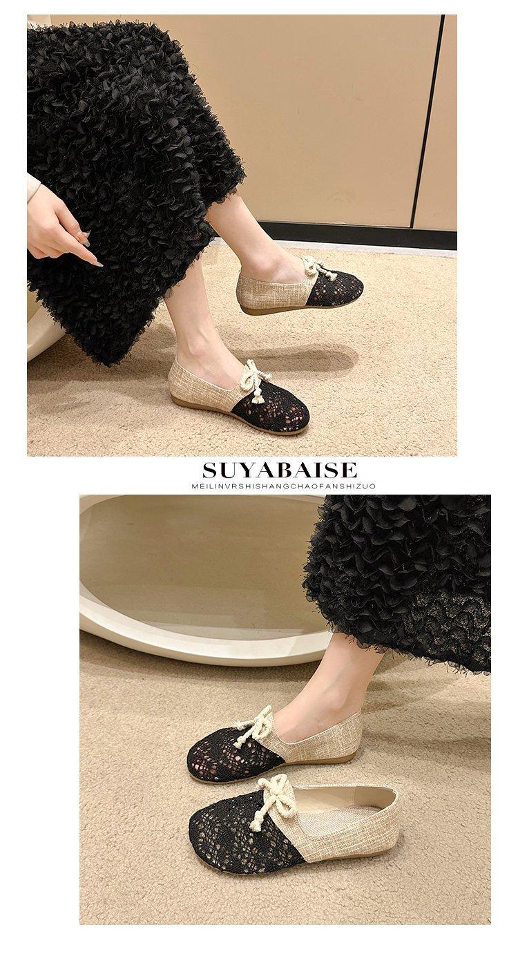 Zapatos individuales de mujer 2024 verano nuevos retro literarios zapatos planos de boca baja de punta redonda para mujer Mori de suela blanda zapatos tipo mocasín al por mayor