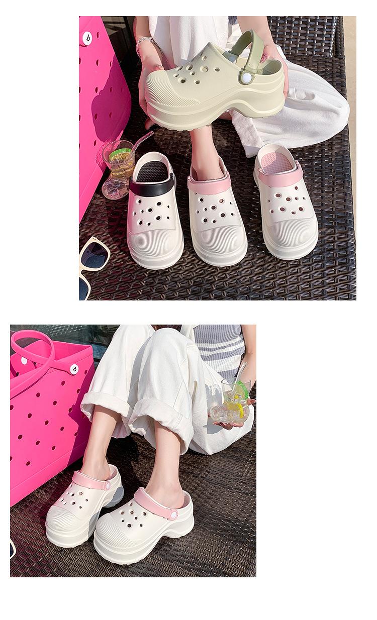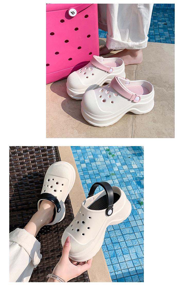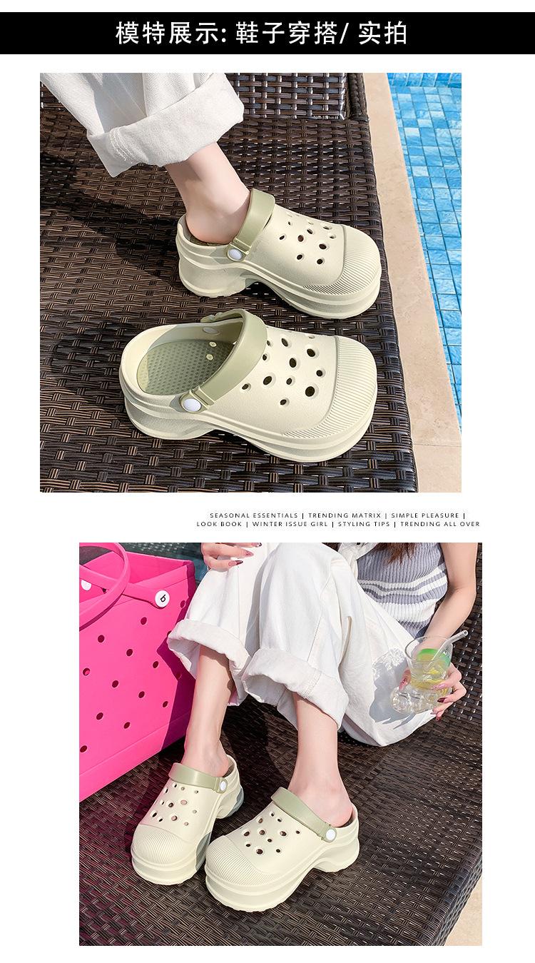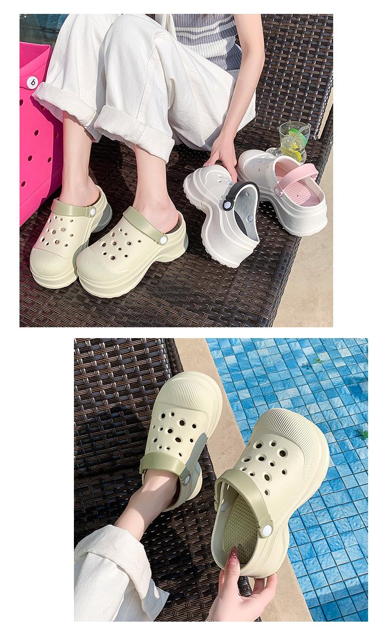 Zapatos de Agujeros para Mujer Verano Suela Gruesa Aumentada Resistente al Desgaste Transpirable Puntera Cerrada Tops EVA Ropa Exterior No Pie Apestoso Antideslizante Sandalias de Tacón