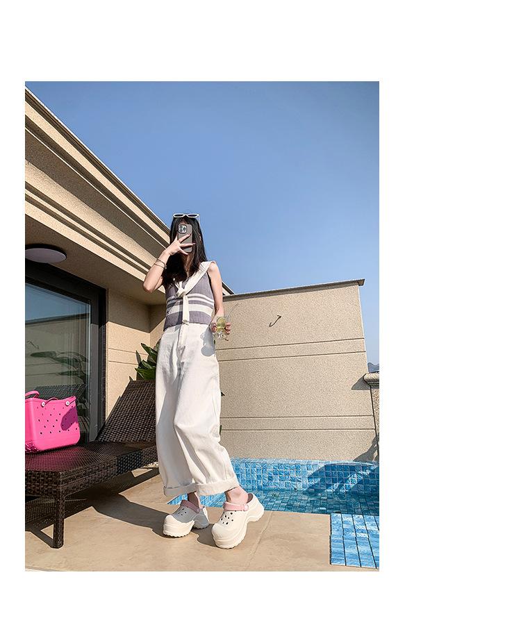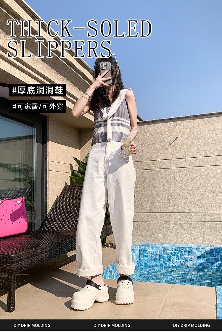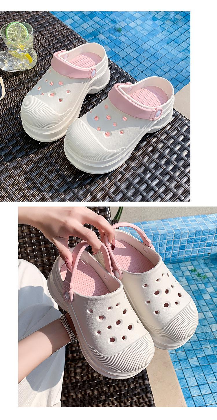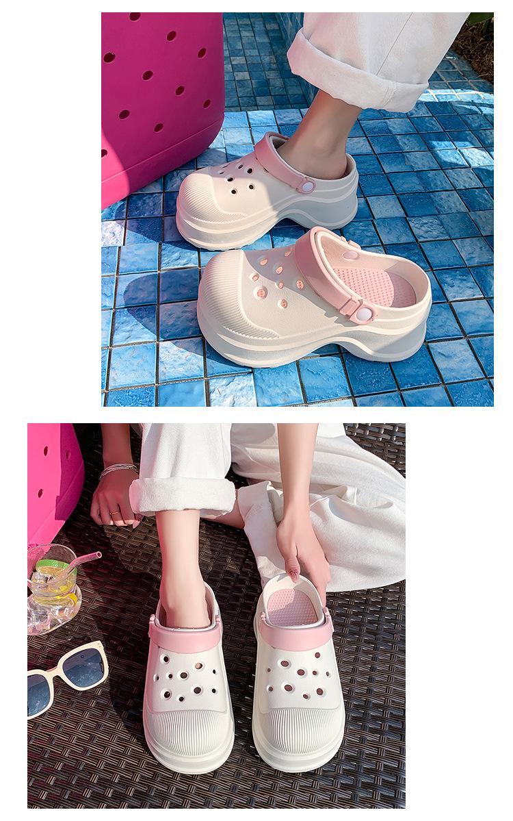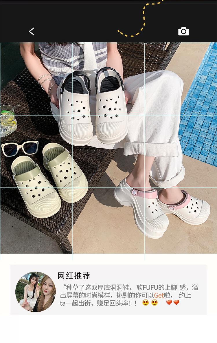 Zapatos de Agujeros para Mujer Verano Suela Gruesa Aumentada Resistente al Desgaste Transpirable Puntera Cerrada Tops EVA Ropa Exterior No Pie Apestoso Antideslizante Sandalias de Tacón