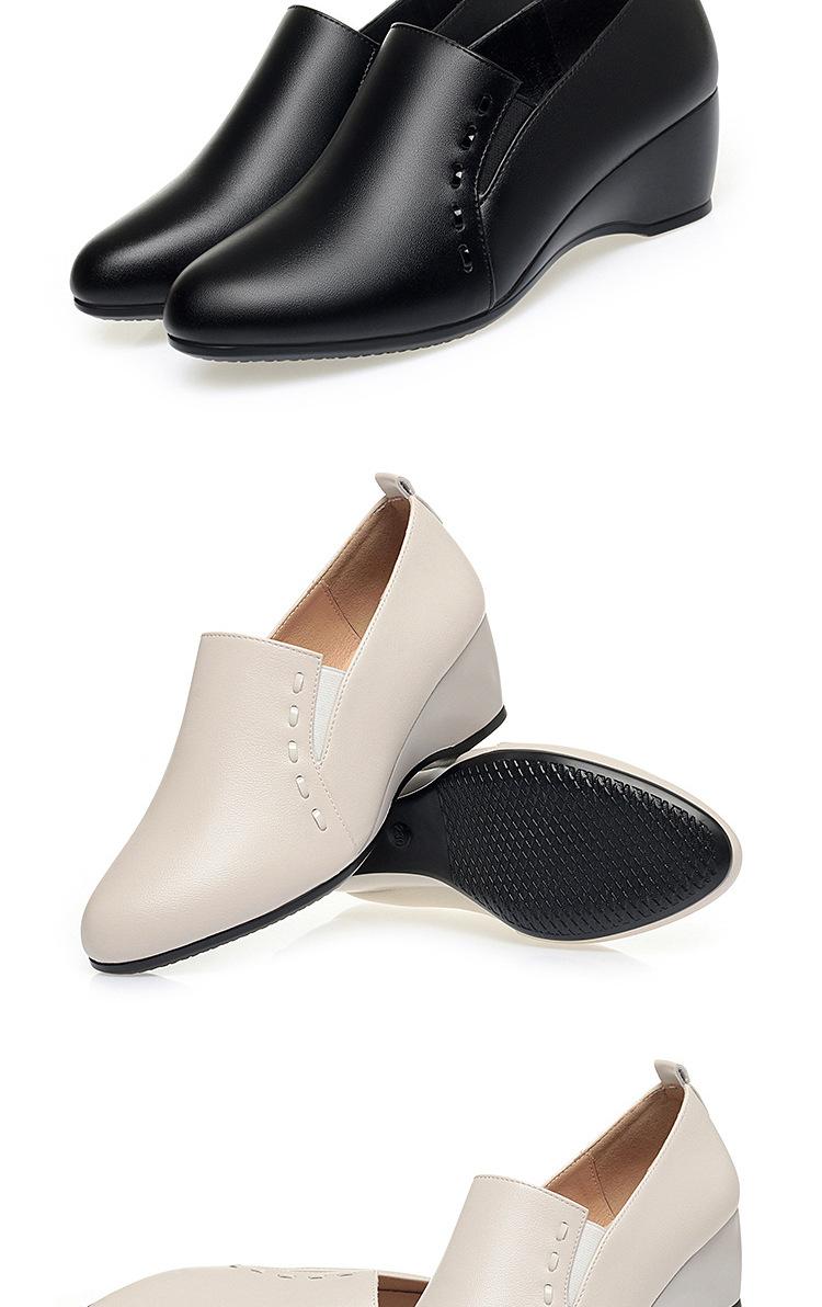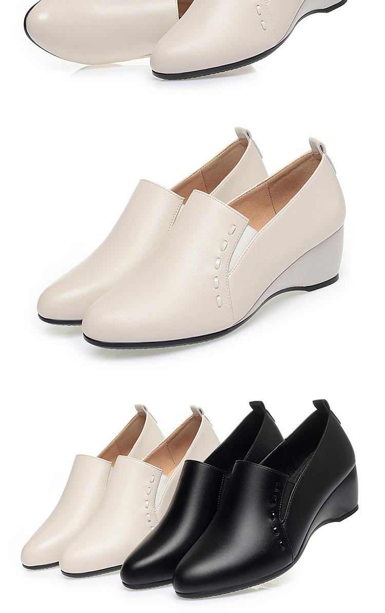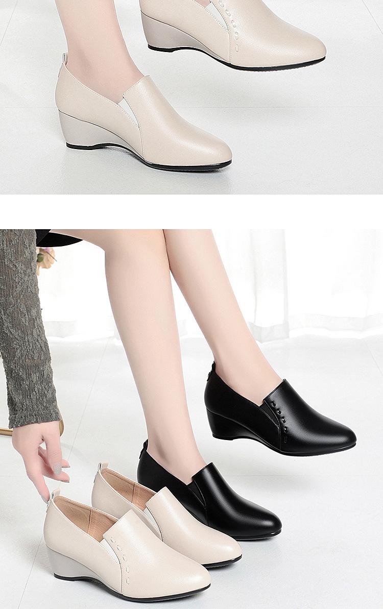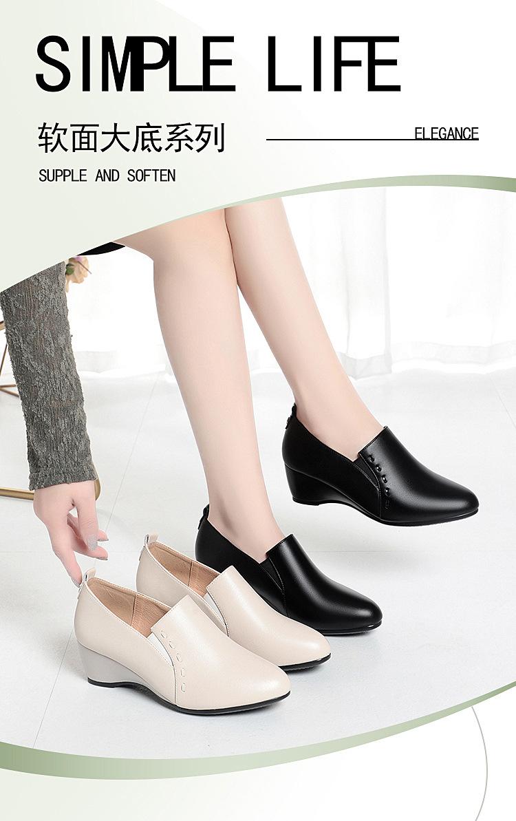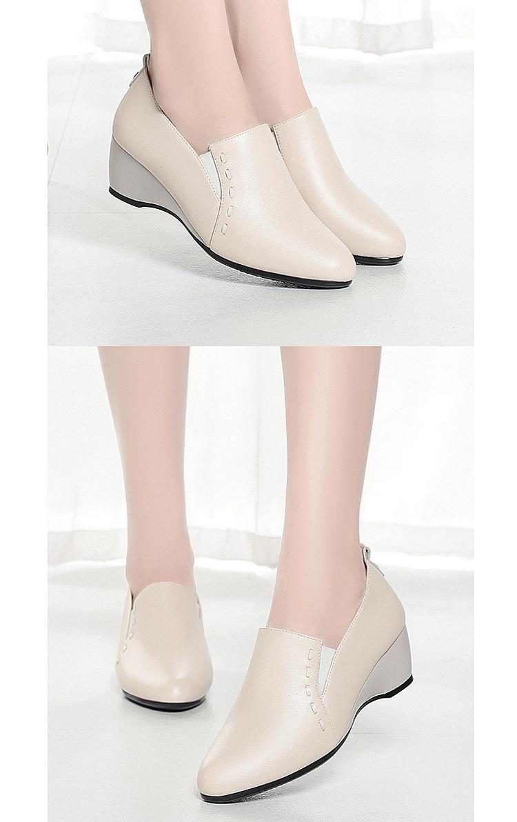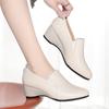 Una generación de zapatos de madre, zapatos de tacón de cuña de primavera y otoño, zapatos de mujer de cuero suave, cómodos zapatos de mujer de suela blanda, zapatos de cuero blanco arroz de mediana edad