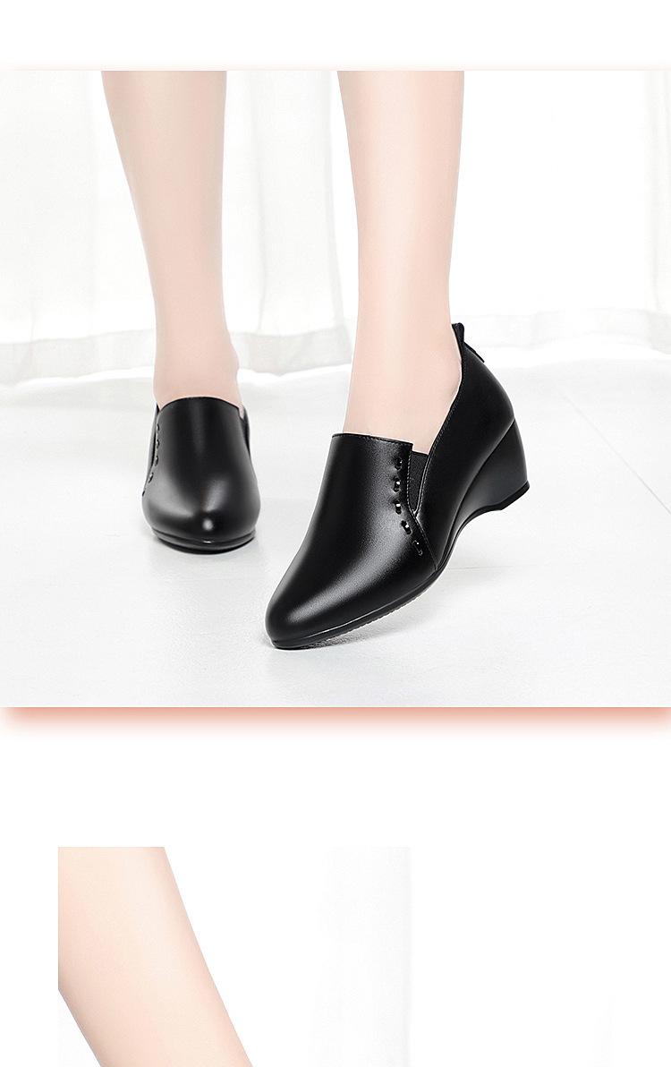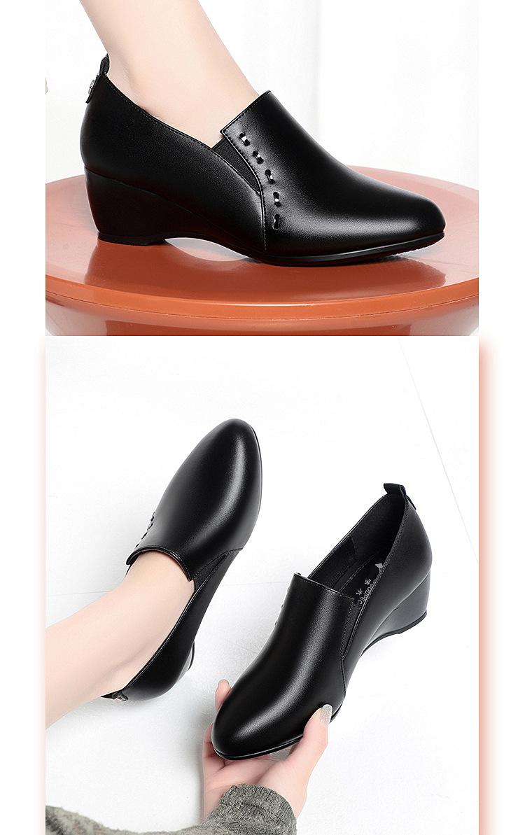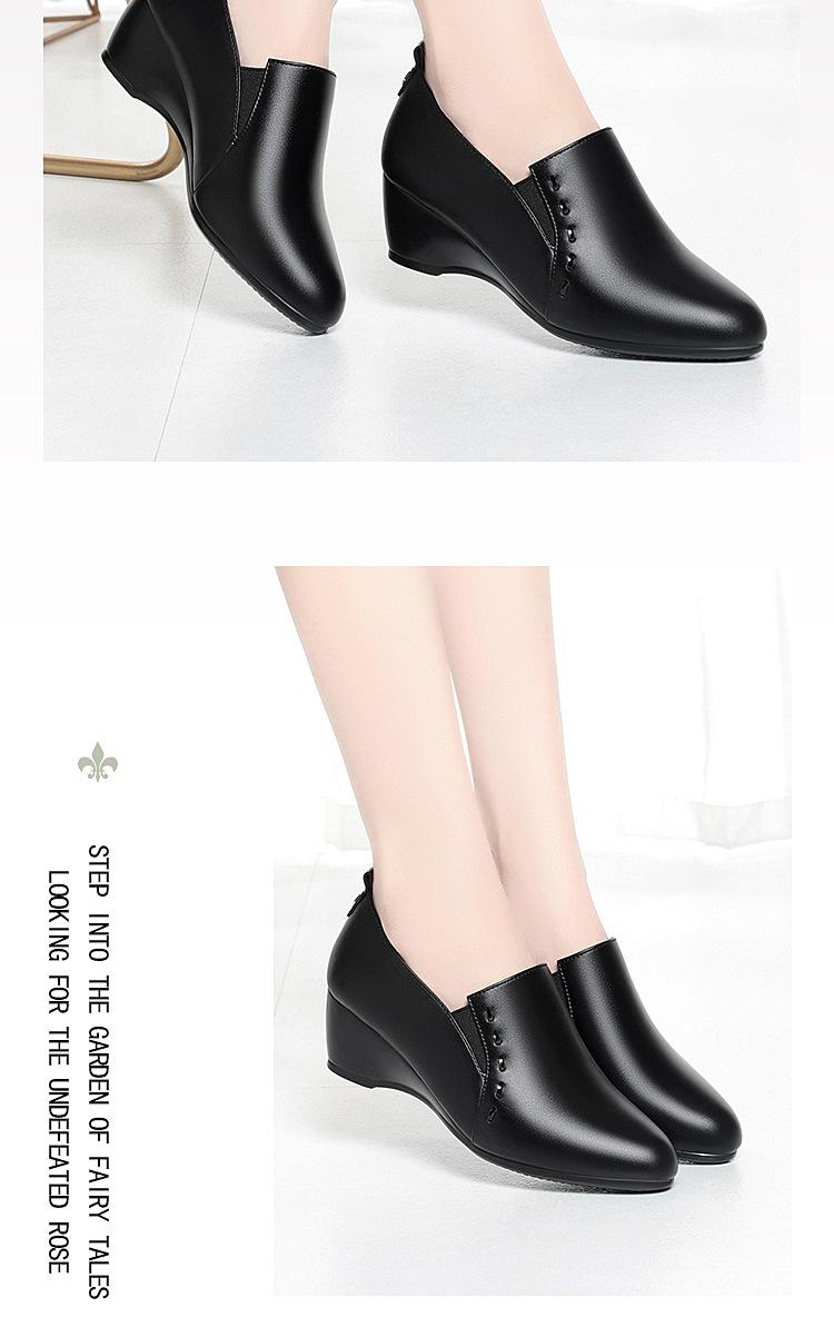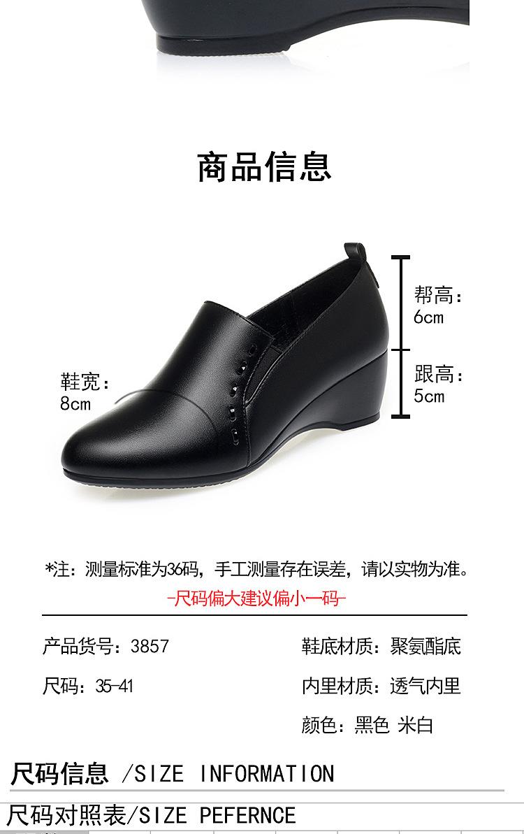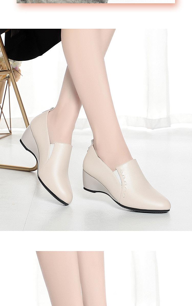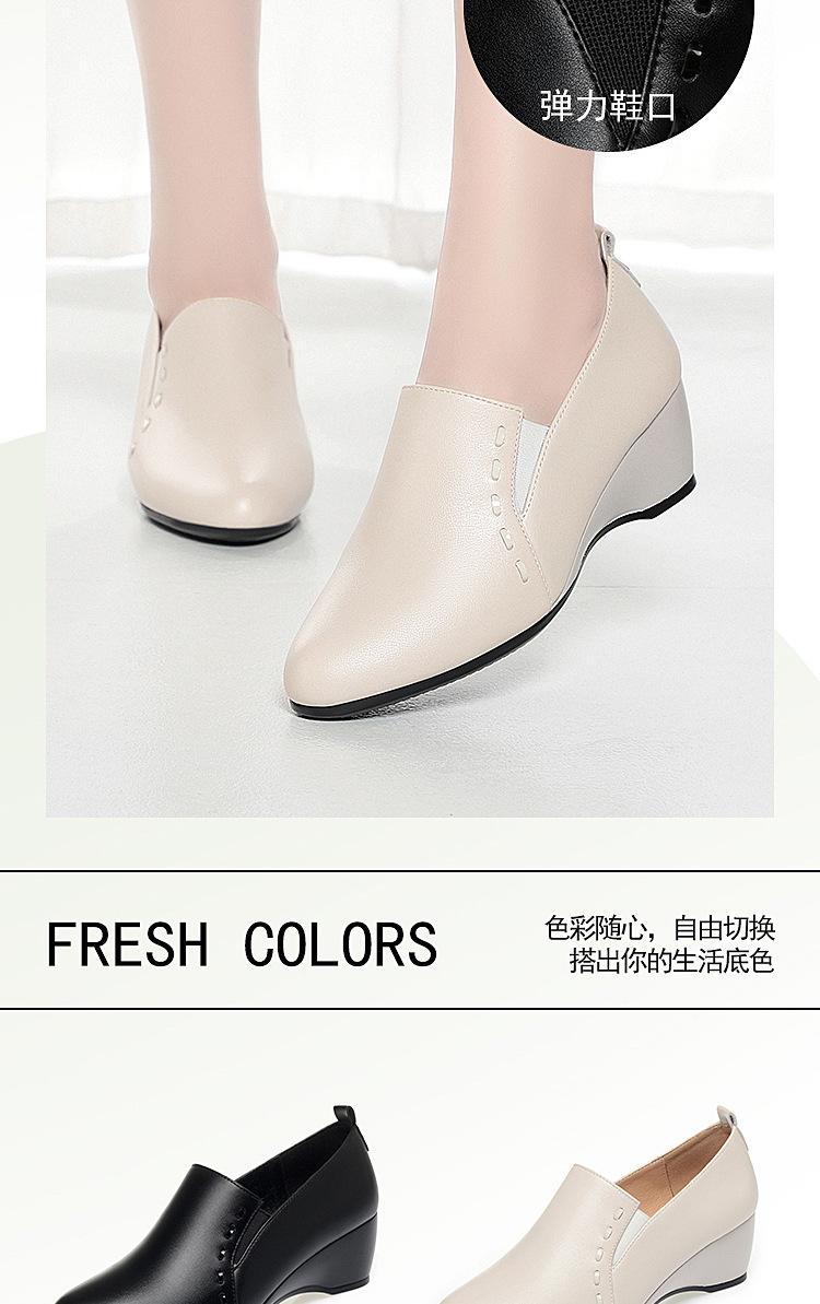 Una generación de zapatos de madre, zapatos de tacón de cuña de primavera y otoño, zapatos de mujer de cuero suave, cómodos zapatos de mujer de suela blanda, zapatos de cuero blanco arroz de mediana edad
