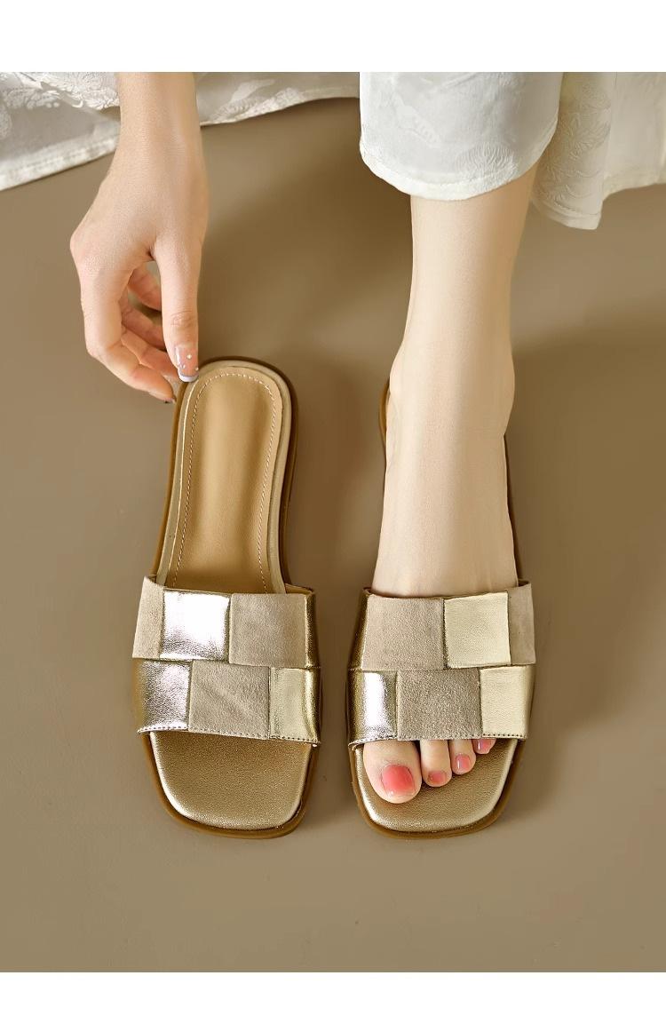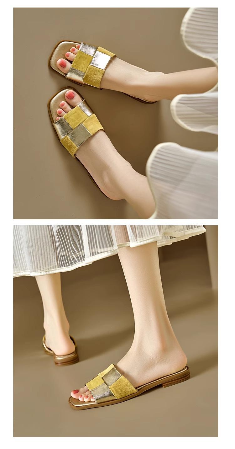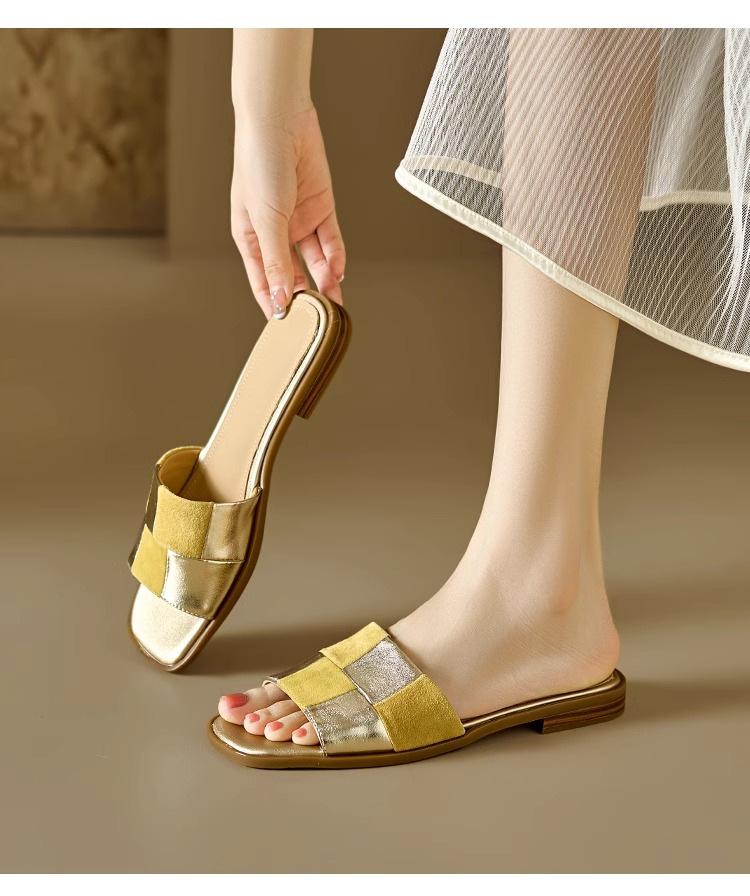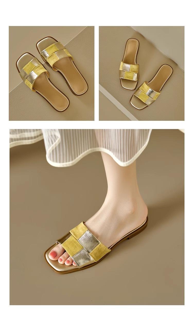 Sandalias planas informales con diseño vintage de patchwork francés para mujer, estilo verano 2024