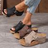 Nuevas Pantuflas de Plataforma de Cuña Ligeras de Talla Grande Transfronterizas para Mujer Zapatos de Verano de Tela de un Carácter Sandalias Exteriores de Cuerda de Cáñamo