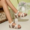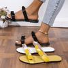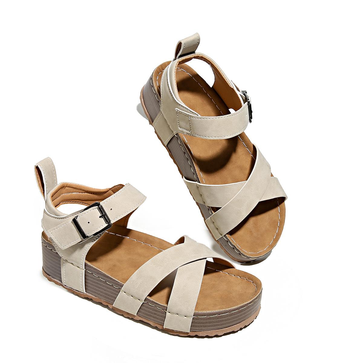 Sandalias casuales de talla grande con borde cruzado para mujer, primavera 2025, nuevas zapatillas de color liso con suela plana y suela gruesa tejidas a mano para mujer