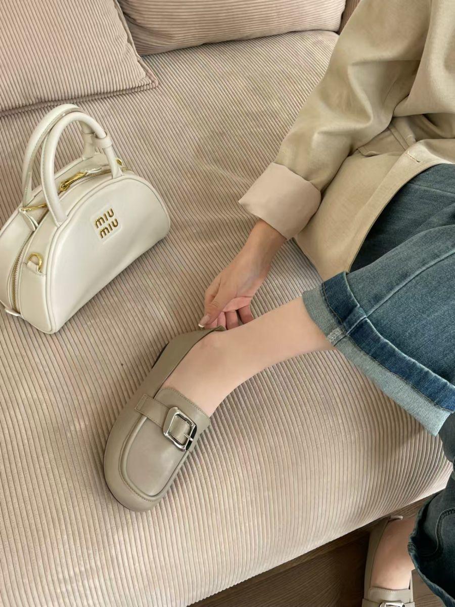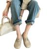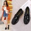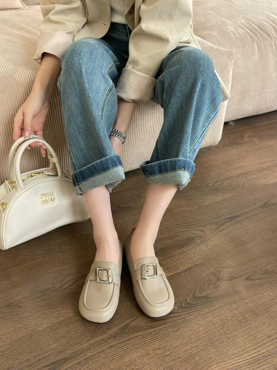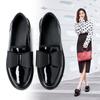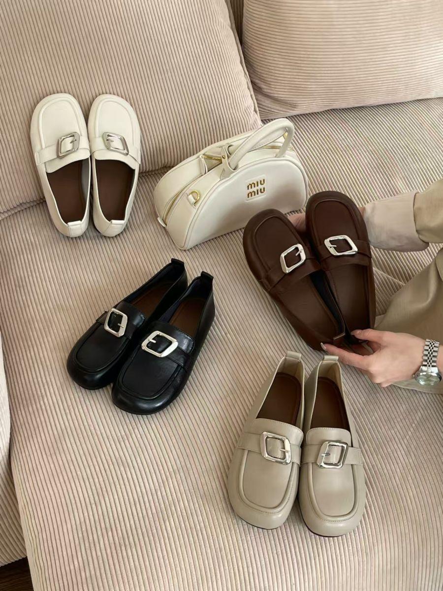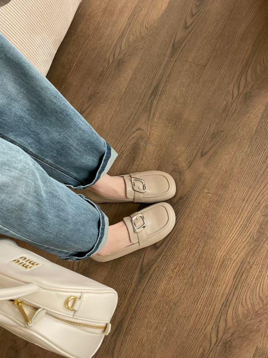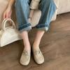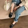 Zapatos de cuero pequeños con punta redonda de estilo británico para mujer, calzado plano de trabajo negro, estilo gorro, un pedal, primavera 2025