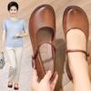 Sandalias de verano 2025 para madres, nuevas, de piel auténtica, para mujeres de mediana edad, cómodas, de suela plana, antideslizantes y suaves.
