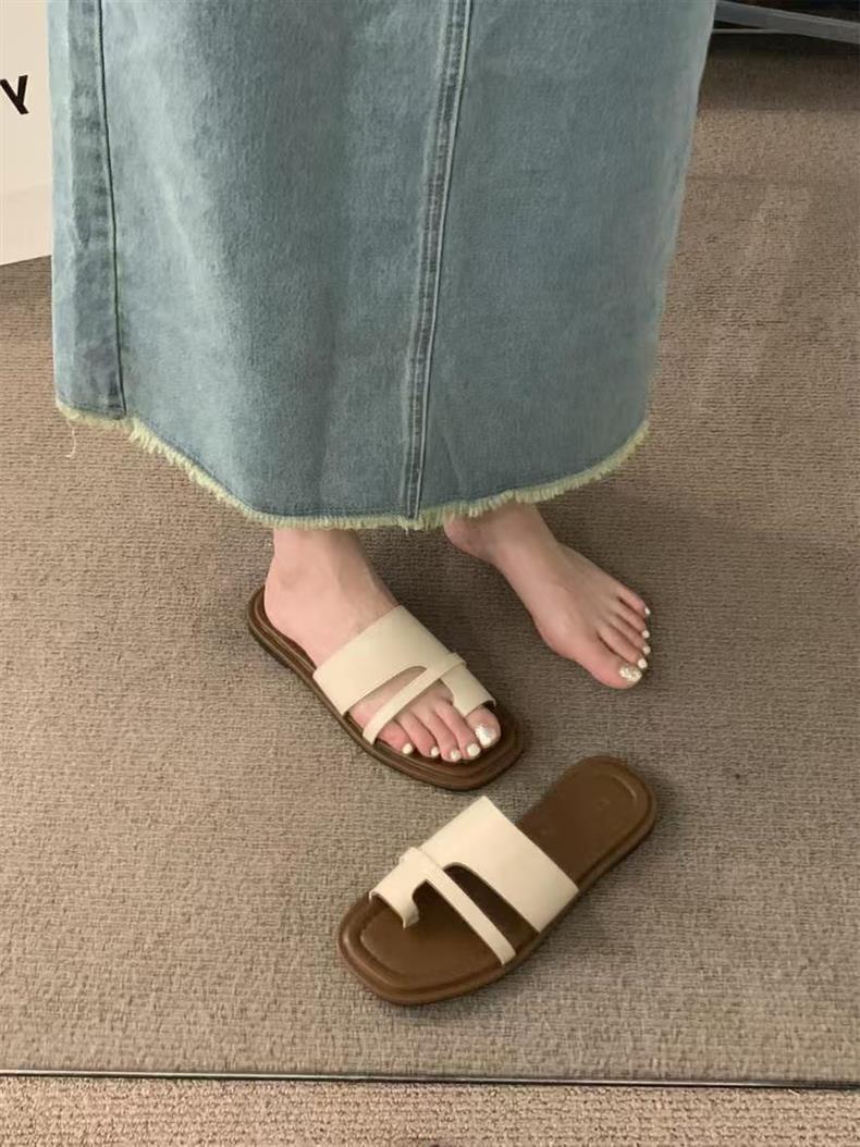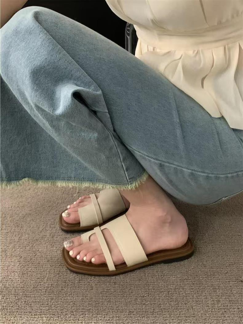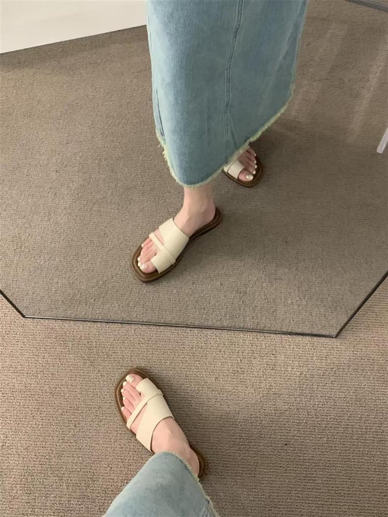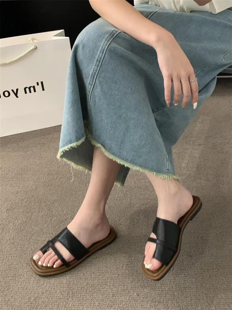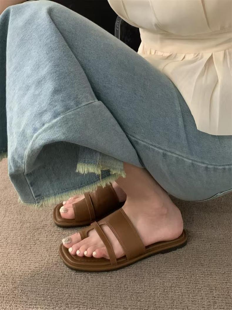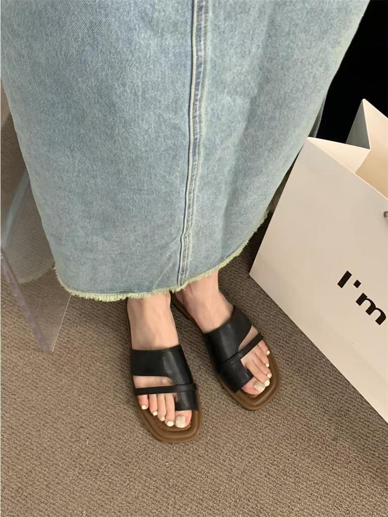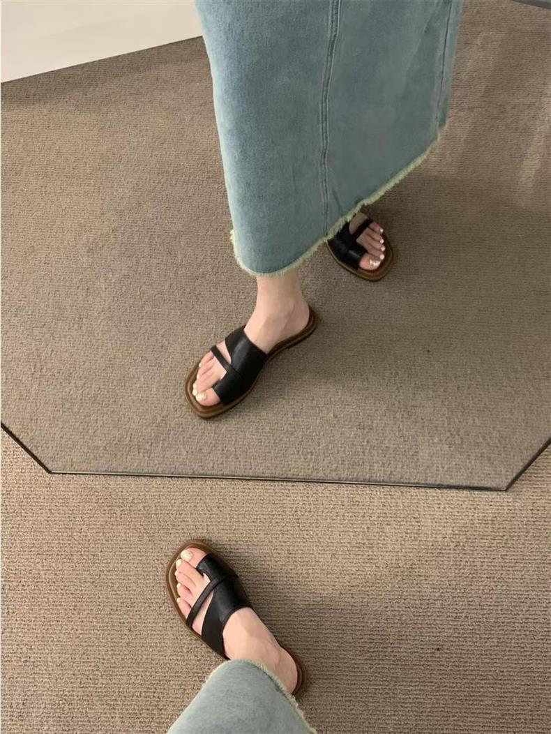 Sandalias romanas con punta retro para mujer, primavera/verano 2024, estilo coreano, sencillas, sin cordones
