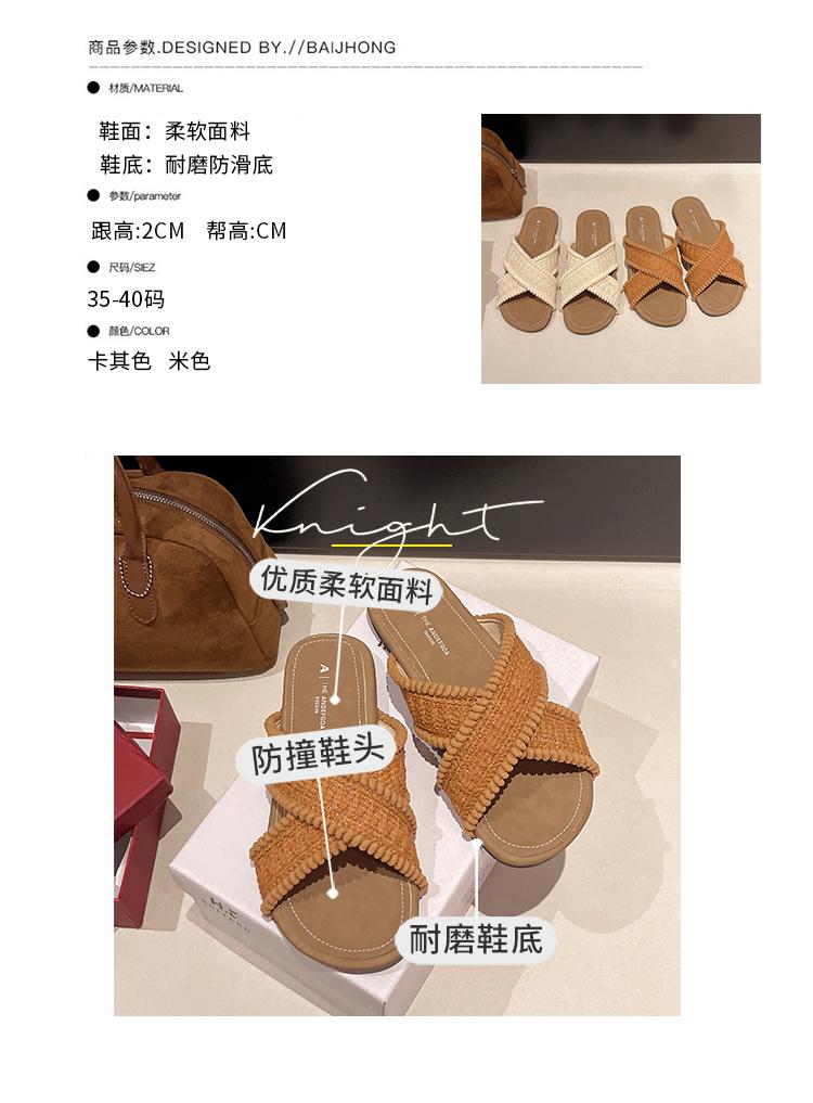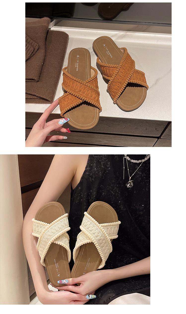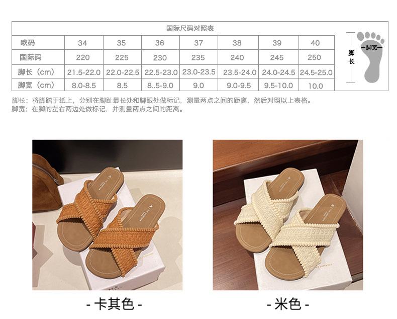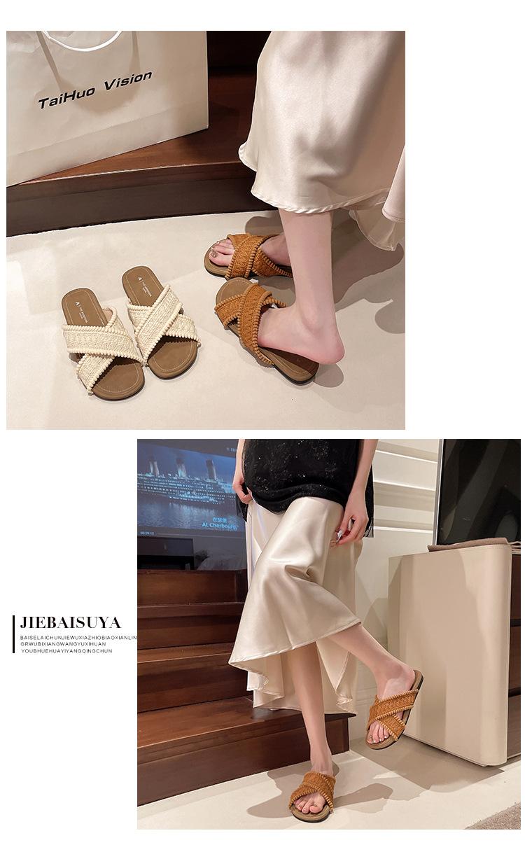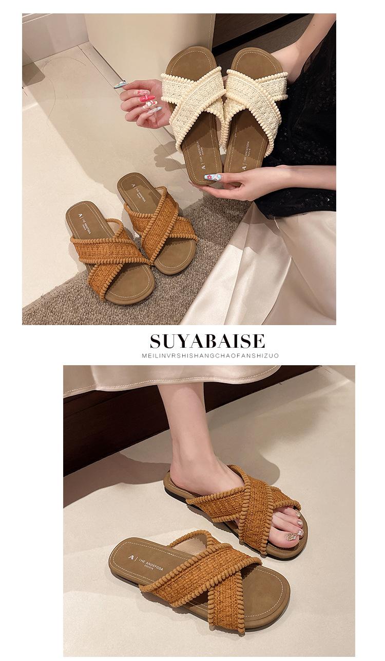 Slippers style--off-white, Drag style--brown, Sandals style--off-white, Sandals--brown