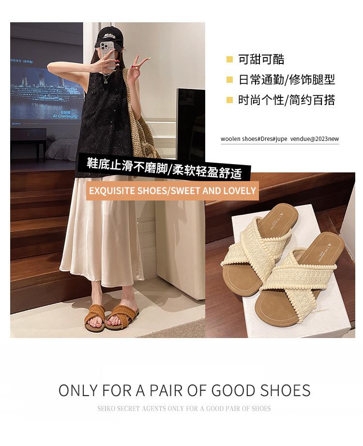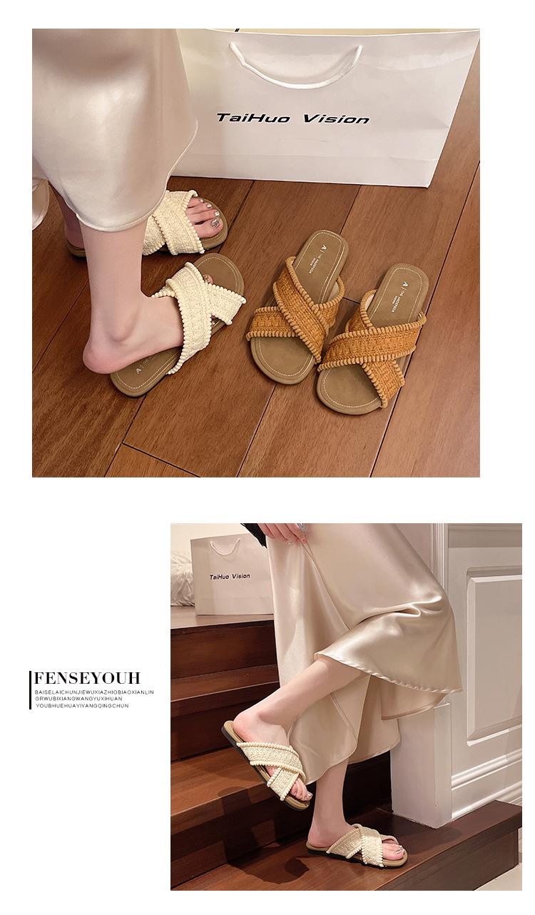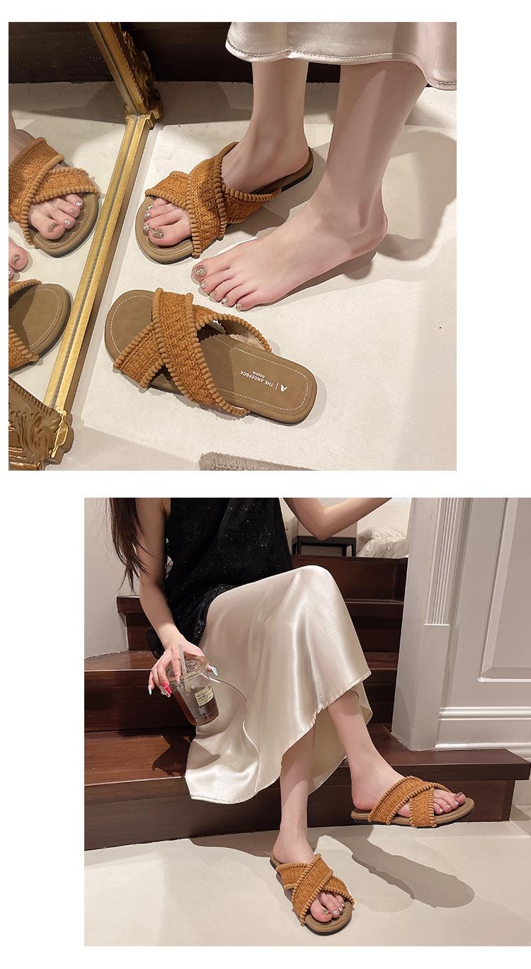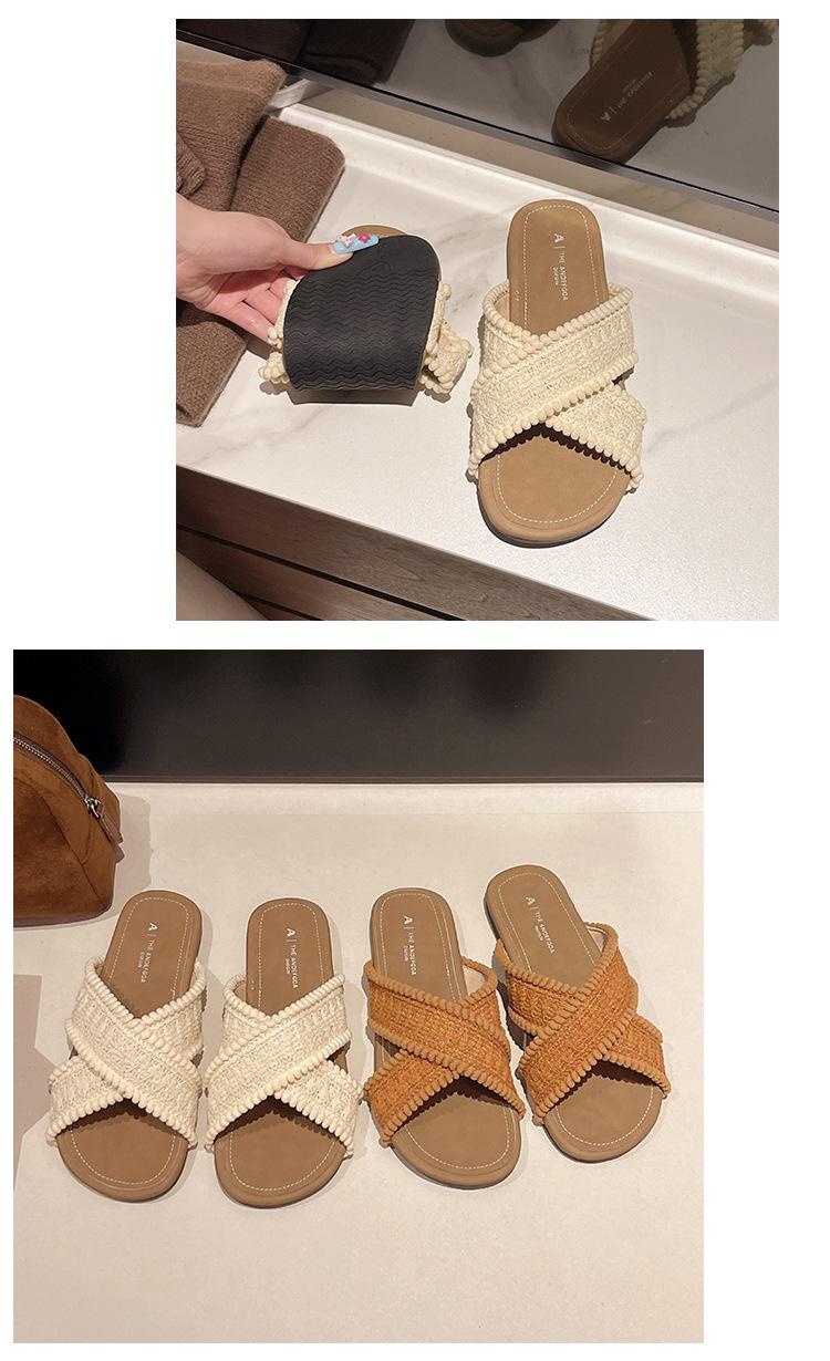 Slippers style--off-white, Drag style--brown, Sandals style--off-white, Sandals--brown