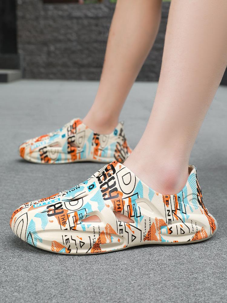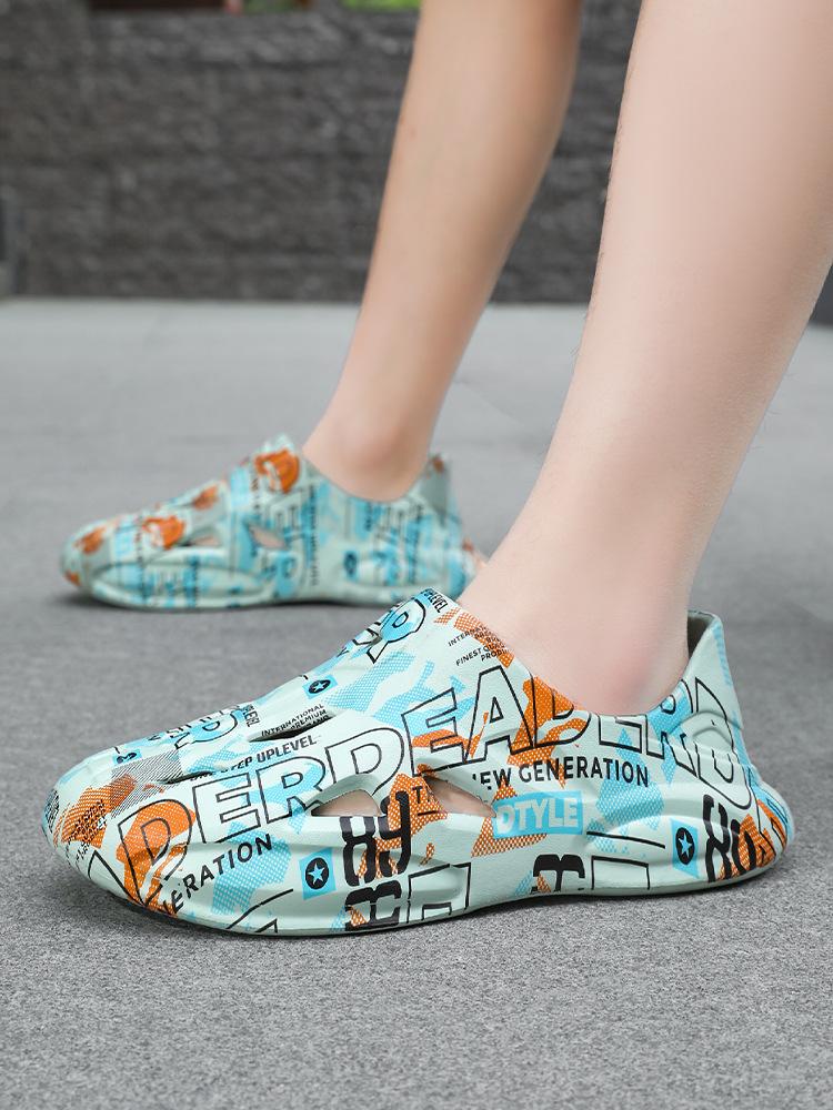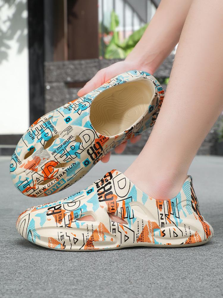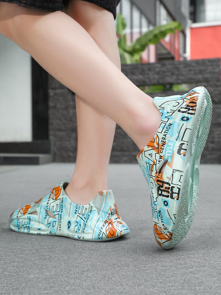 Sandalias Baotou con suela gruesa y suela exterior resistente al desgaste para hombre, informales, deportivas, con estampado a color, antideslizantes, para playa