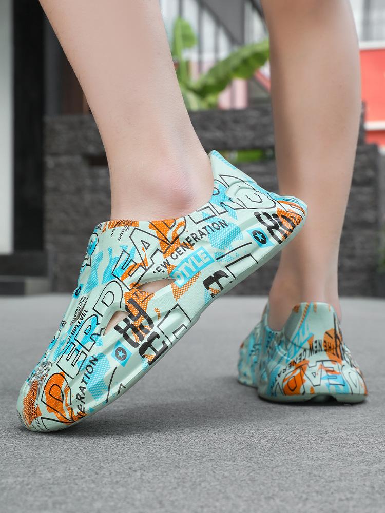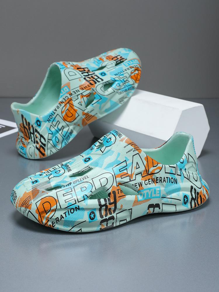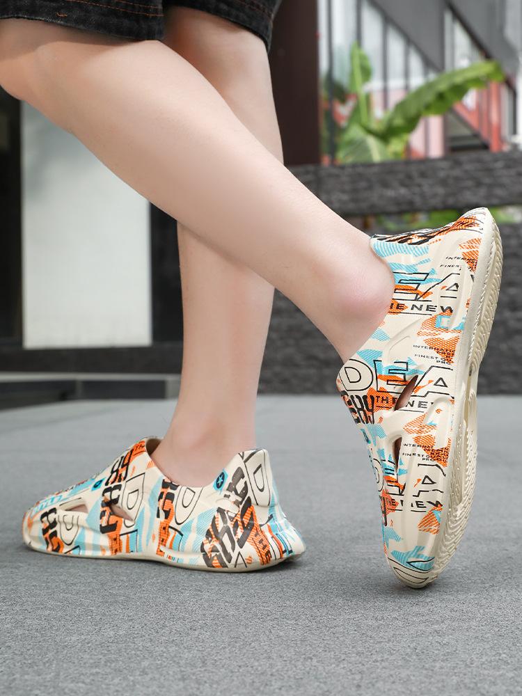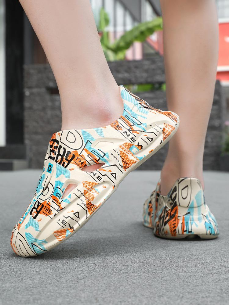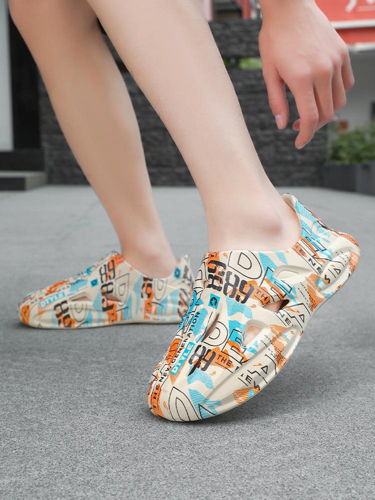 Sandalias Baotou con suela gruesa y suela exterior resistente al desgaste para hombre, informales, deportivas, con estampado a color, antideslizantes, para playa