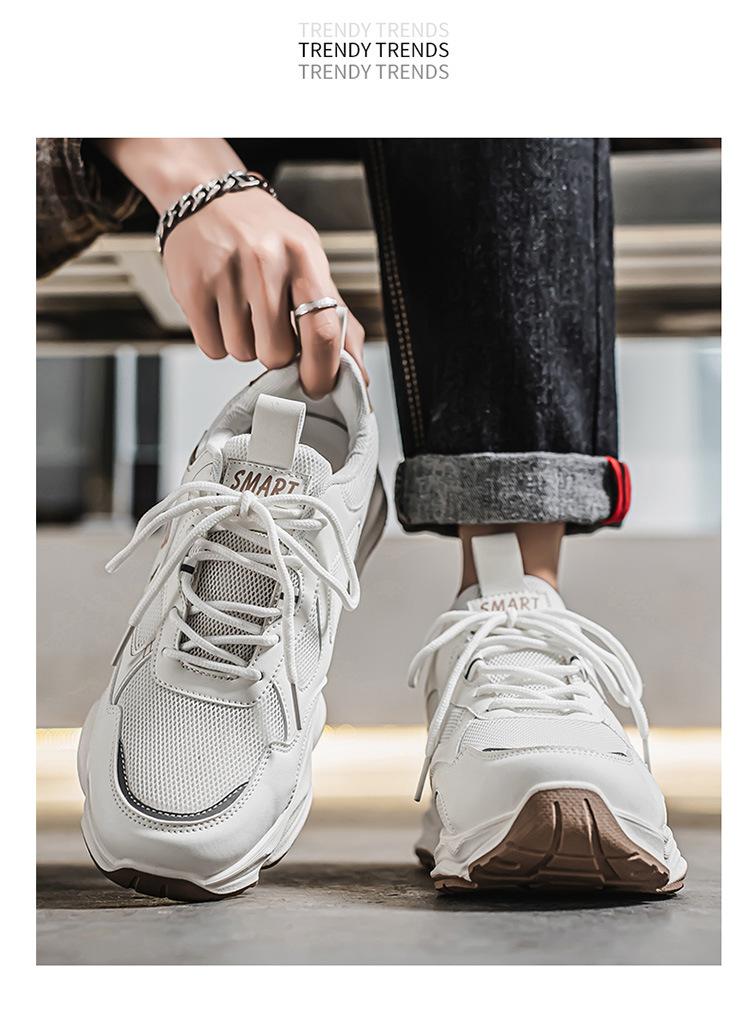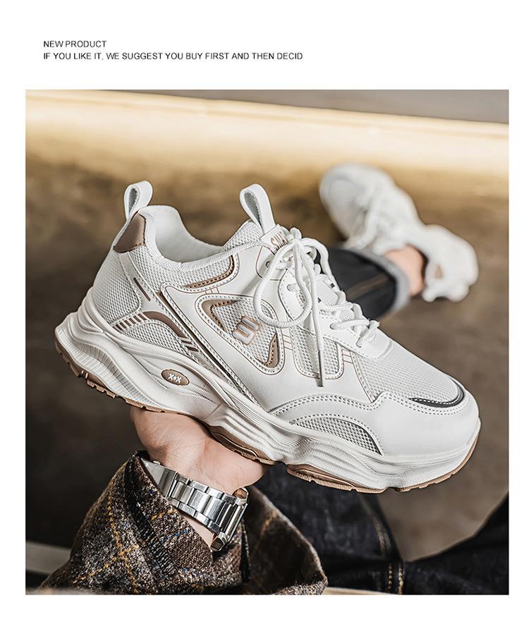 Zapatos de hombre de primavera, nuevos zapatos de malla transpirable, zapatillas de hombre, zapatos blancos de moda que combinan con todo, zapatos de suela gruesa Torre para hombre