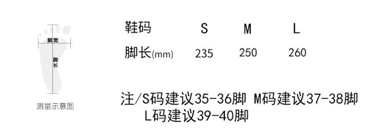 S size recommended 35-36 feet, M size recommends 37-38 feet, L size recommends 39-40 feet