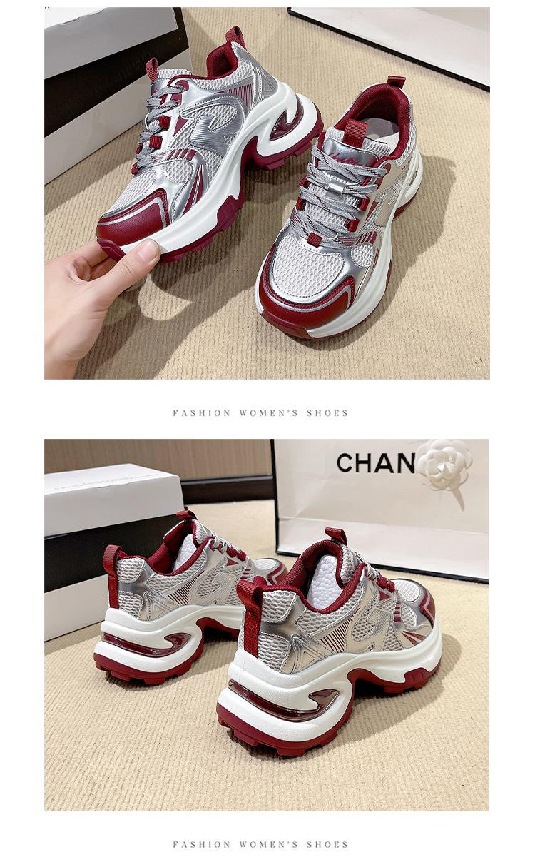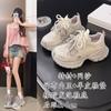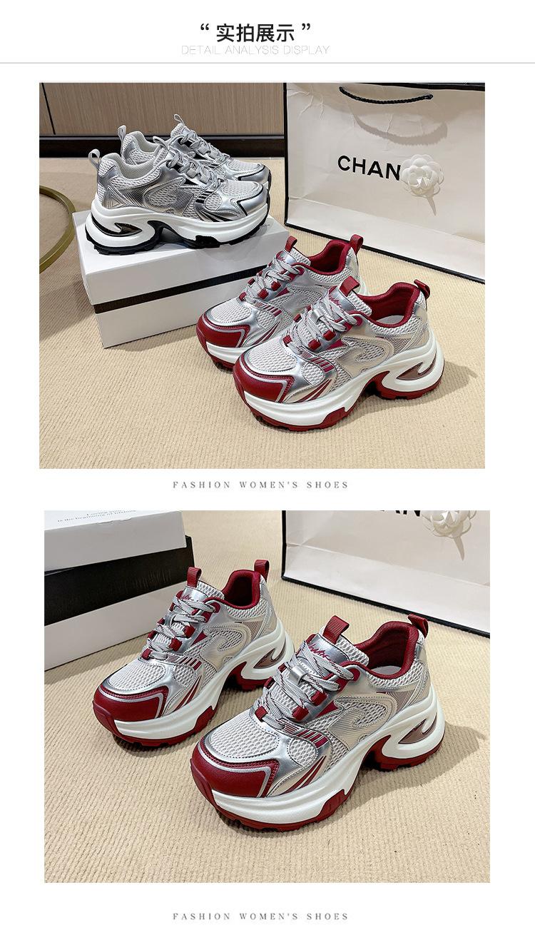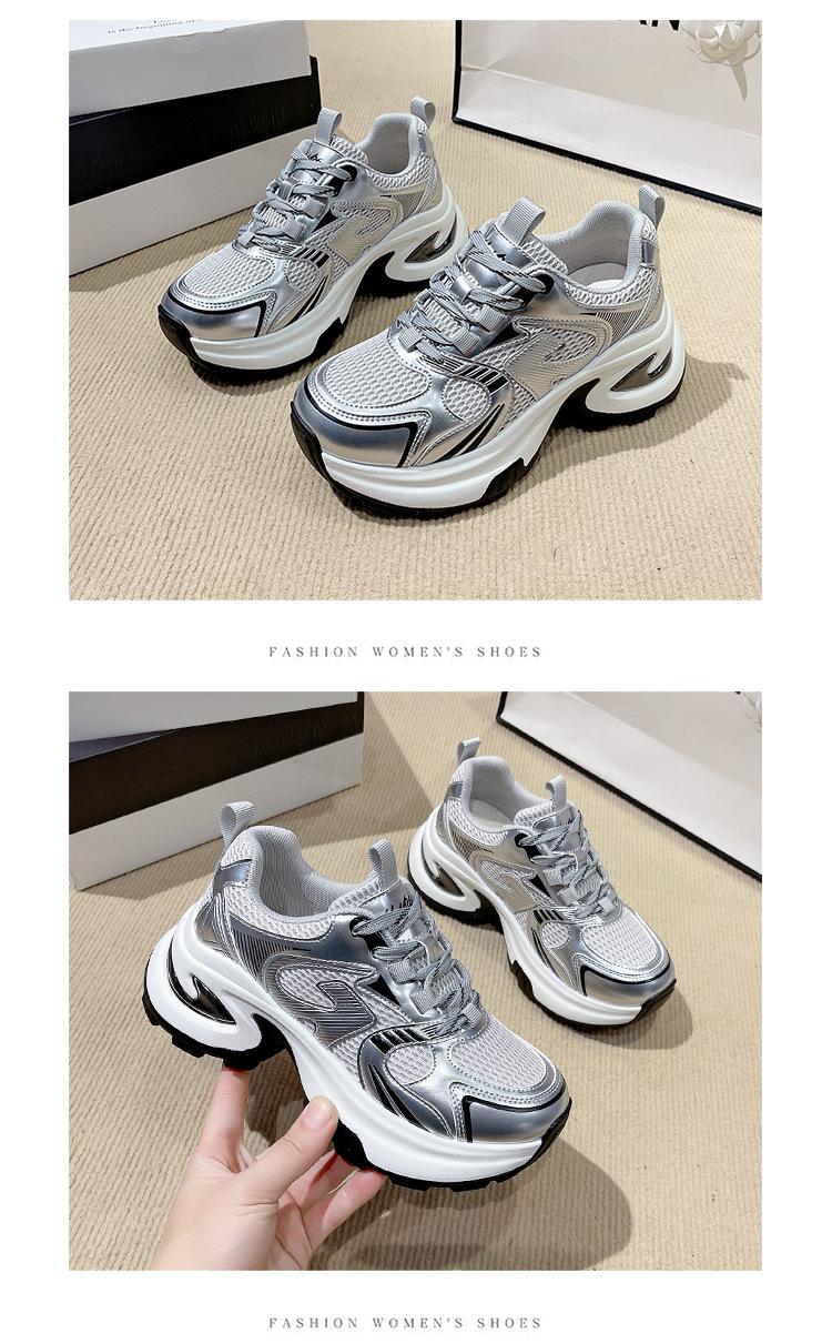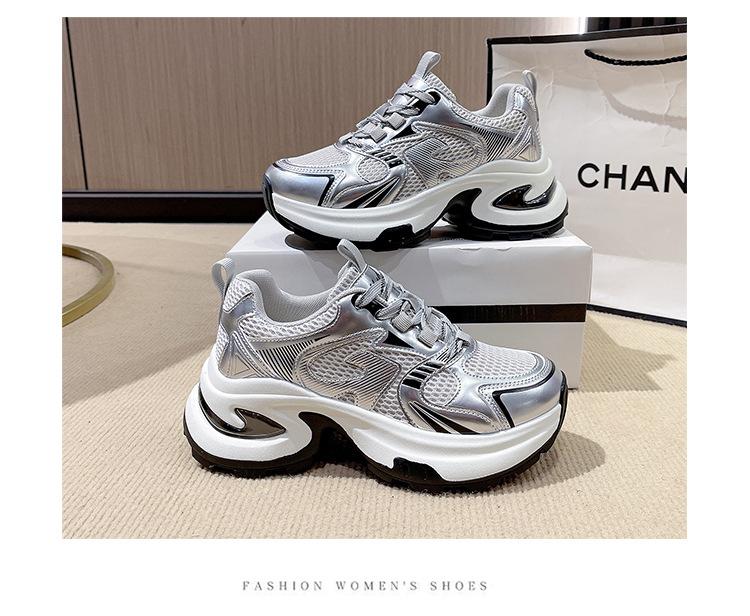Zapatos de suela gruesa Torre de primavera 2025 para mujer, nuevos zapatos de malla transpirables de moda plateados, zapatillas casuales aumentadas, zapatos de moda