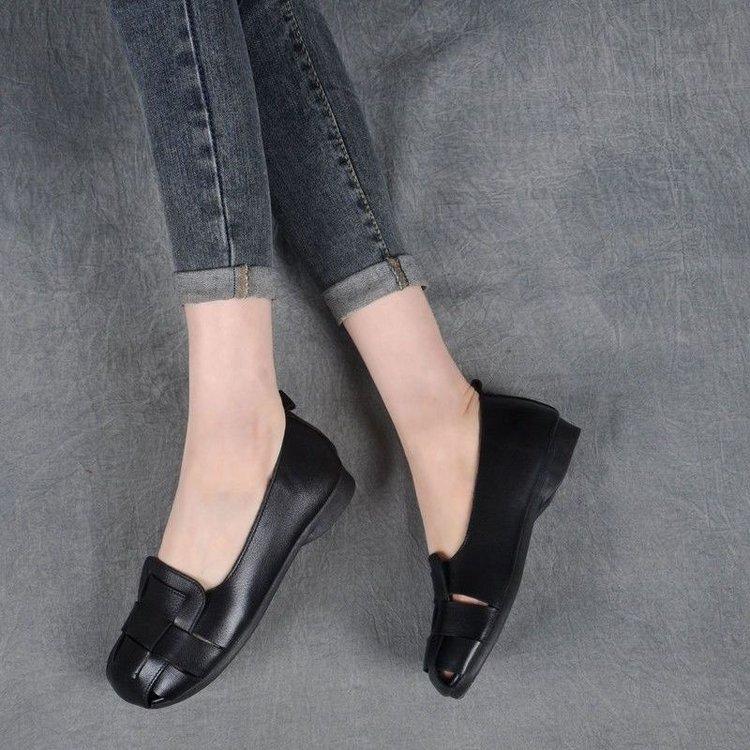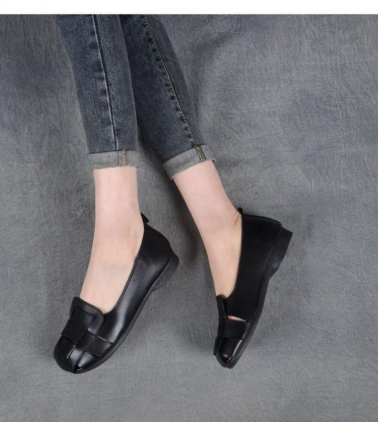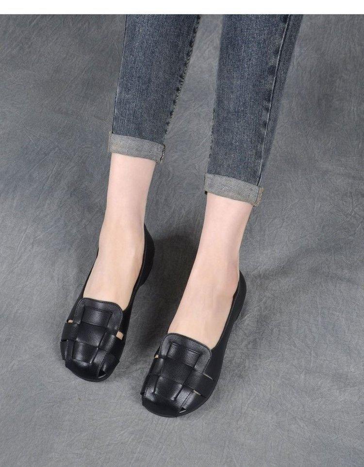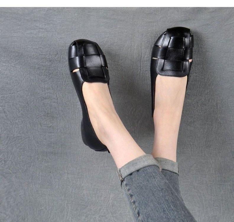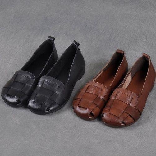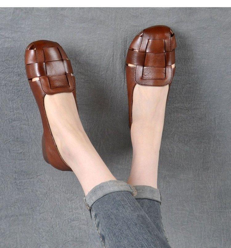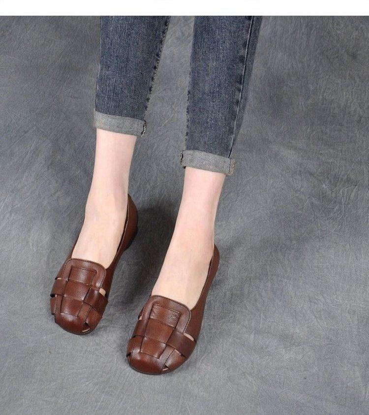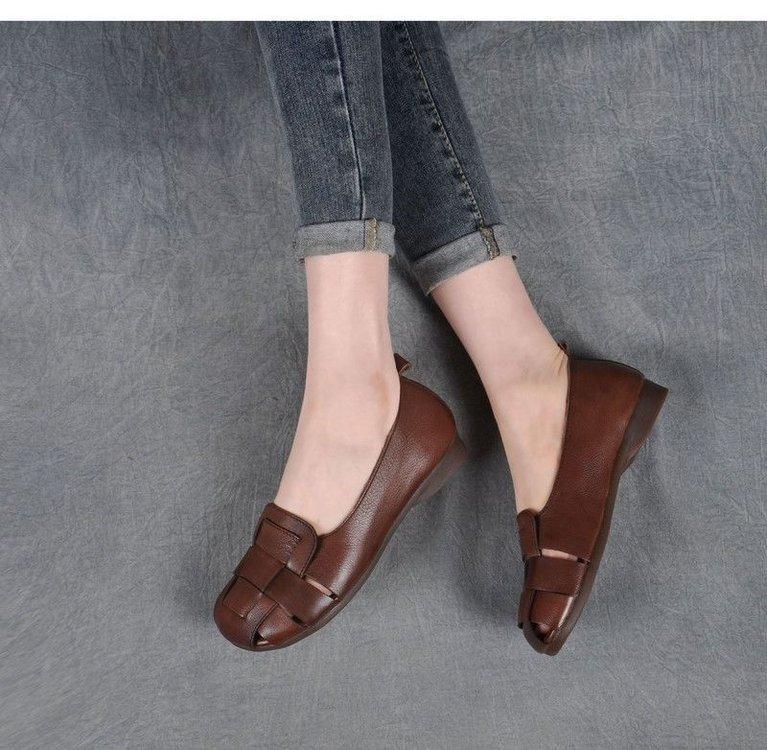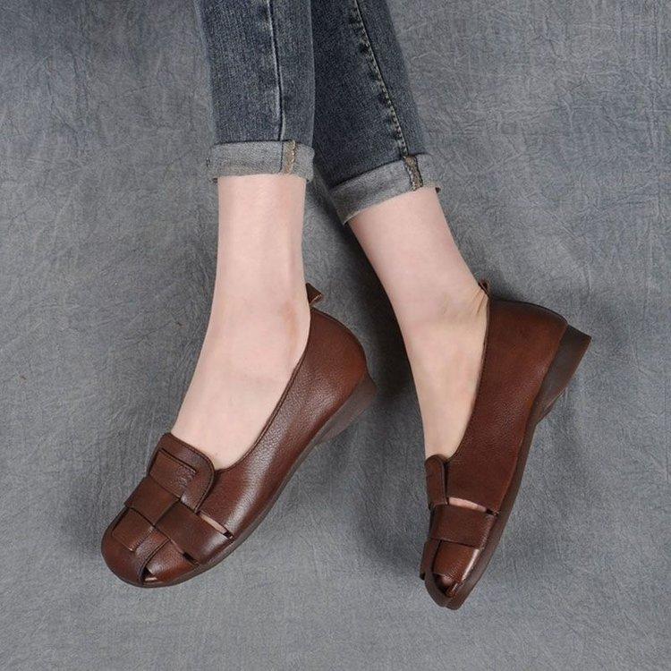 Zapatos de Cuero con Agujeros de Suela Blanda para Mujer Verano 2025 Nuevo Cómodo Transpirable Retro Zapatos de Una Capa Sandalias para Madre de Mediana Edad y Anciana