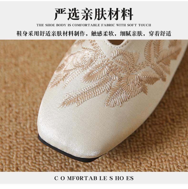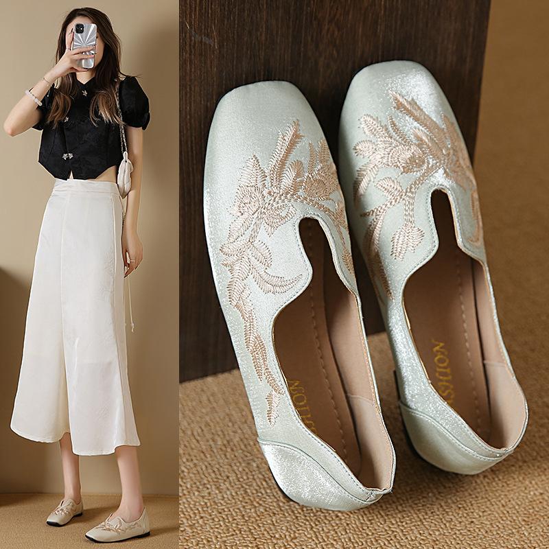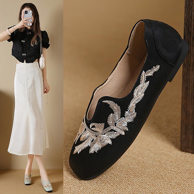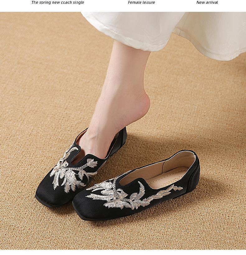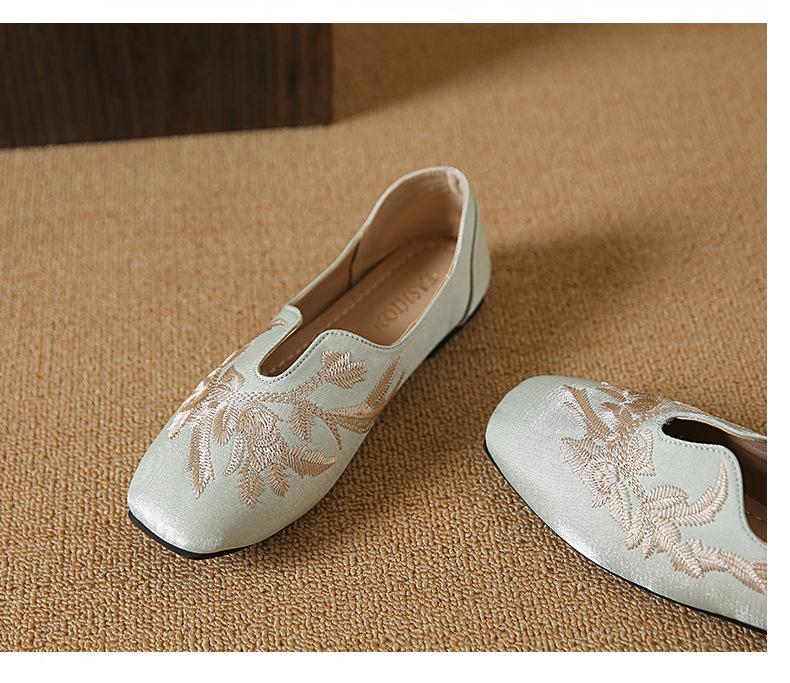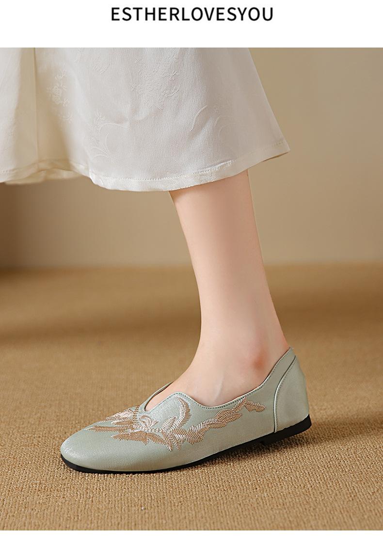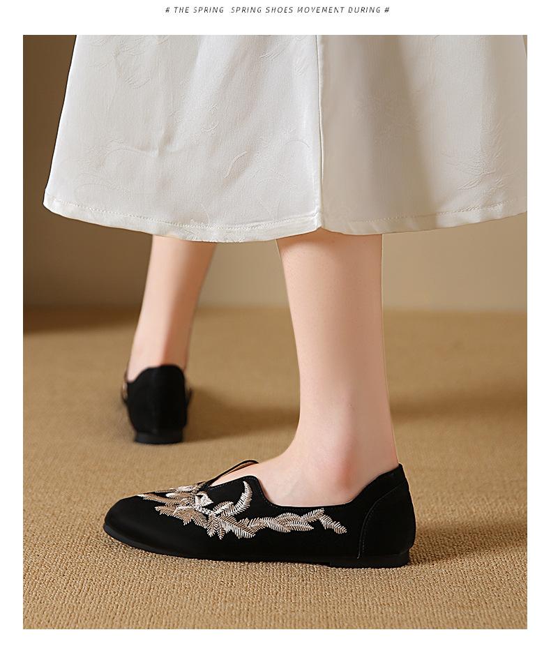 Zapatos planos bordados de estilo chino para mujer, primavera y verano 2024, nuevos zapatos chinos bordados de estilo retro con cabeza redonda.