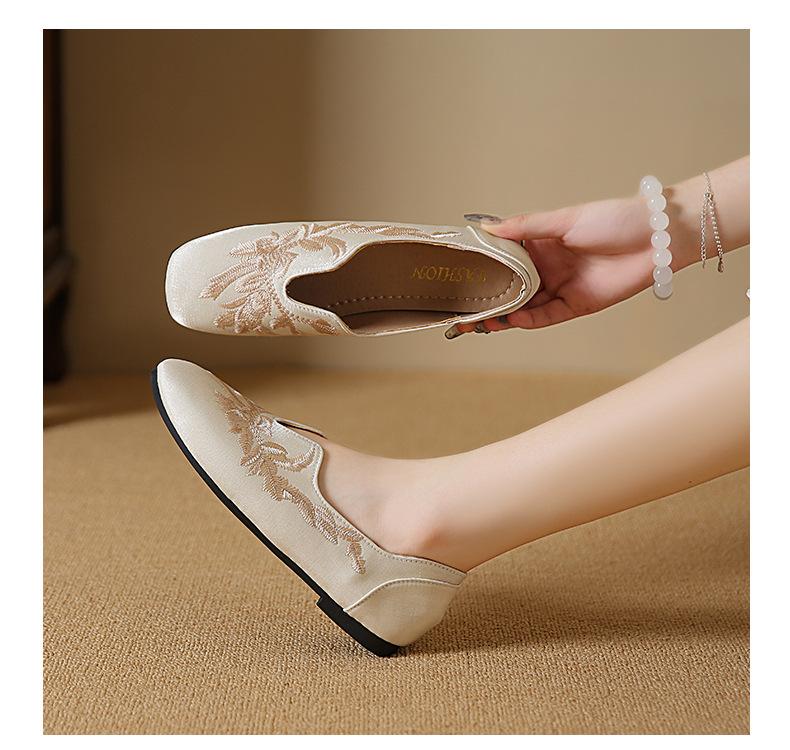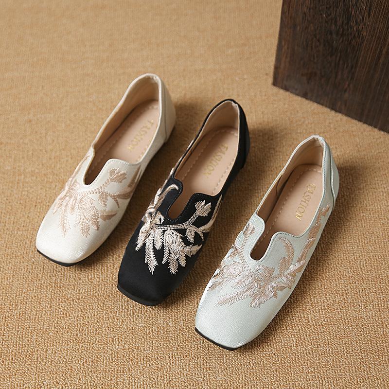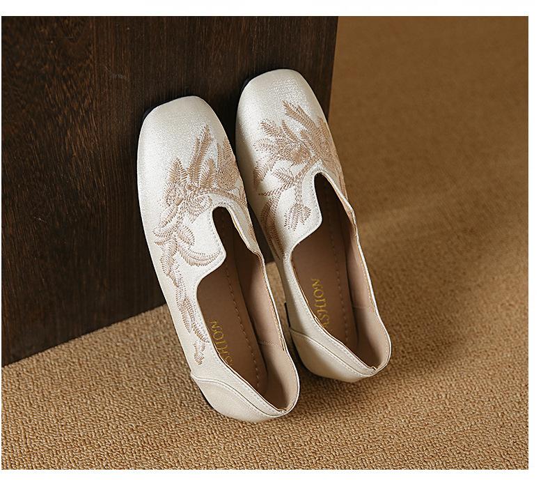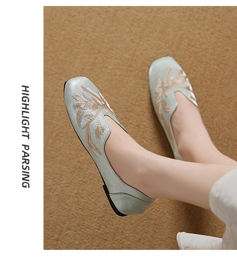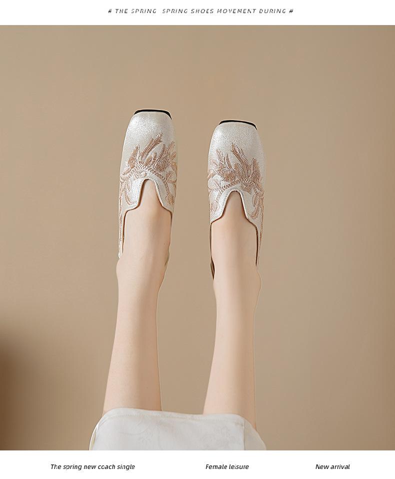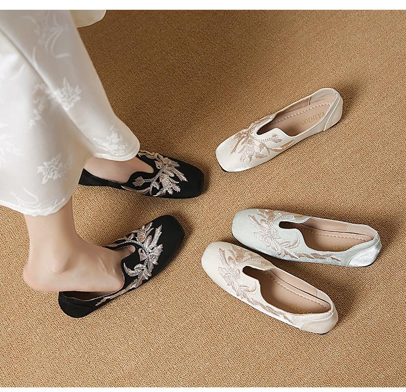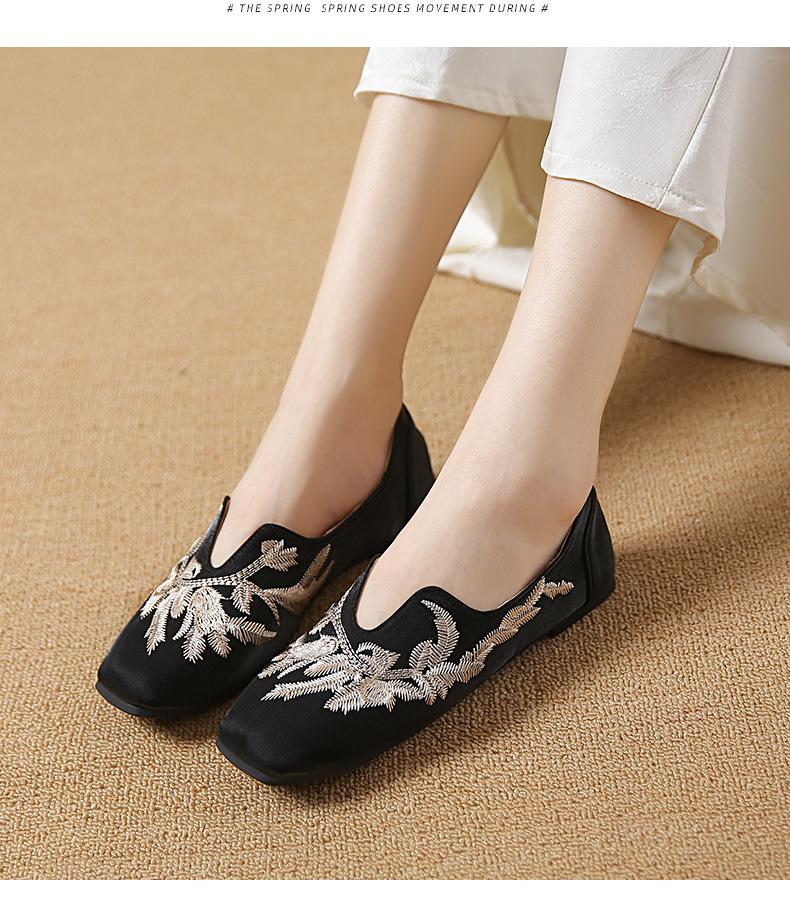 Zapatos planos bordados de estilo chino para mujer, primavera y verano 2024, nuevos zapatos chinos bordados de estilo retro con cabeza redonda.