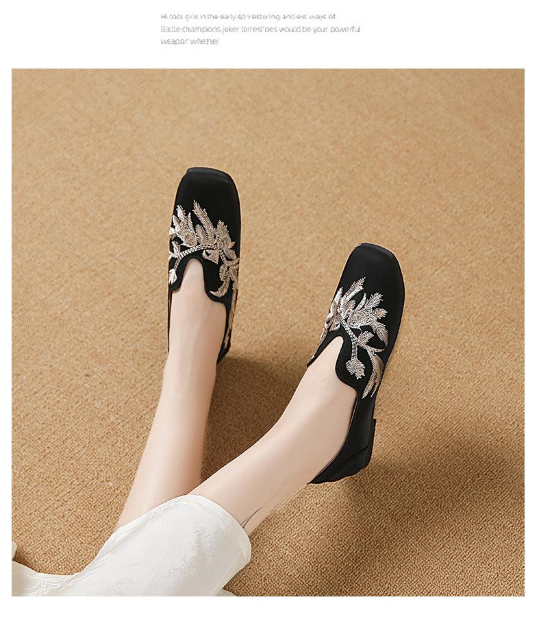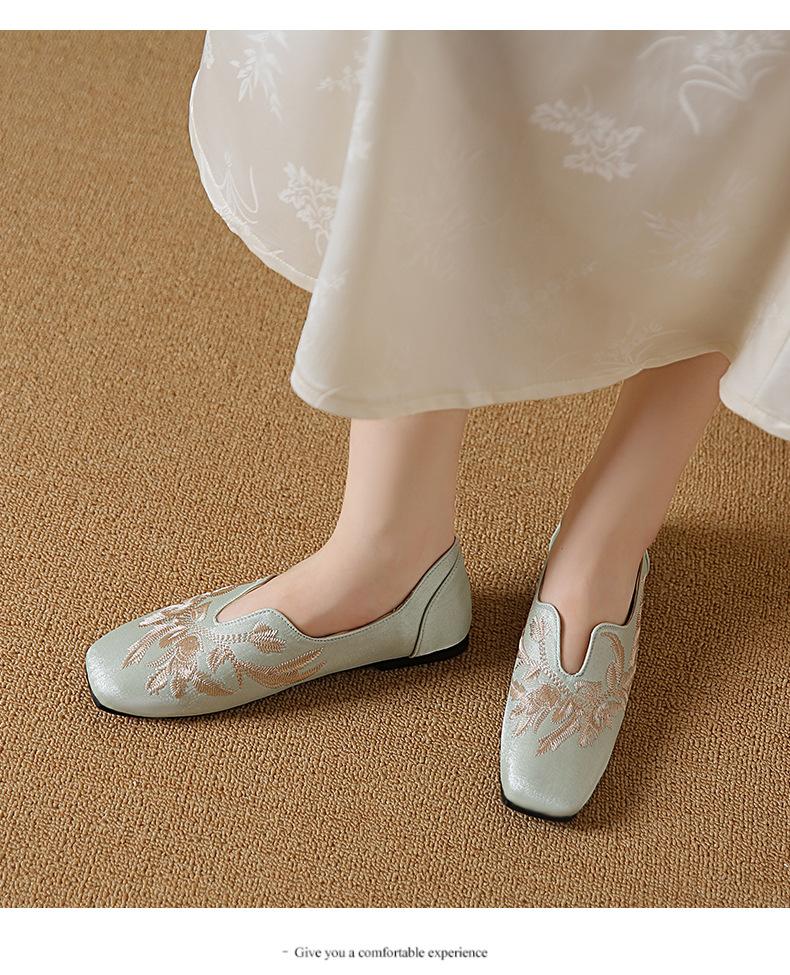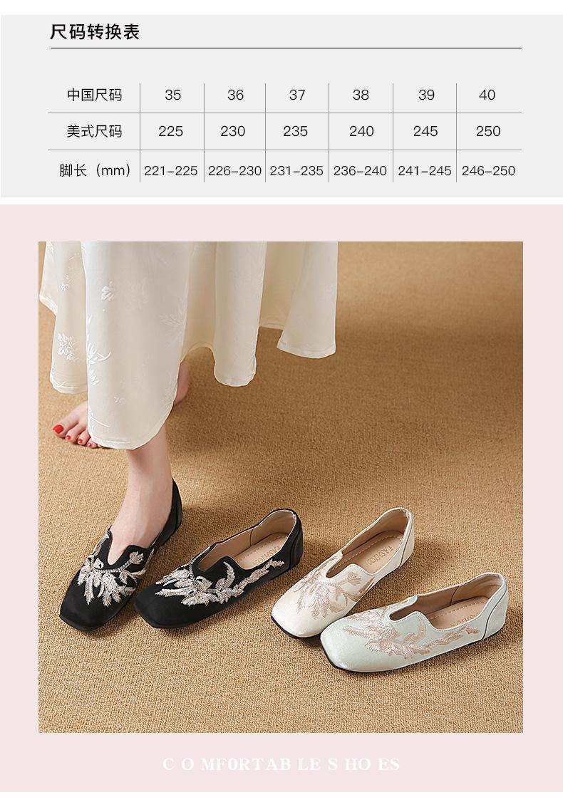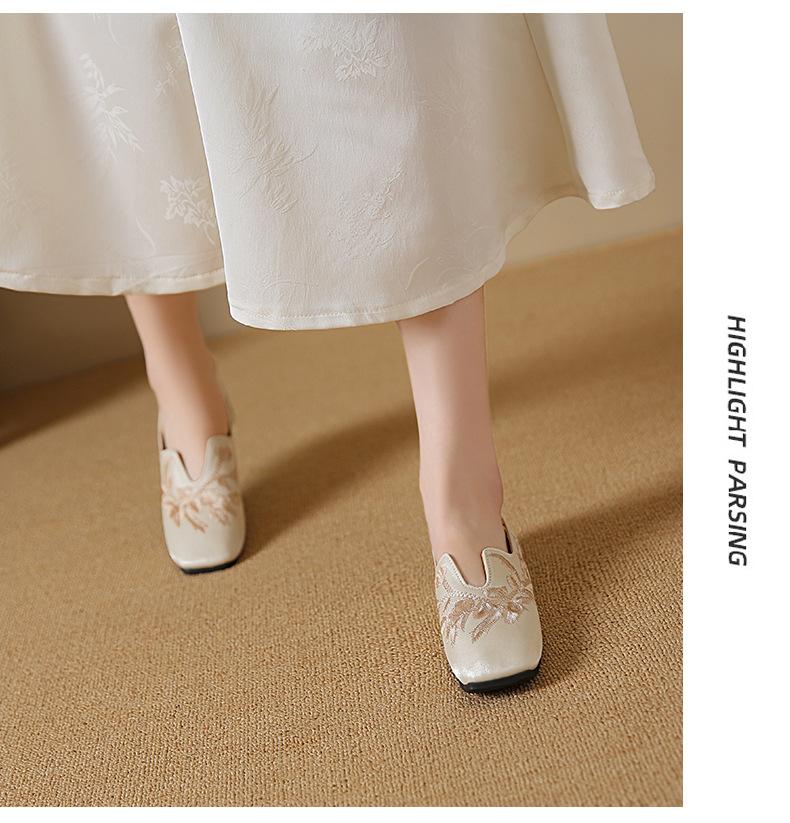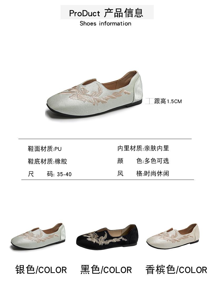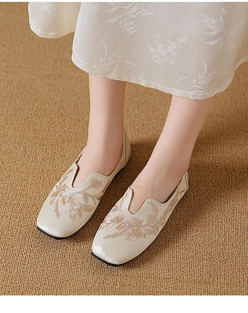 Zapatos planos bordados de estilo chino para mujer, primavera y verano 2024, nuevos zapatos chinos bordados de estilo retro con cabeza redonda.