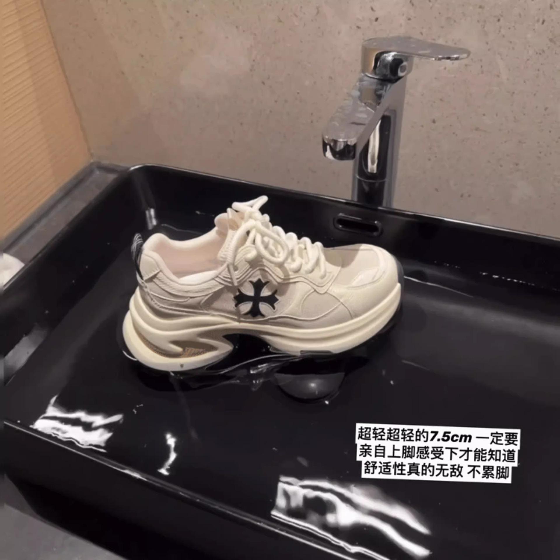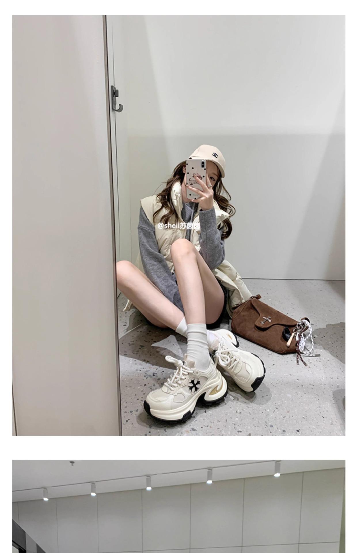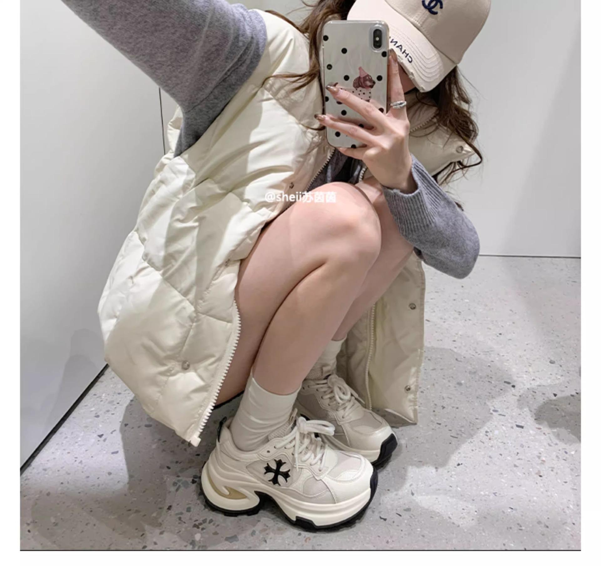 Zapatos de Papá de Suela Gruesa para Mujer 2025 Nuevo Primavera y Verano Malla Transpirable Pequeños Deportivos Casuales Zapatos de Mujer Zapatos Blancos