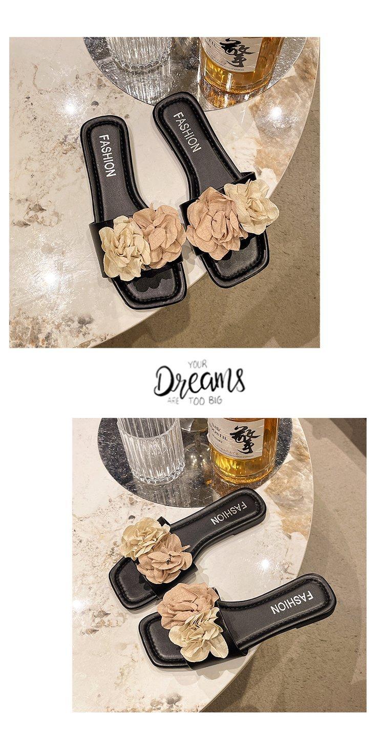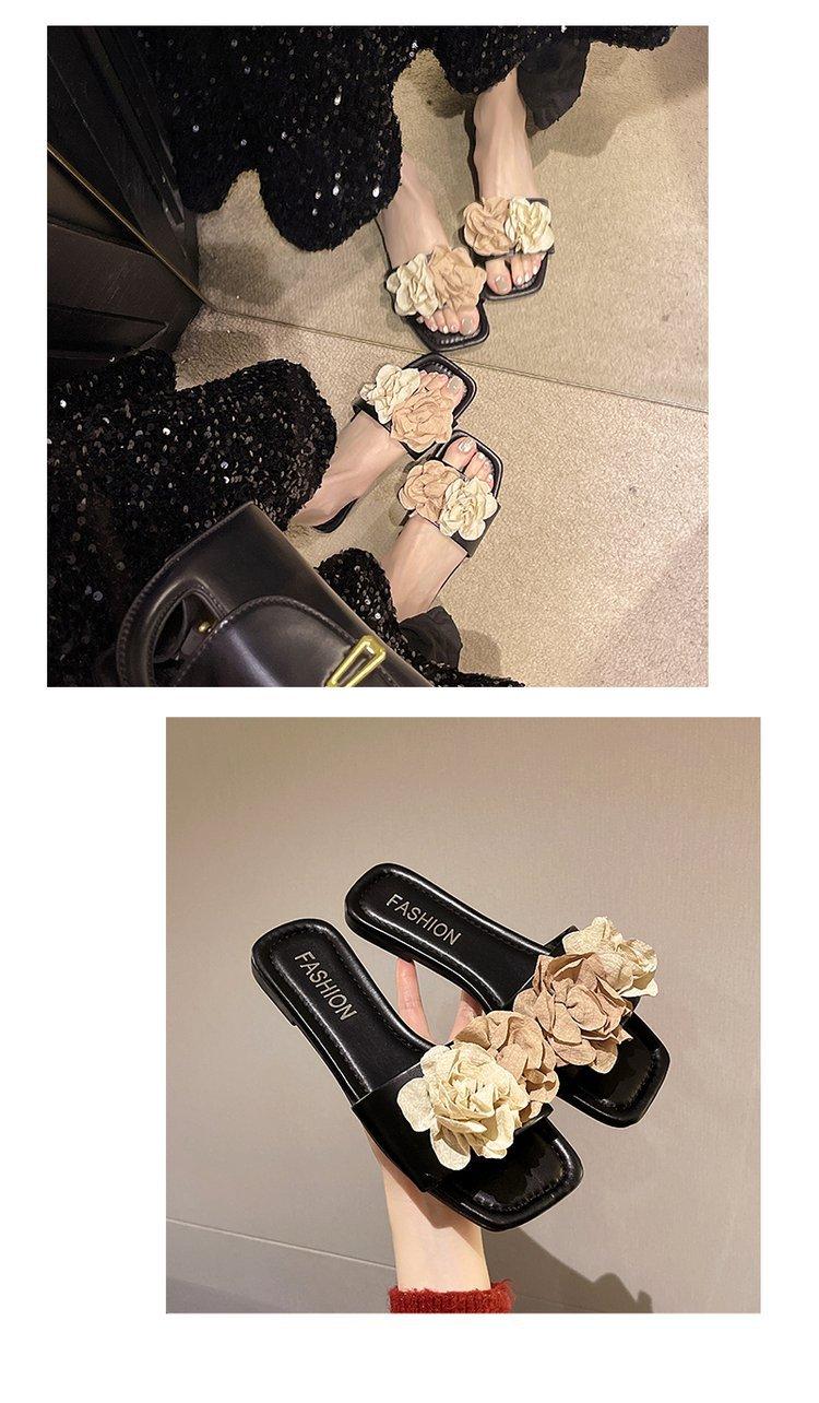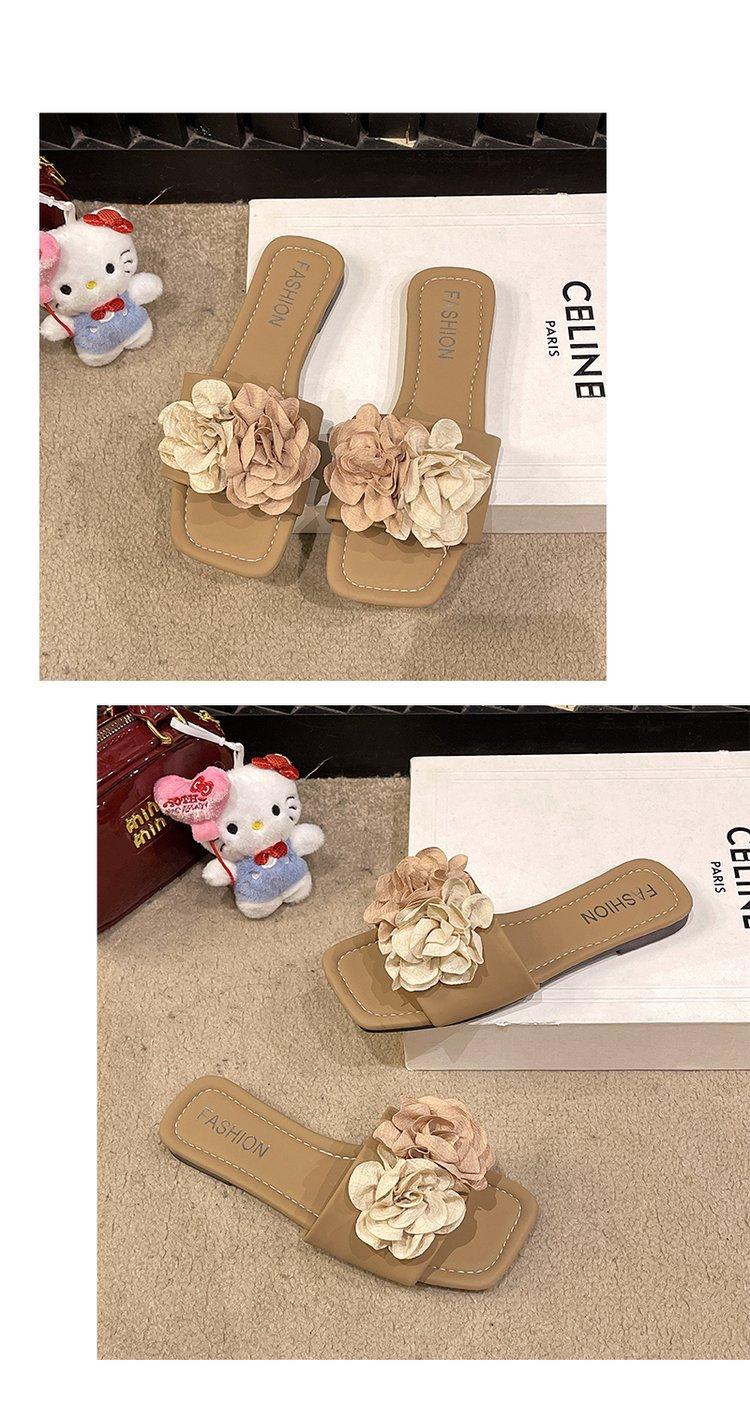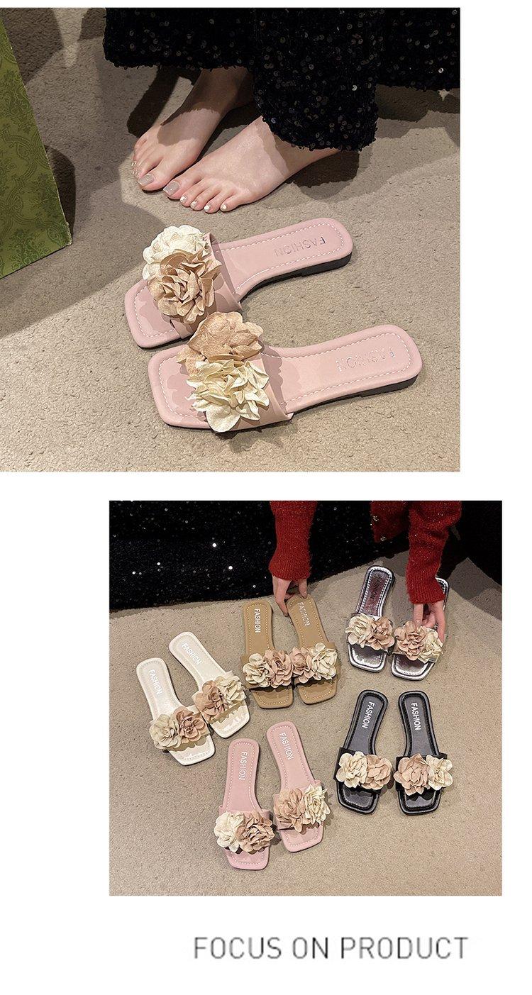 Compra Pantuflas de flores estilo hada para mujer, verano 2025, nuevo estilo, para exteriores, planas, para playa, vacaciones, chanclas con falda al por mayor en Joom.pro