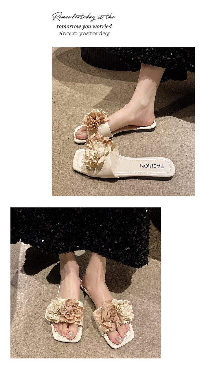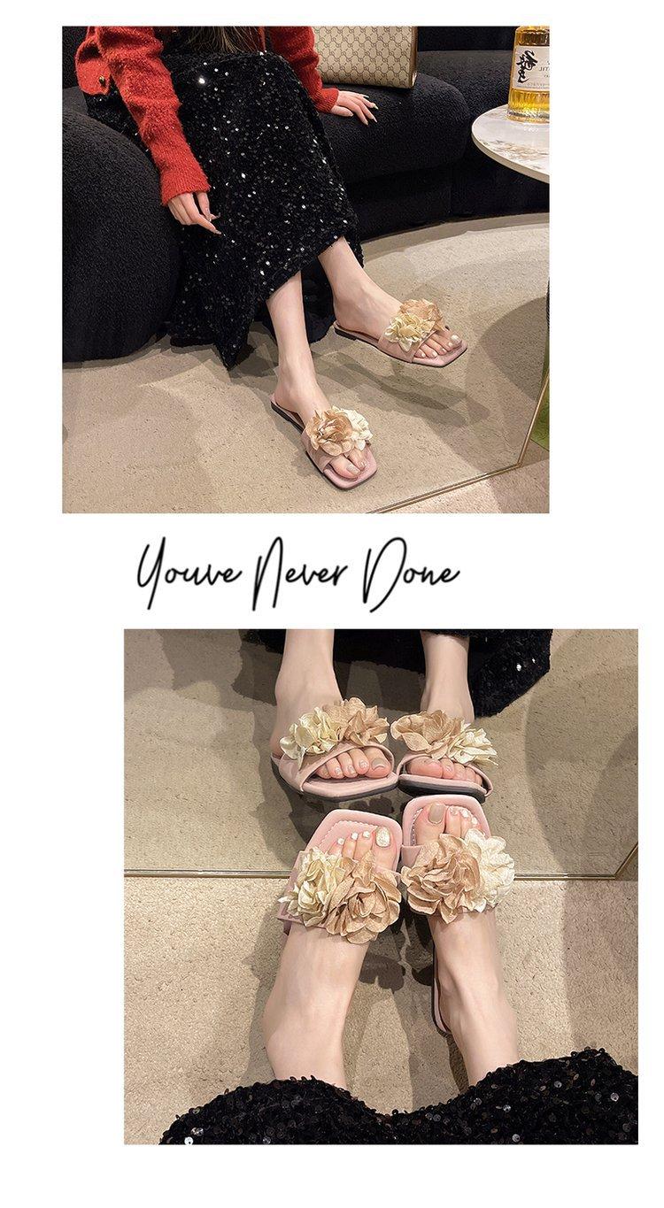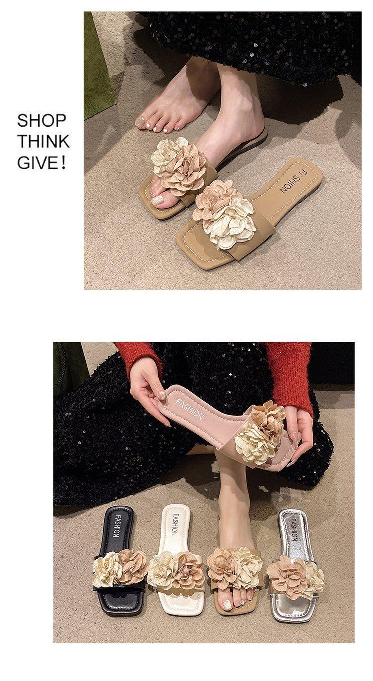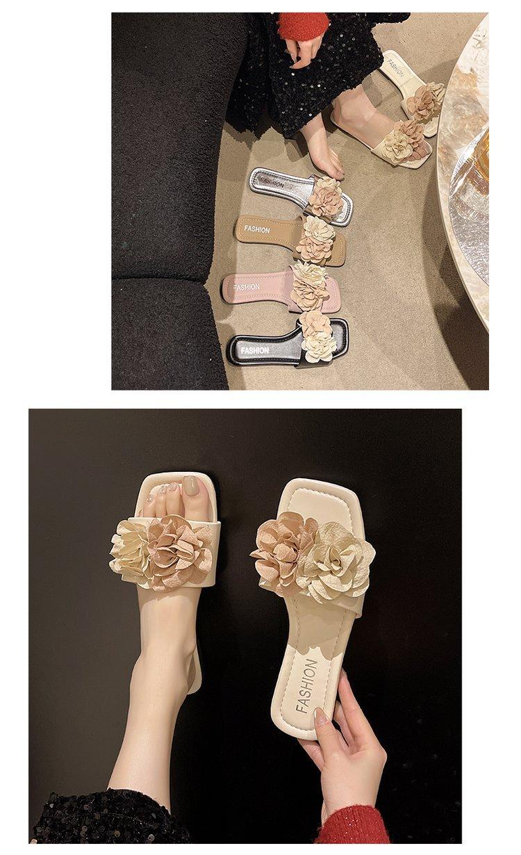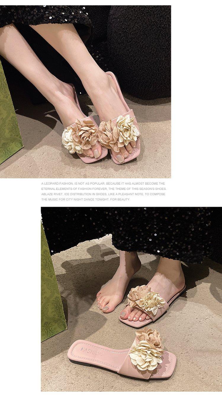 Compra Pantuflas de flores estilo hada para mujer, verano 2025, nuevo estilo, para exteriores, planas, para playa, vacaciones, chanclas con falda al por mayor en Joom.pro
