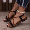 Sandalias de Mujer 2025 Nuevas Verano Zapatos Planos para Exterior Playa Sandalias Romanas de Estampado de Leopardo de Mujer Verano