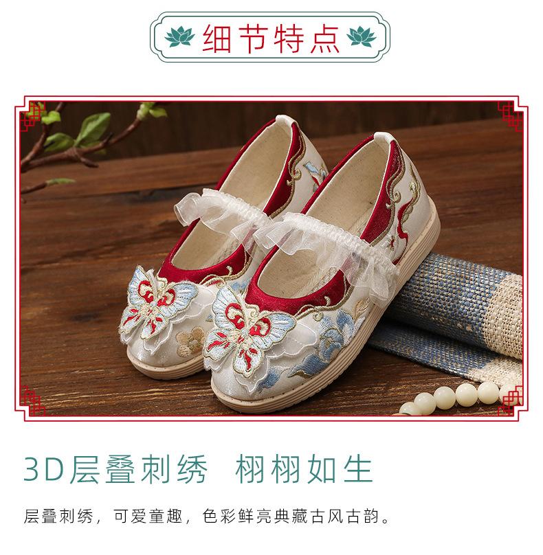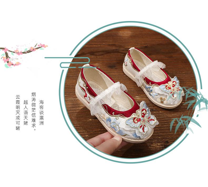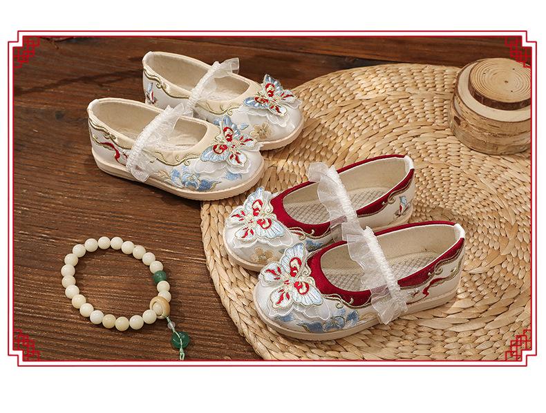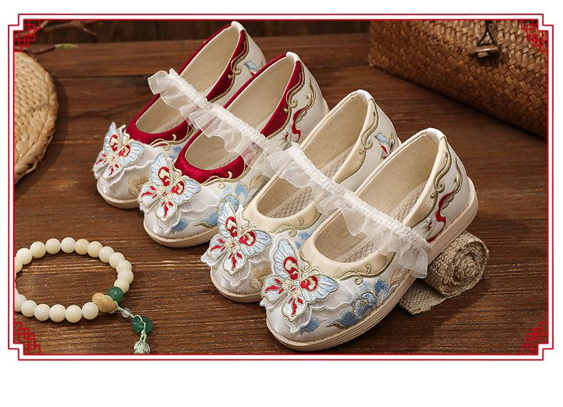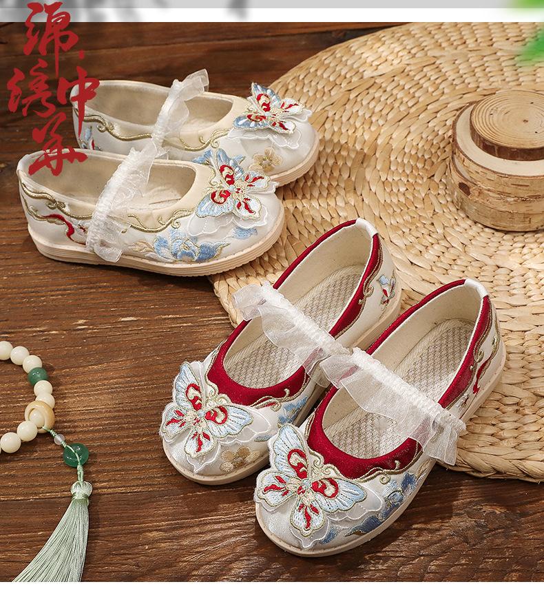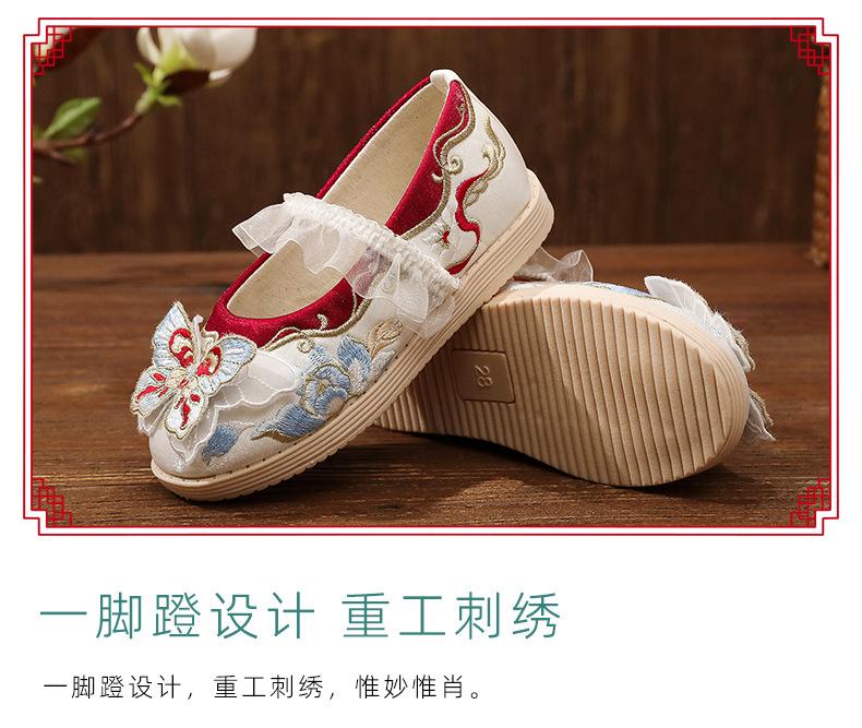 Zapatos bordados Hanfu, zapatos para niña, estilo étnico, ropa antigua, zapatos bordados, zapatos de cuero Hanfu para niños, zapatos de estilo chino