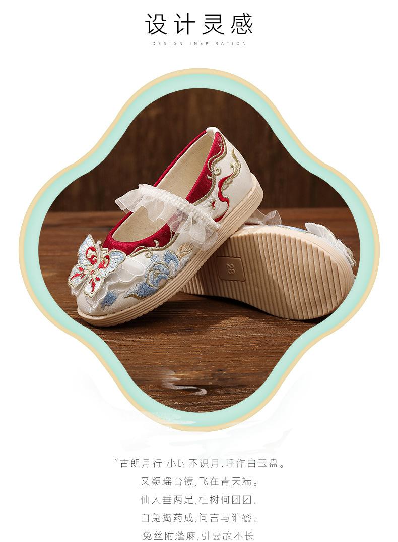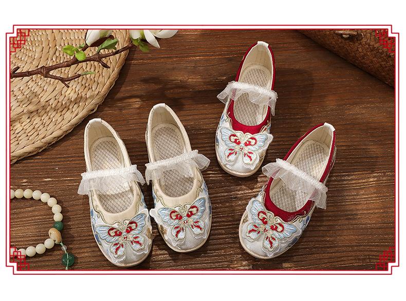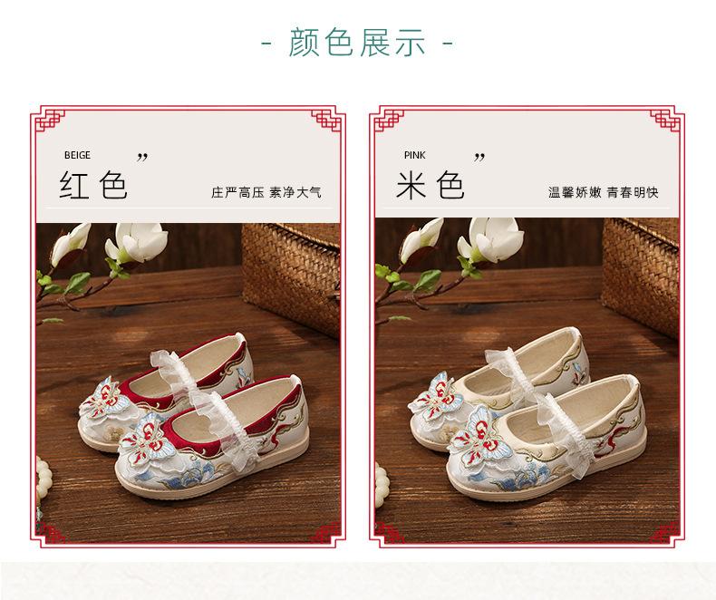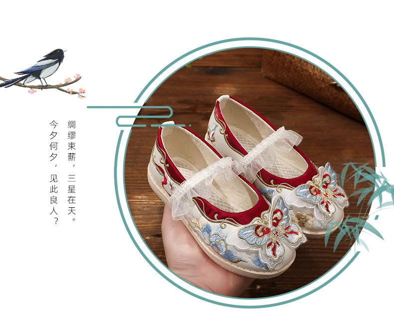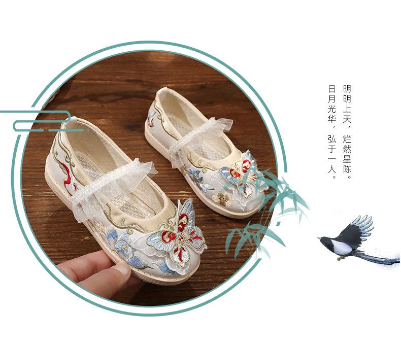 Zapatos bordados Hanfu, zapatos para niña, estilo étnico, ropa antigua, zapatos bordados, zapatos de cuero Hanfu para niños, zapatos de estilo chino