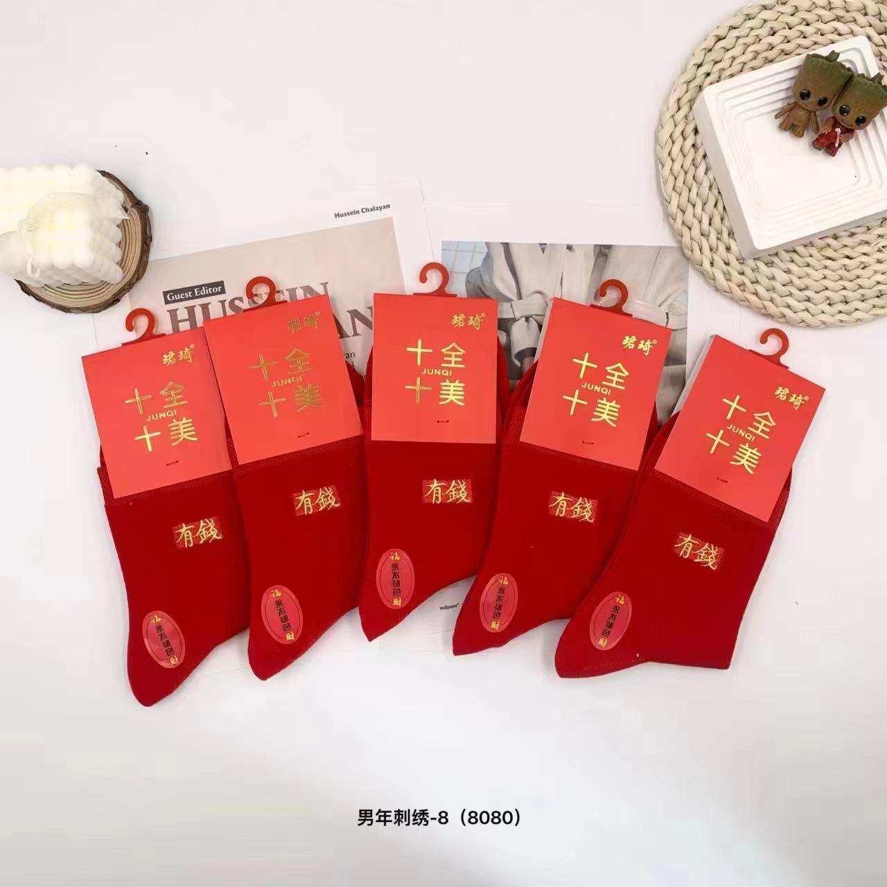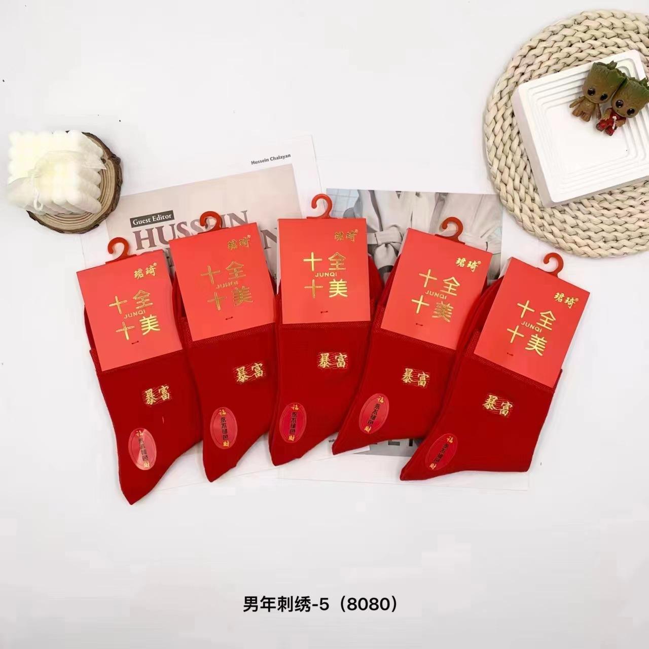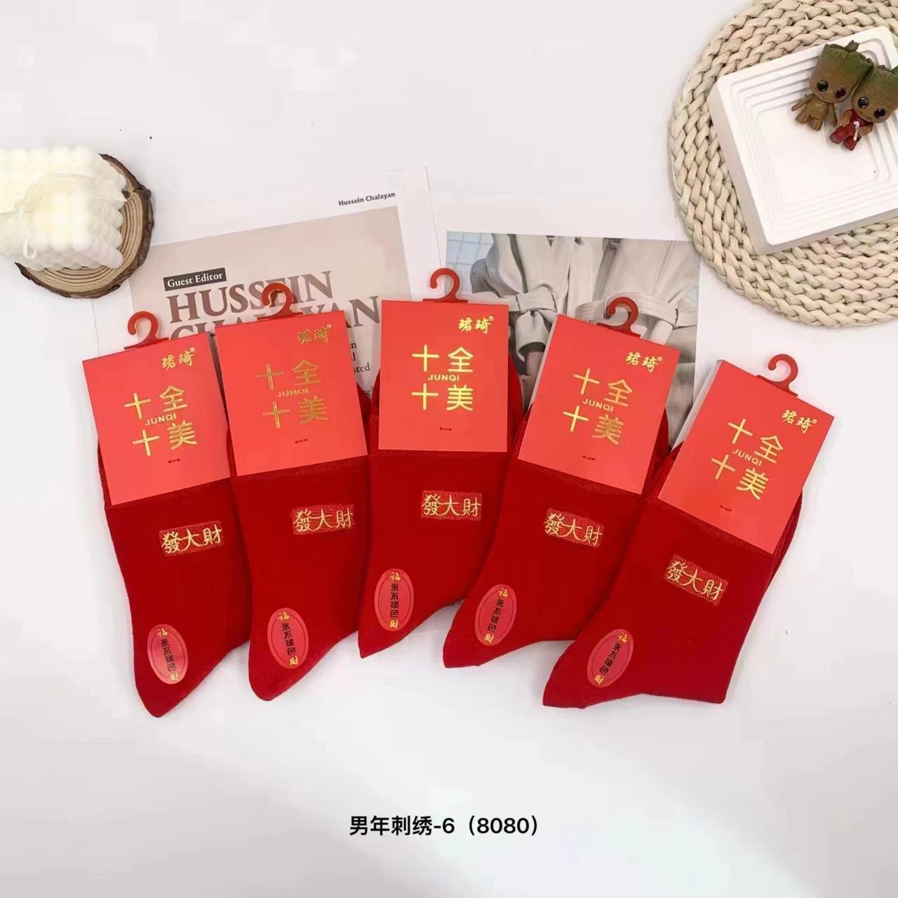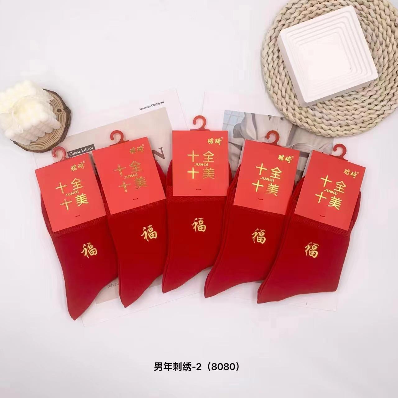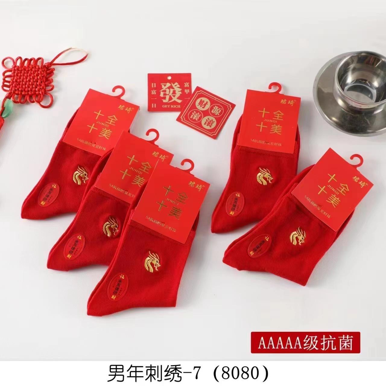 Calcetines rojos bordados con el año de nacimiento del dragón, con envío gratuito, para hombre, de alta calidad y con el personaje FU.
