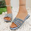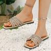 Sandalias de punta abierta para mujer, atuendo de primavera y verano 2025, nuevas zapatillas casuales planas y cómodas de playa con diamantes de imitación, zapatillas de talla grande