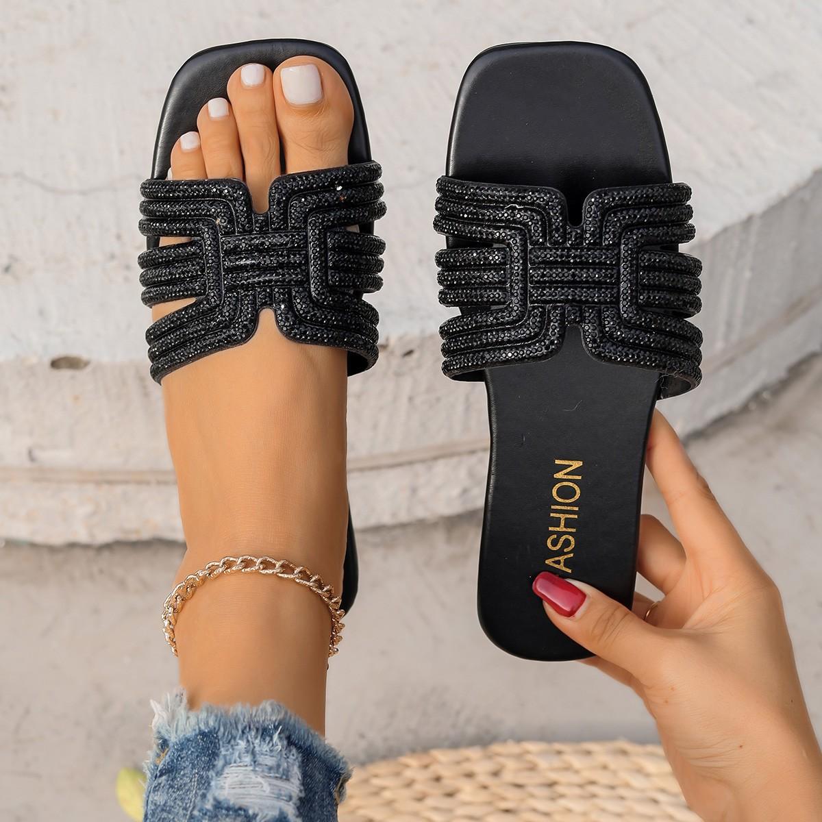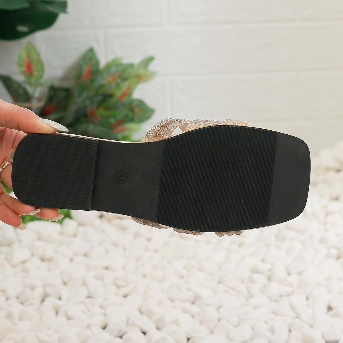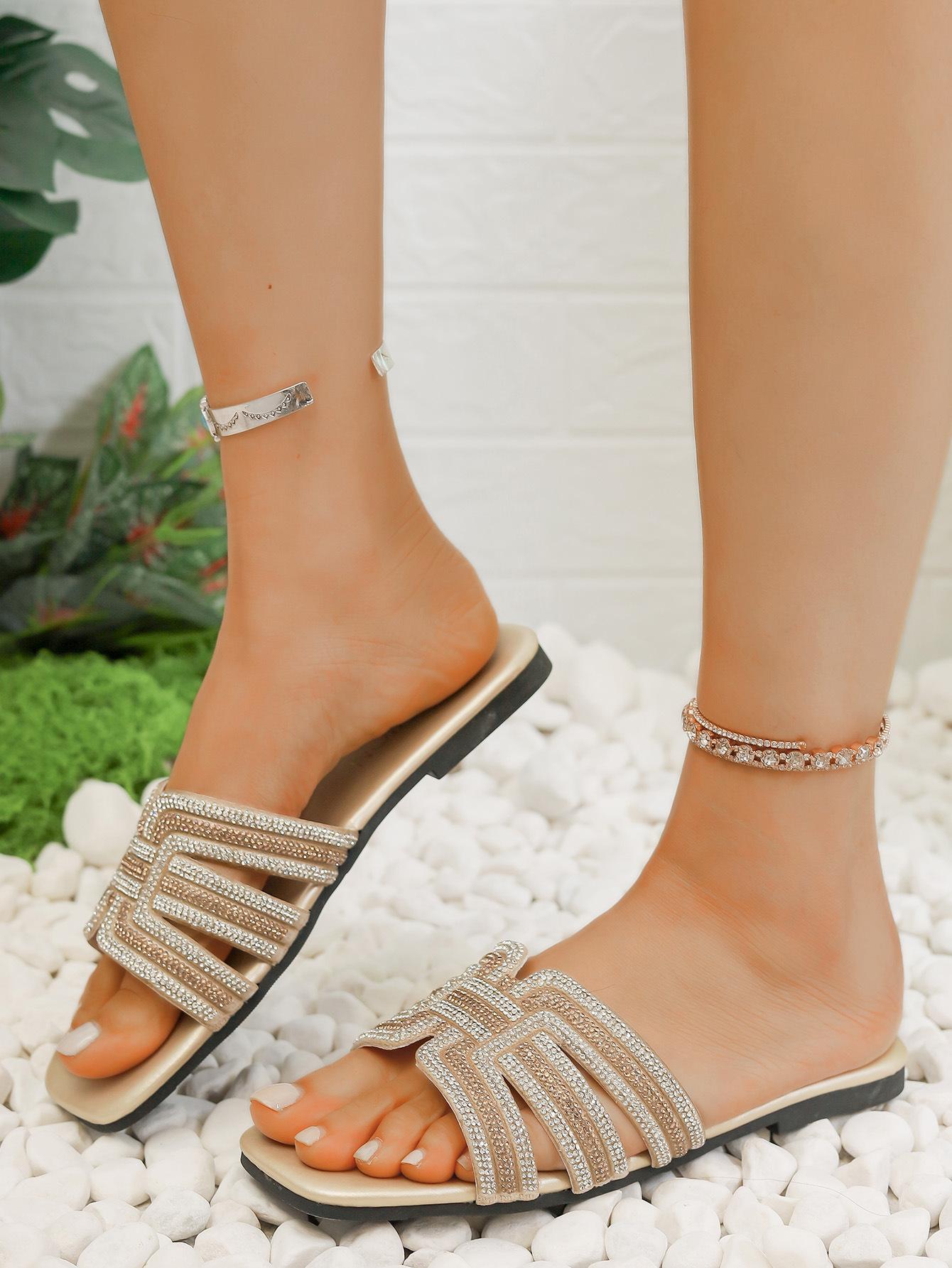 Compra Sandalias de punta abierta para mujer, atuendo de primavera y verano 2025, nuevas zapatillas casuales planas y cómodas de playa con diamantes de imitación, zapatillas de talla grande al por mayor en Joom.pro