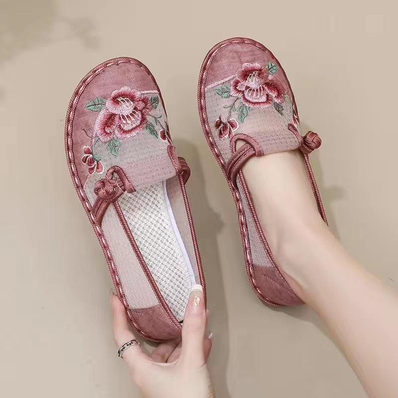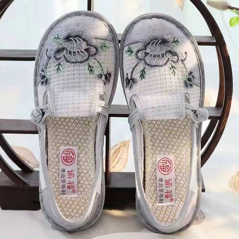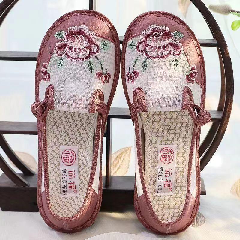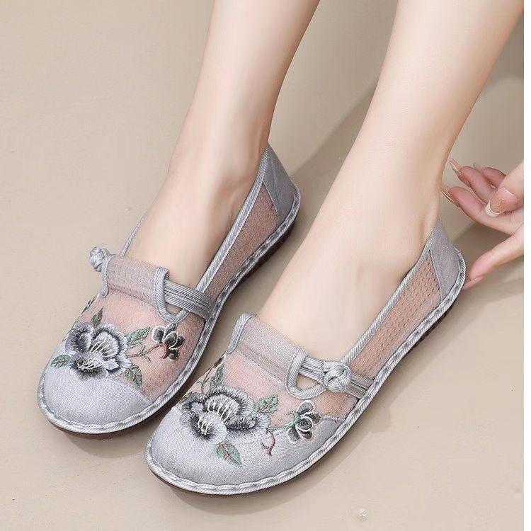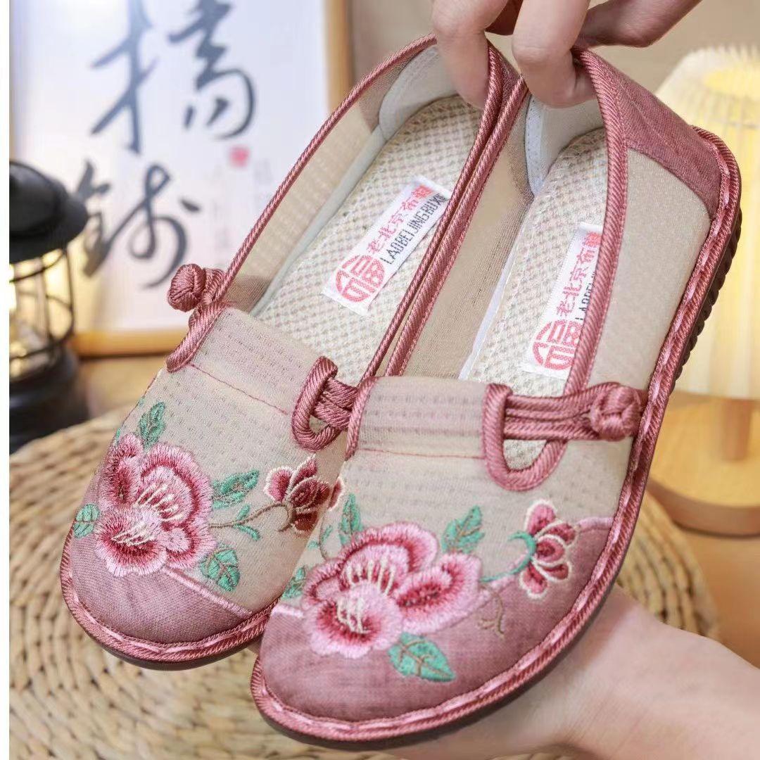 Compra Zapatos étnicos bordados para mujer, zapatos de tela antiguos de Beijing, zapatos planos nuevos de verano 2024, zapatos ligeros sin cordones para madre al por mayor en Joom.pro