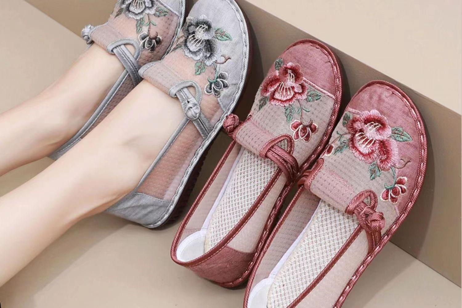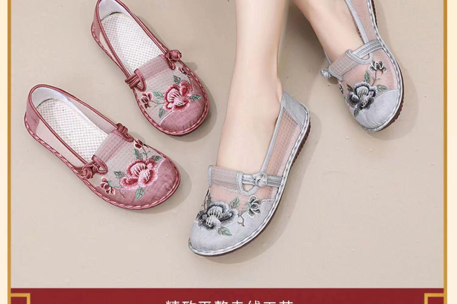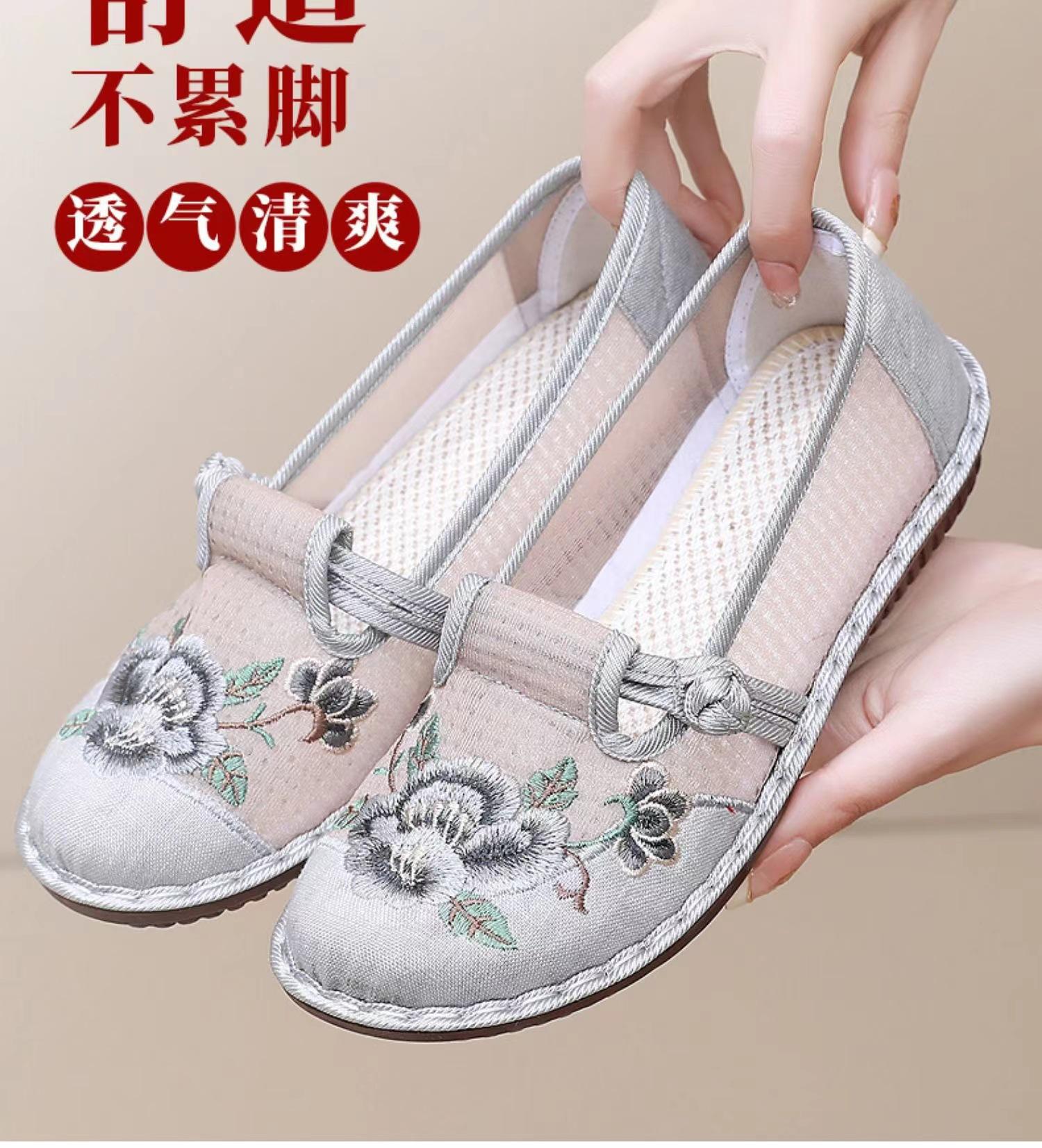 Compra Zapatos étnicos bordados para mujer, zapatos de tela antiguos de Beijing, zapatos planos nuevos de verano 2024, zapatos ligeros sin cordones para madre al por mayor en Joom.pro