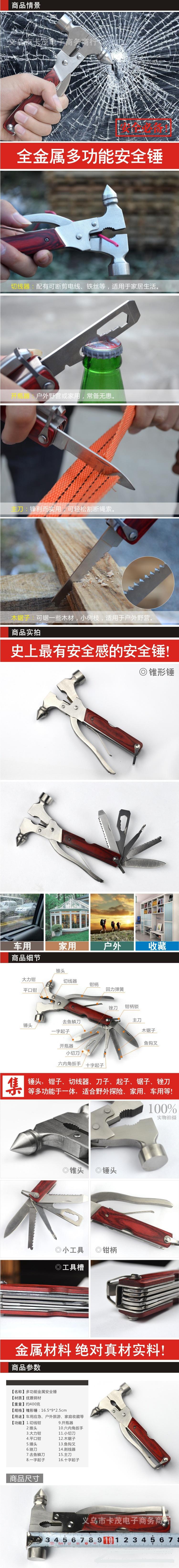 [Herramientas principales] Alicates, cortadores de alambre, martillo, cuchillo, destornillador Phillips, sierra, cuchillo de sierra, destornillador plano, lima, abridor de botellasY otras funciones en uno.