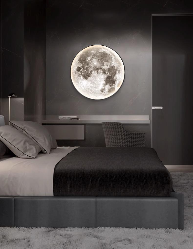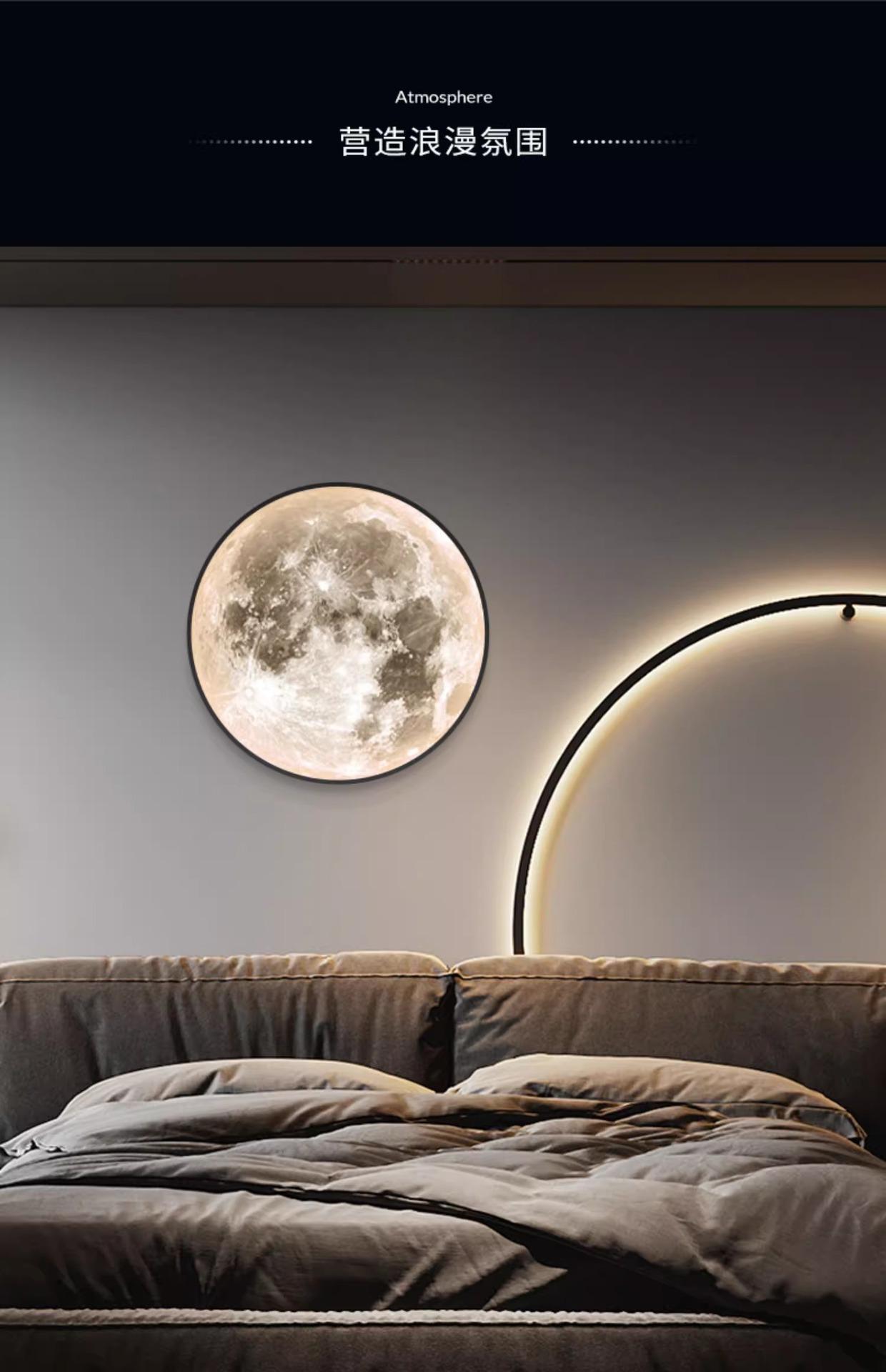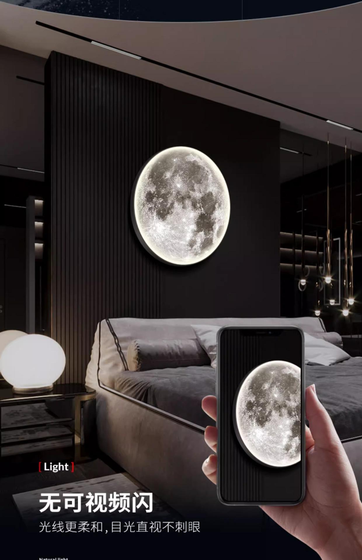 Lámpara de pared de luna moderna simple pasillo lámpara de pintura mural sala de estar fondo pintura decorativa dormitorio mesita de noche colgante de pared protección ocular lámpara de pared