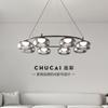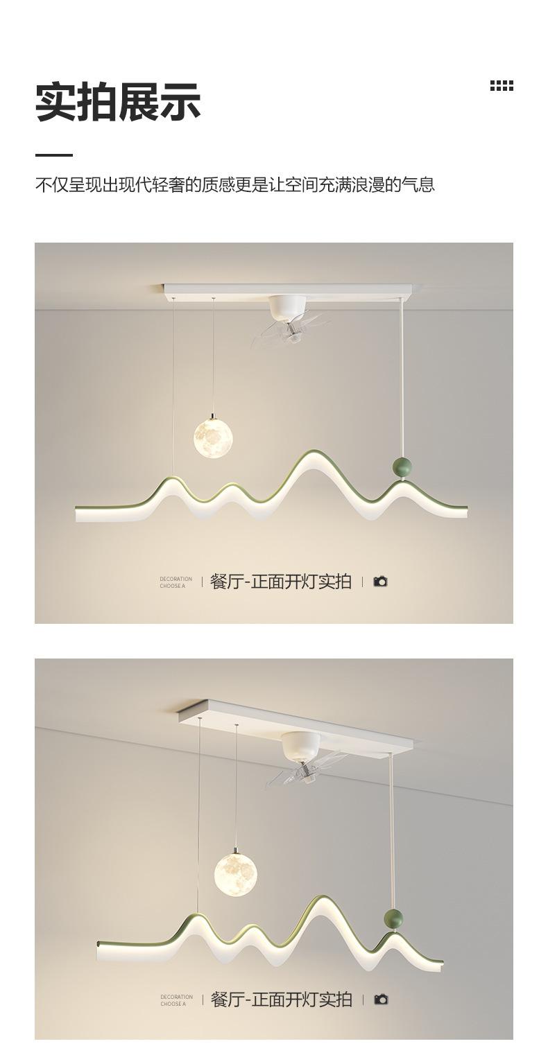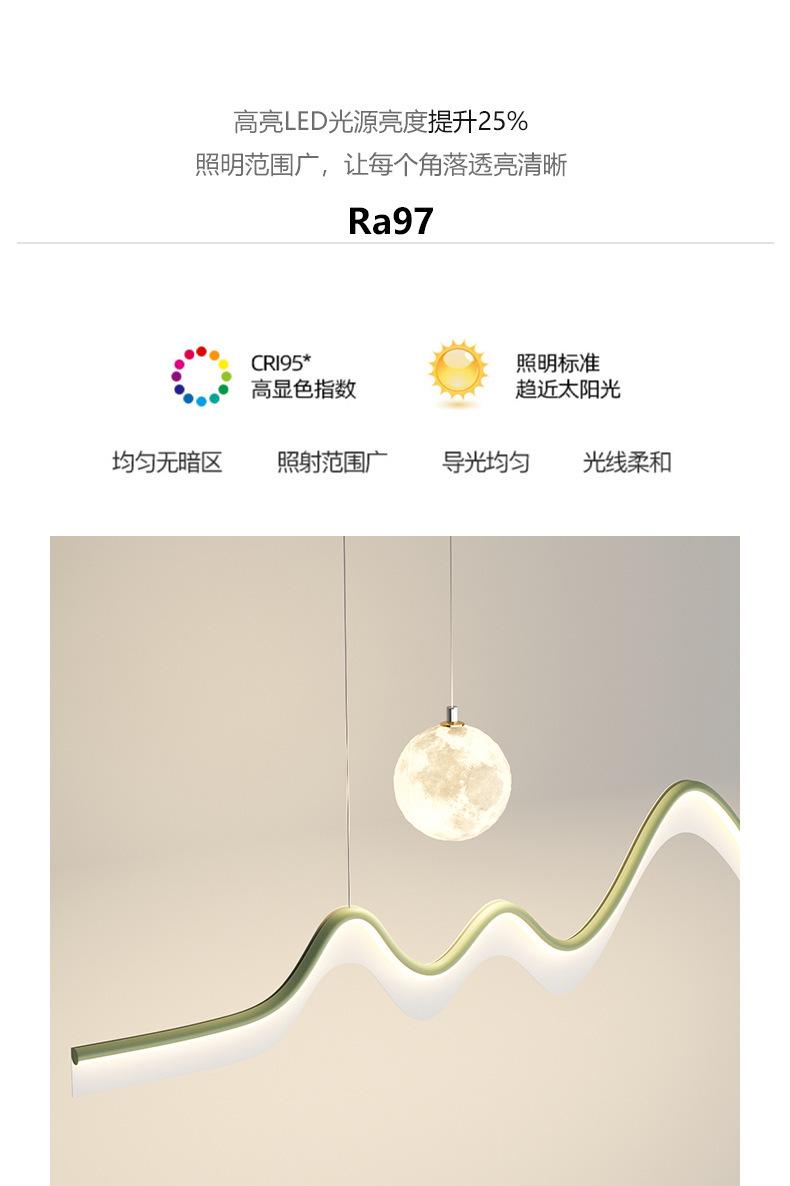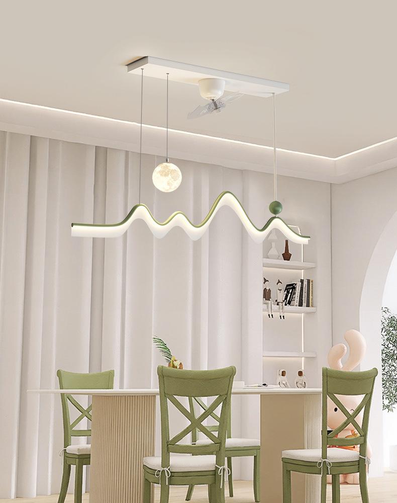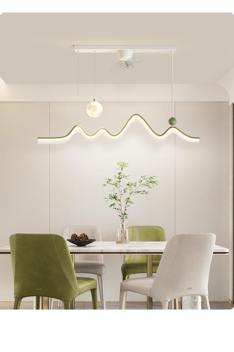 Lámpara de Araña Ventilador de Restaurante Moderna Simple Espectro Completo Protección Ocular Rojo de Internet Creativa Atmosférica Luna Barra Larga Lámpara de Mesa de Comedor