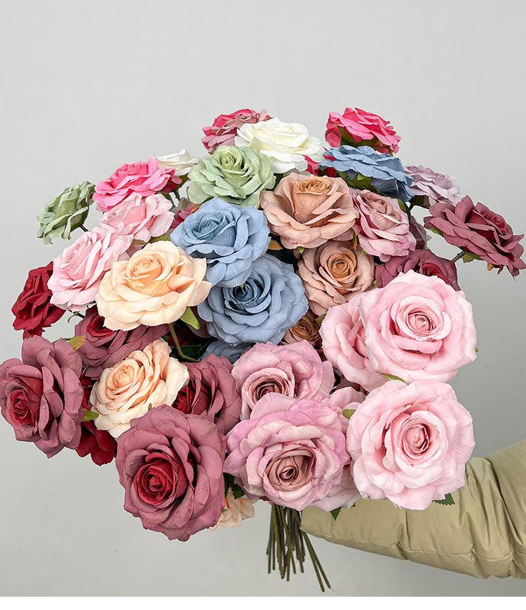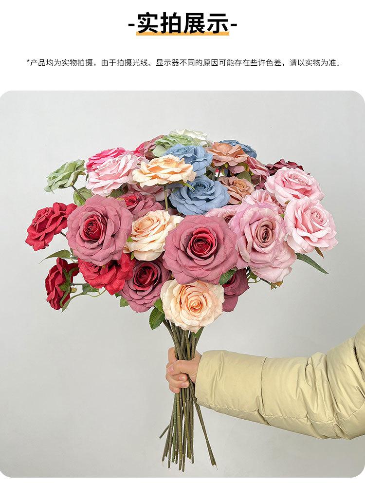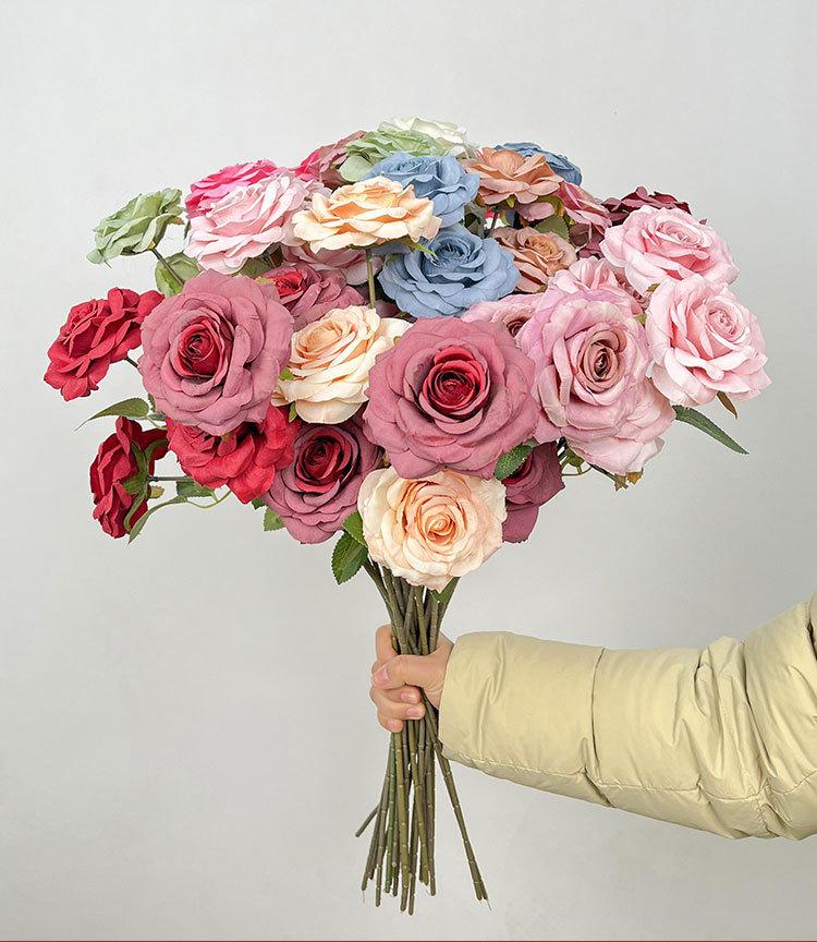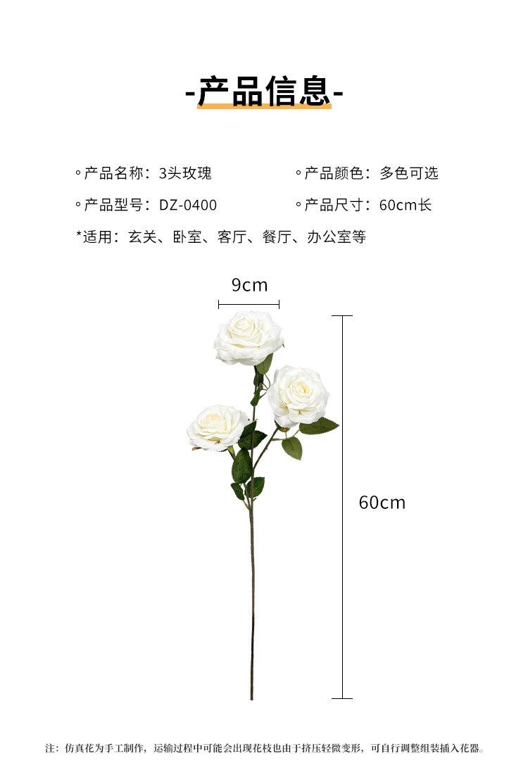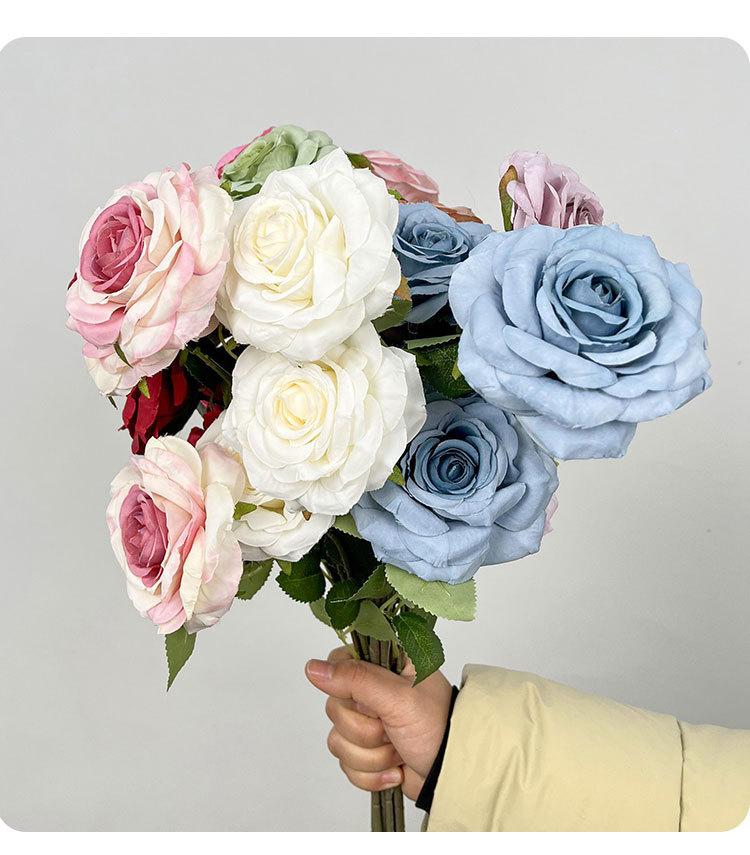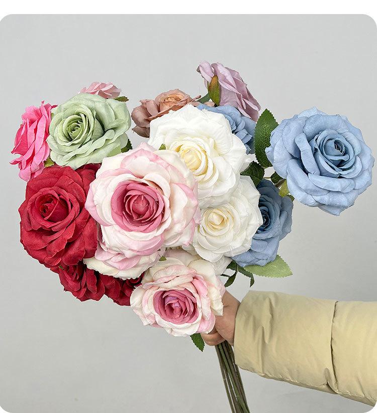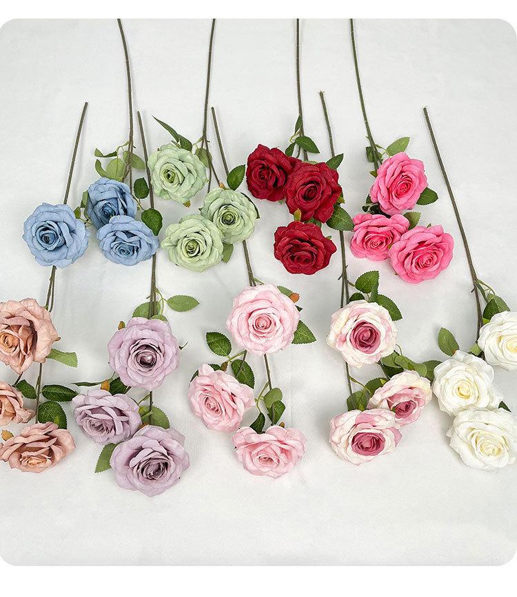 Conjunto de 3 rosas artificiales para decoración del hogar, dormitorio, arreglo floral, ramo de boda, accesorios